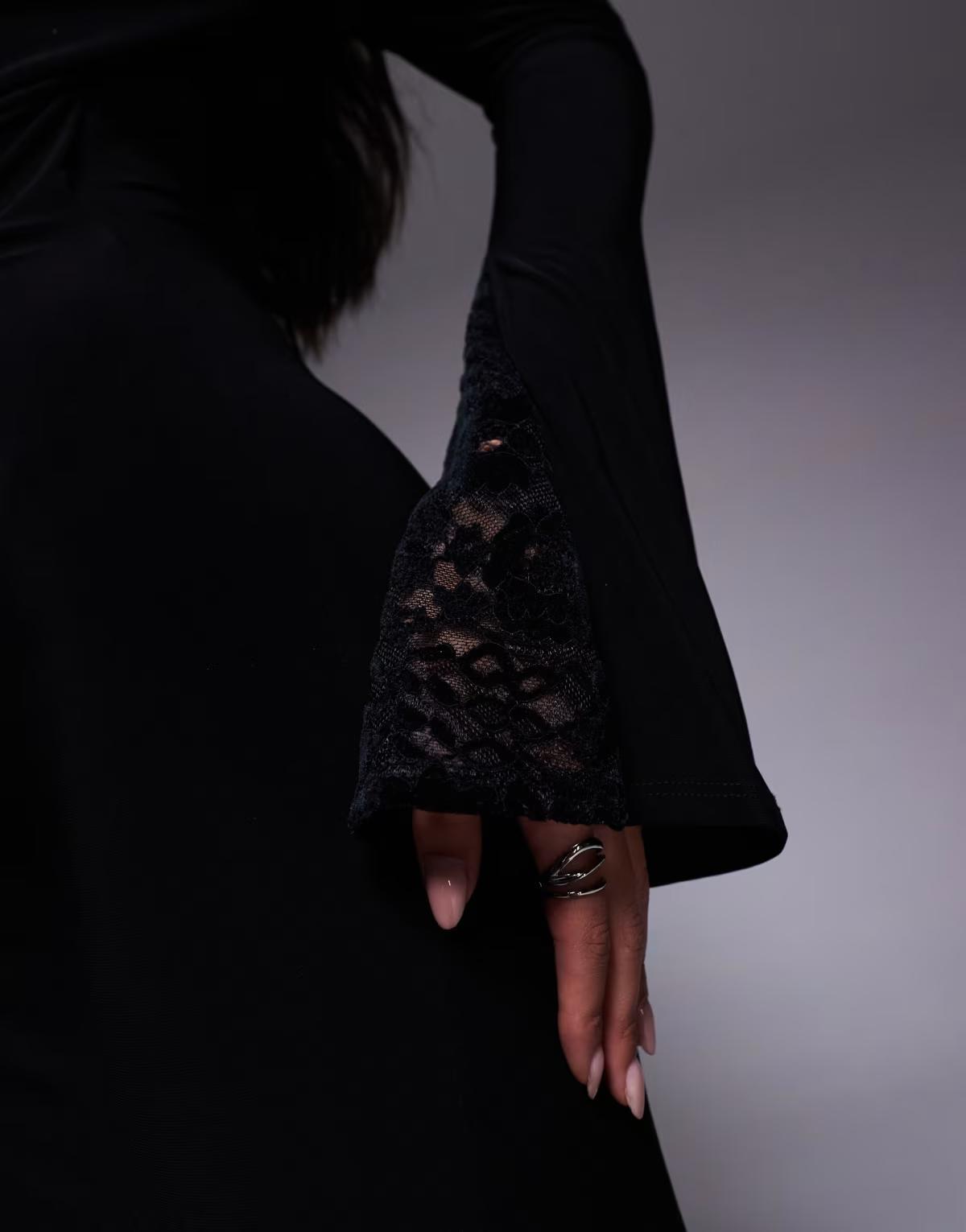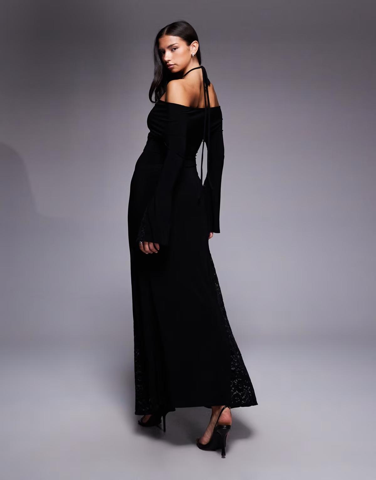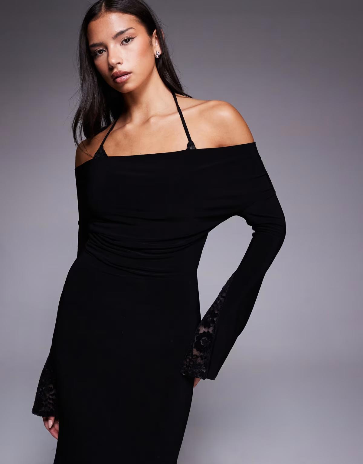 ASOS DESIGN bra detail long sleeve maxi dress with lace inserts in black