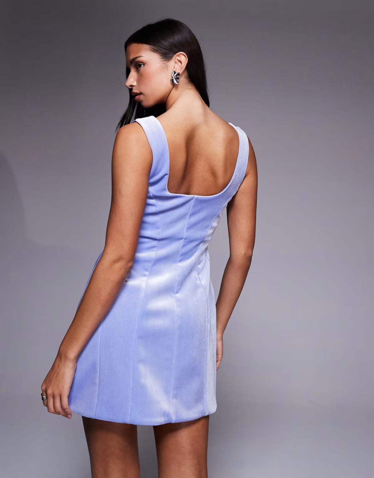 ASOS DESIGN velvet square neck seam detail mini dress in ice blue