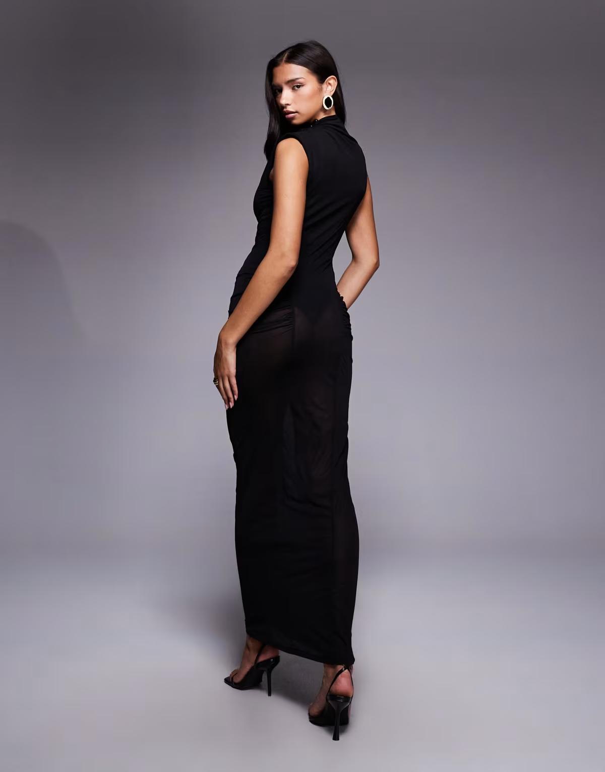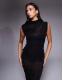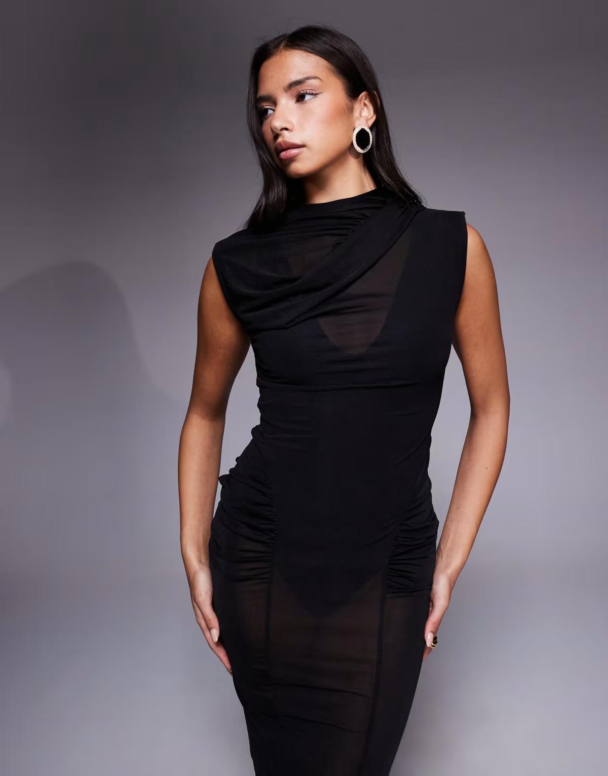 ASOS DESIGN sheer capped sleeve sculpting midi dress with body suit in black