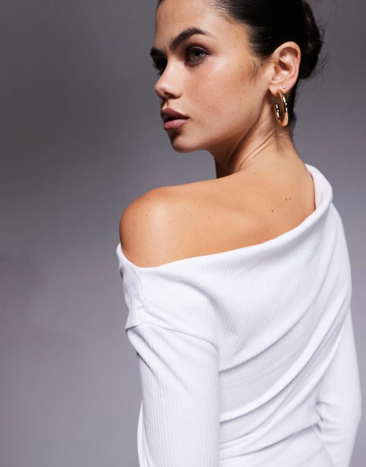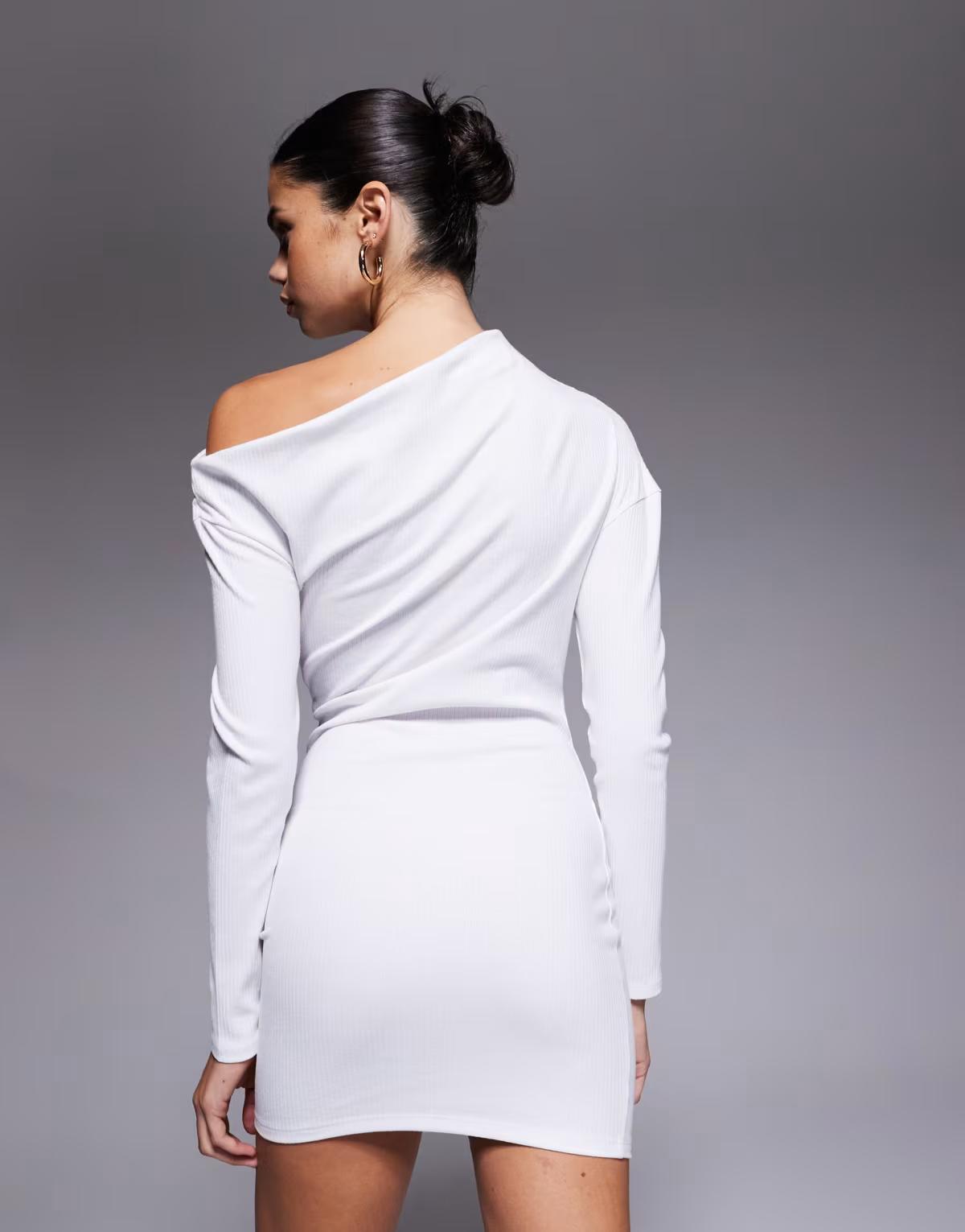 ASOS DESIGN ribbed asym neckline fitted mini dress in white