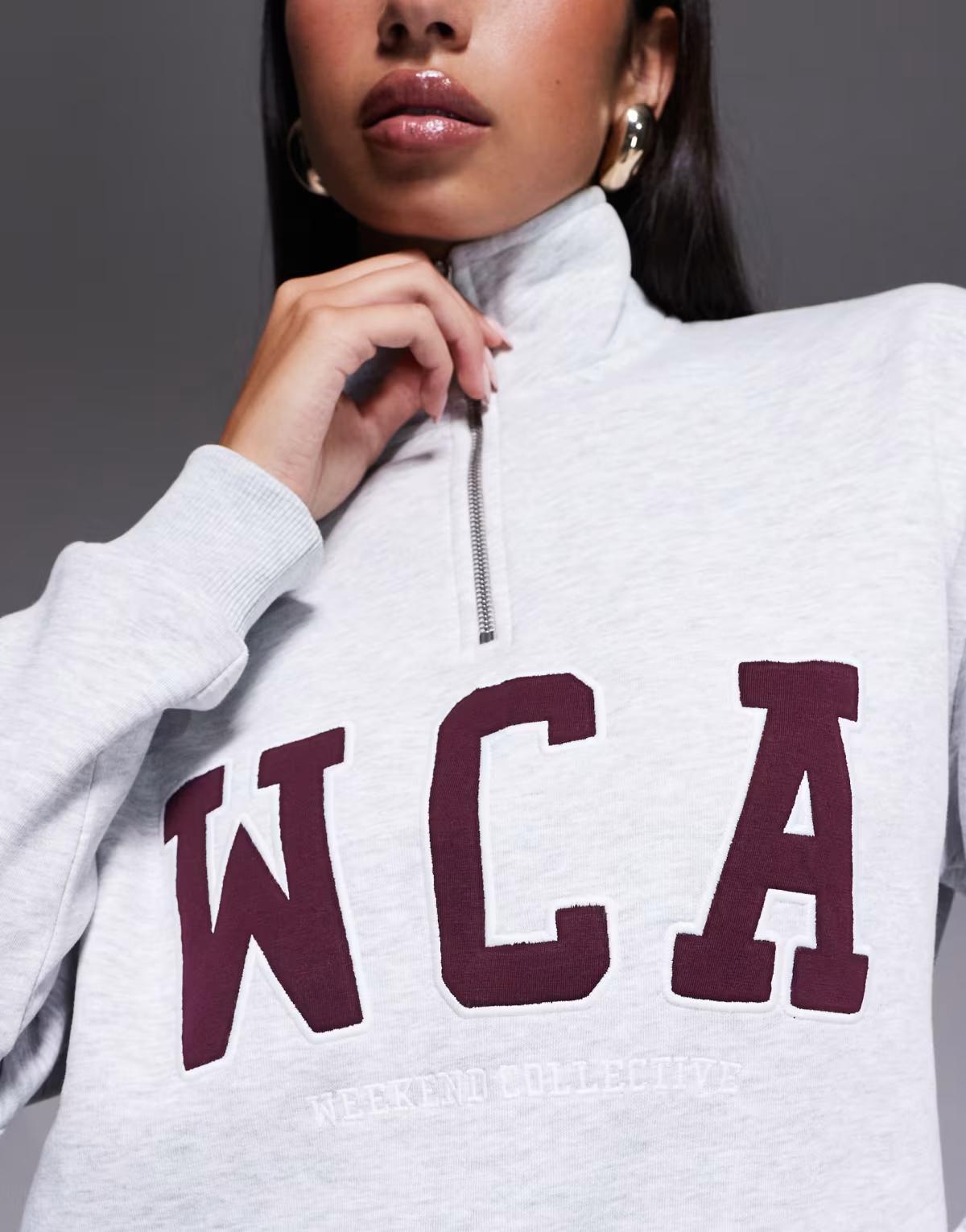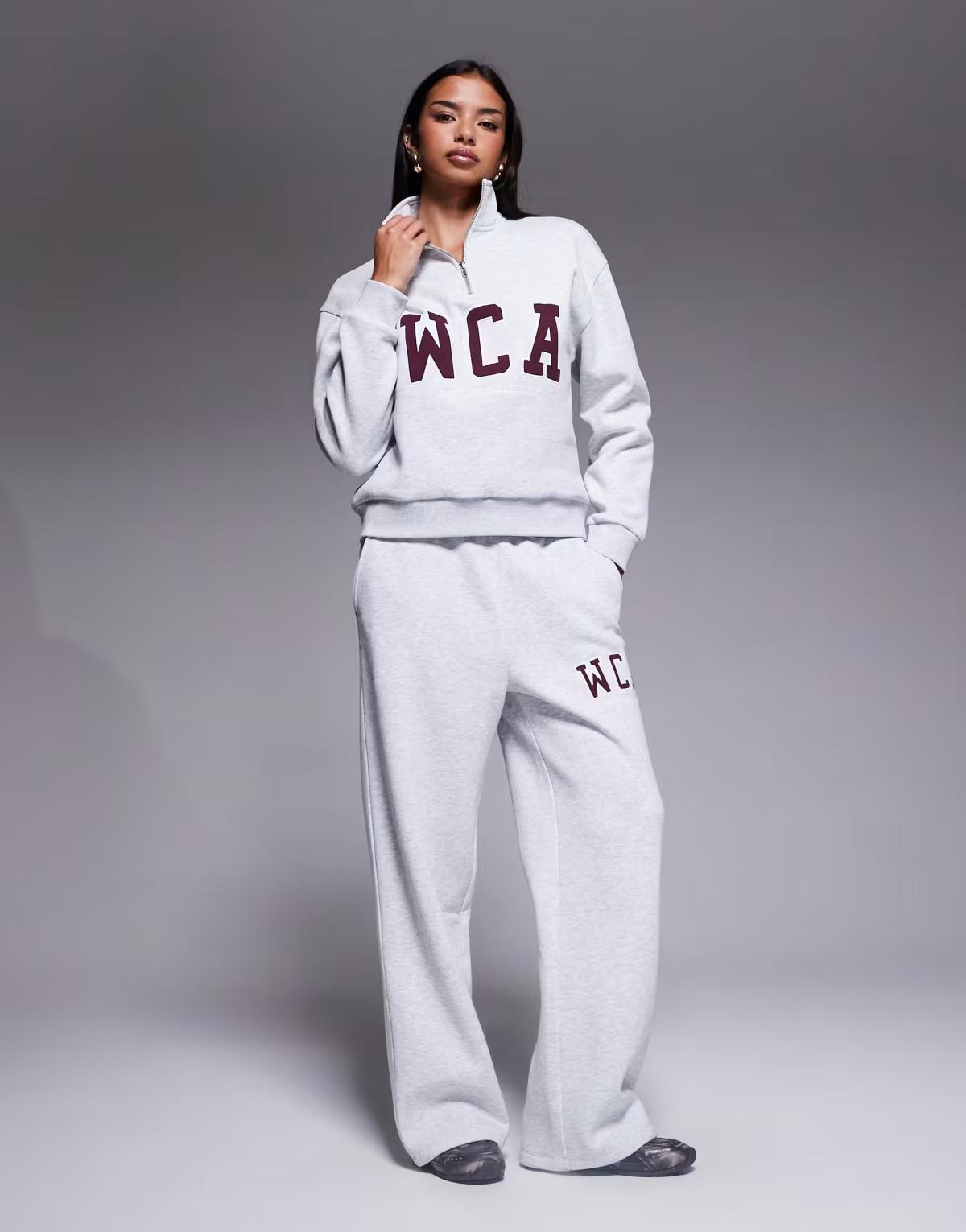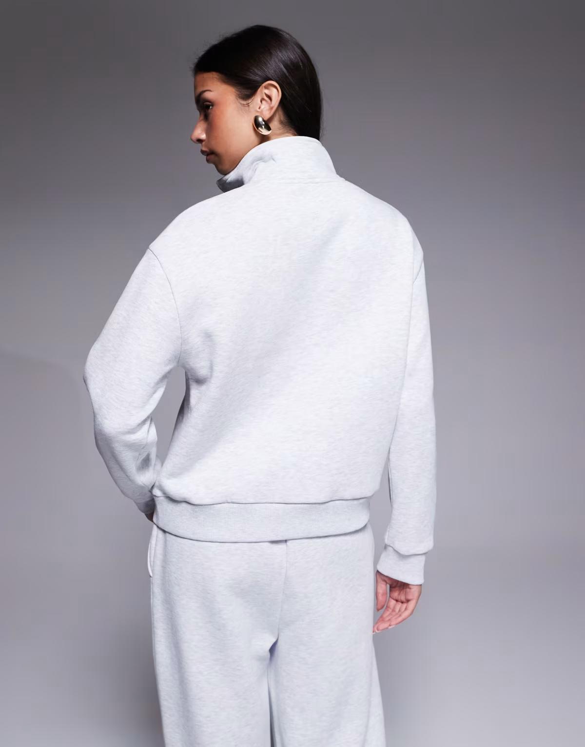Weekend Collective co-ord half zip with varsity sweatshirt in grey marl