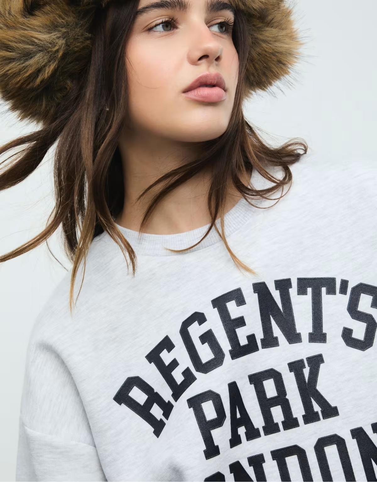 Stradivarius Embroidered flag sweatshirt in grey melange
