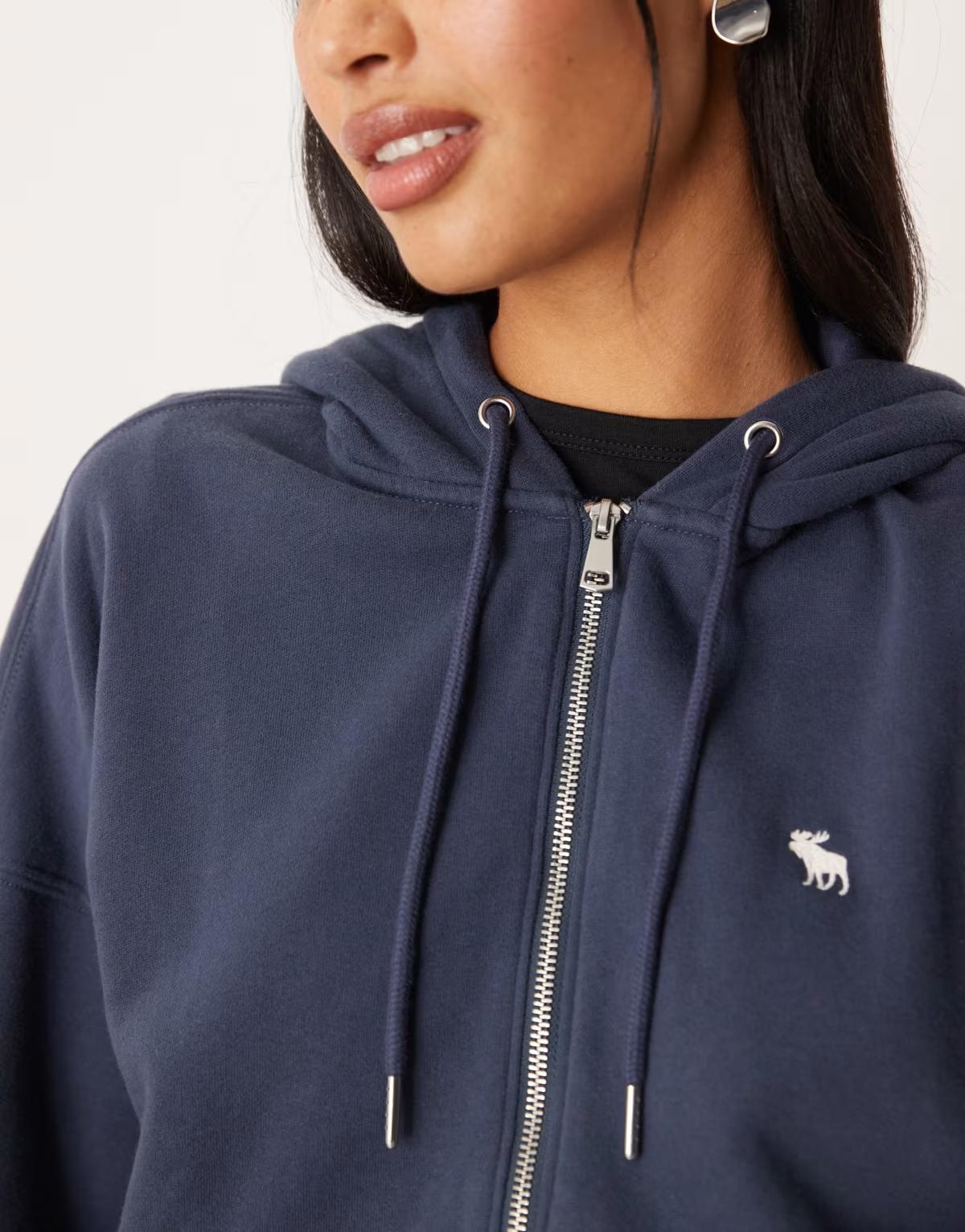 Abercrombie & Fitch icon logo fleece zip through hoodie in navy
