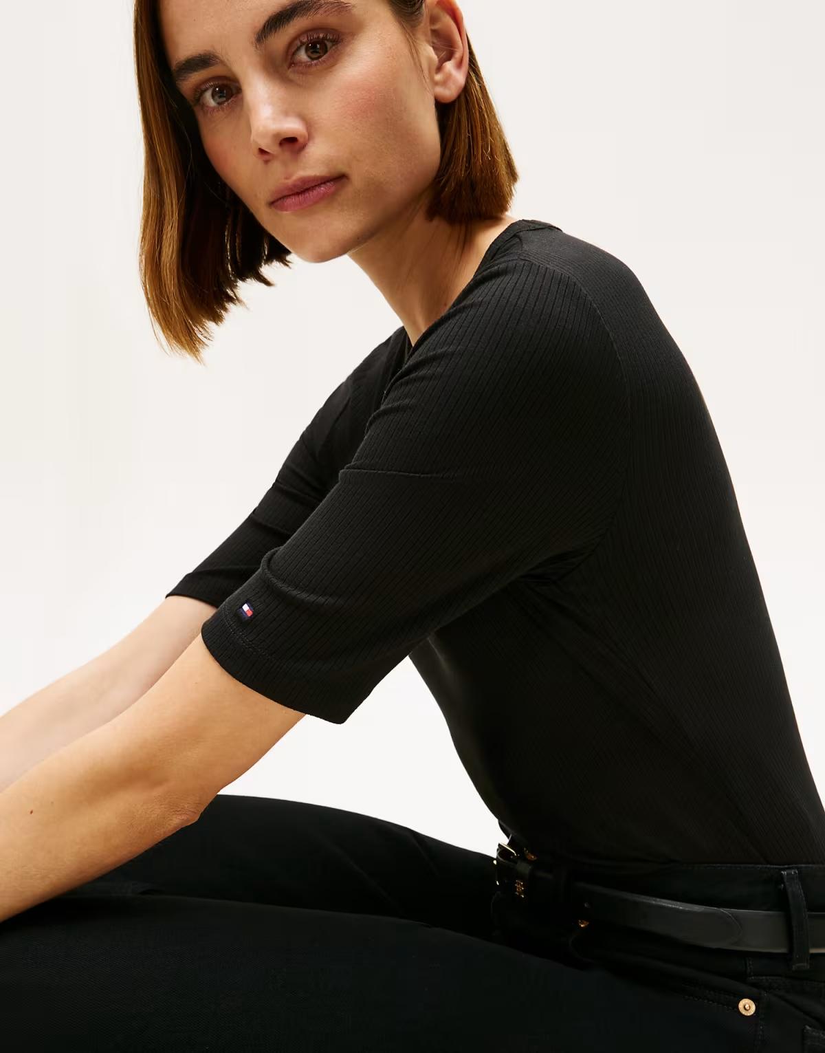 Tommy Hilfiger Ribbed slim half sleeve t-shirt in multi