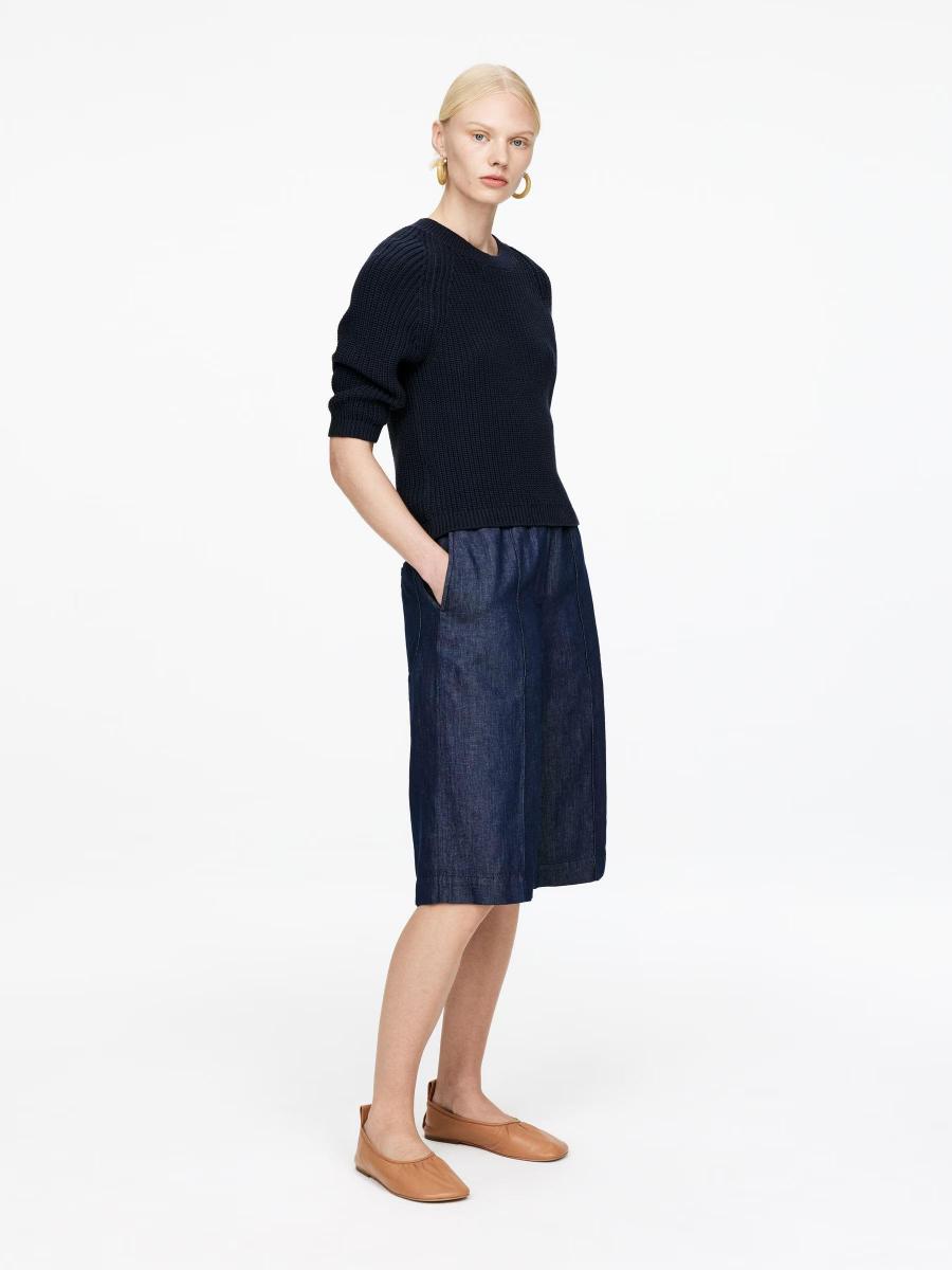 Knitted jumper crafted from cotton. This style features a shrunken fit and three-quarter-length sleeves.ARKET/Women's clothes/Women's knitwear/Women's crew-neck jumpers