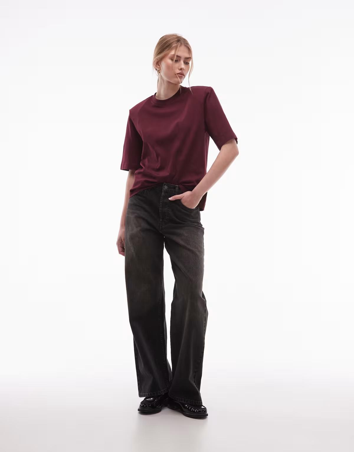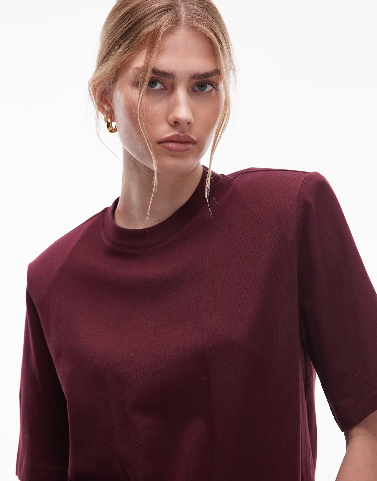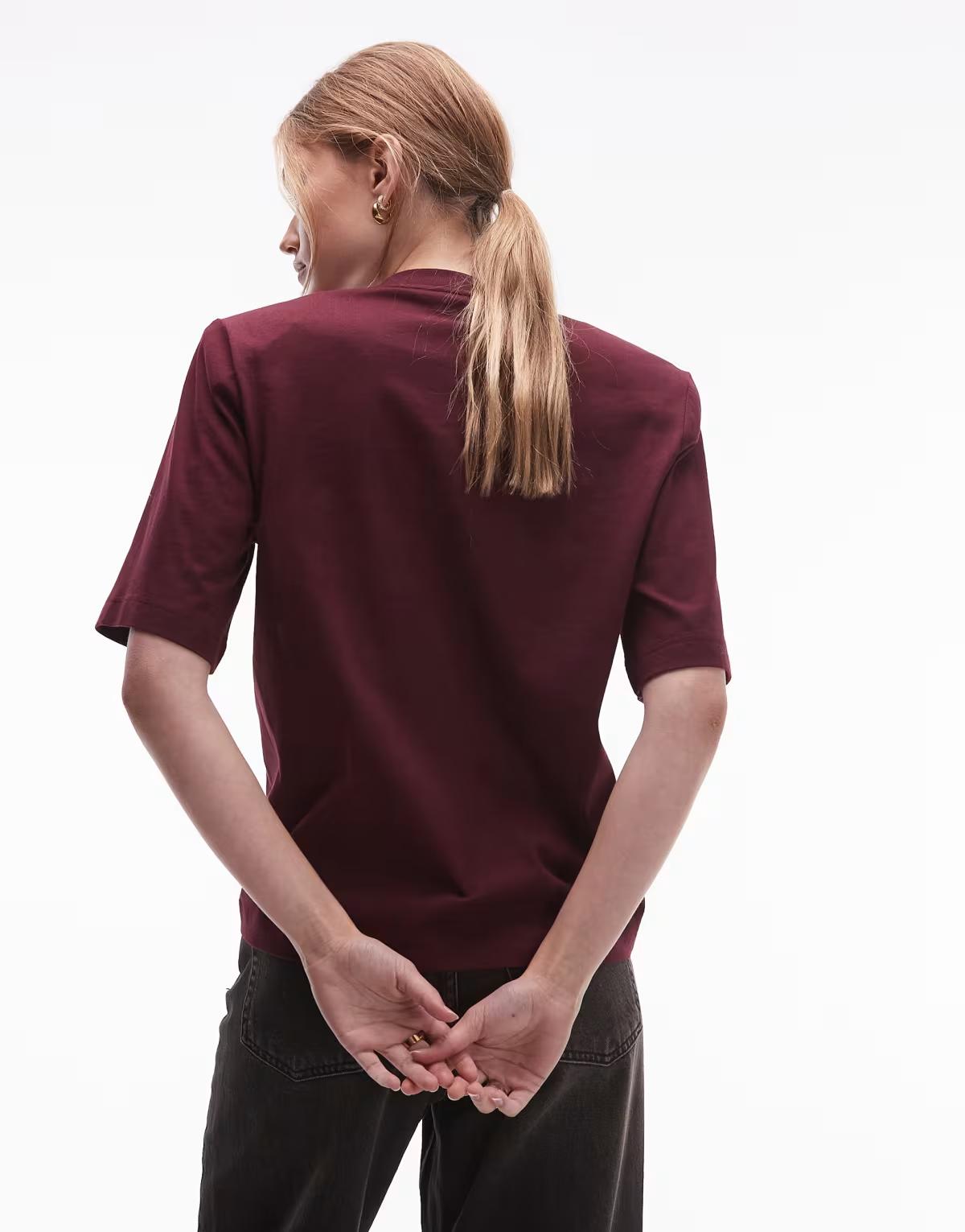 & Other Stories structured jersey top with shoulder pads in dark wine