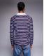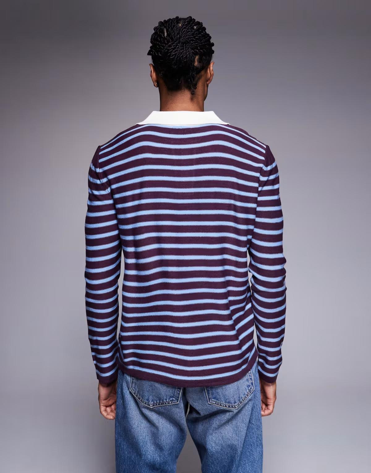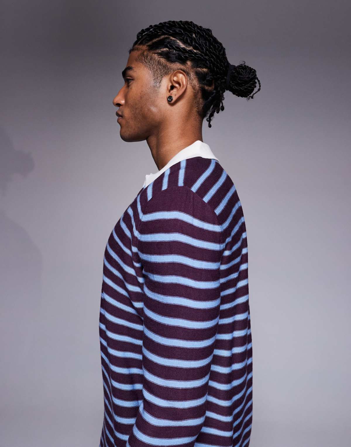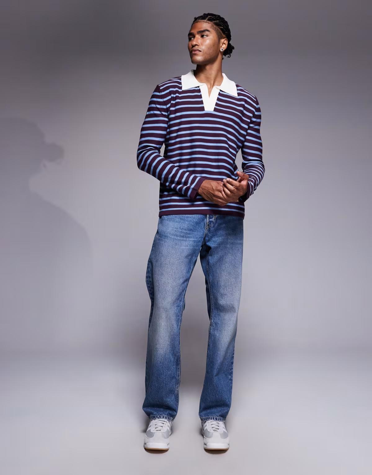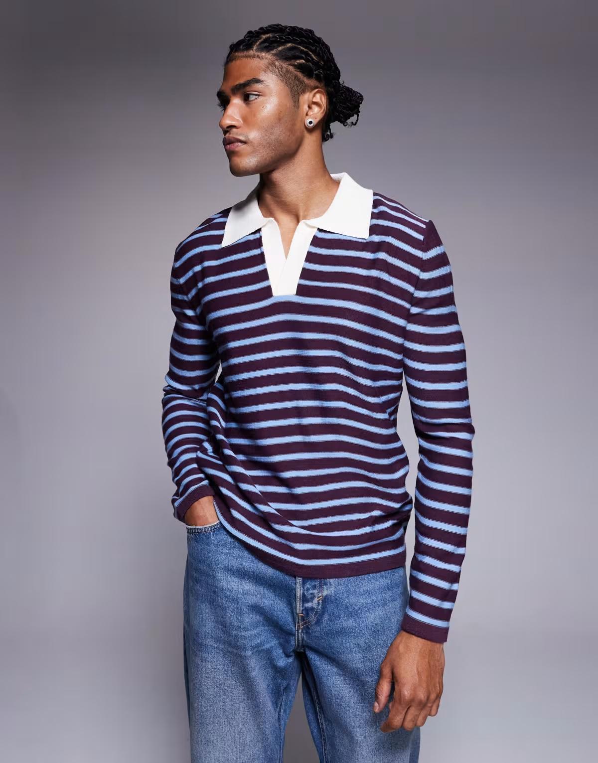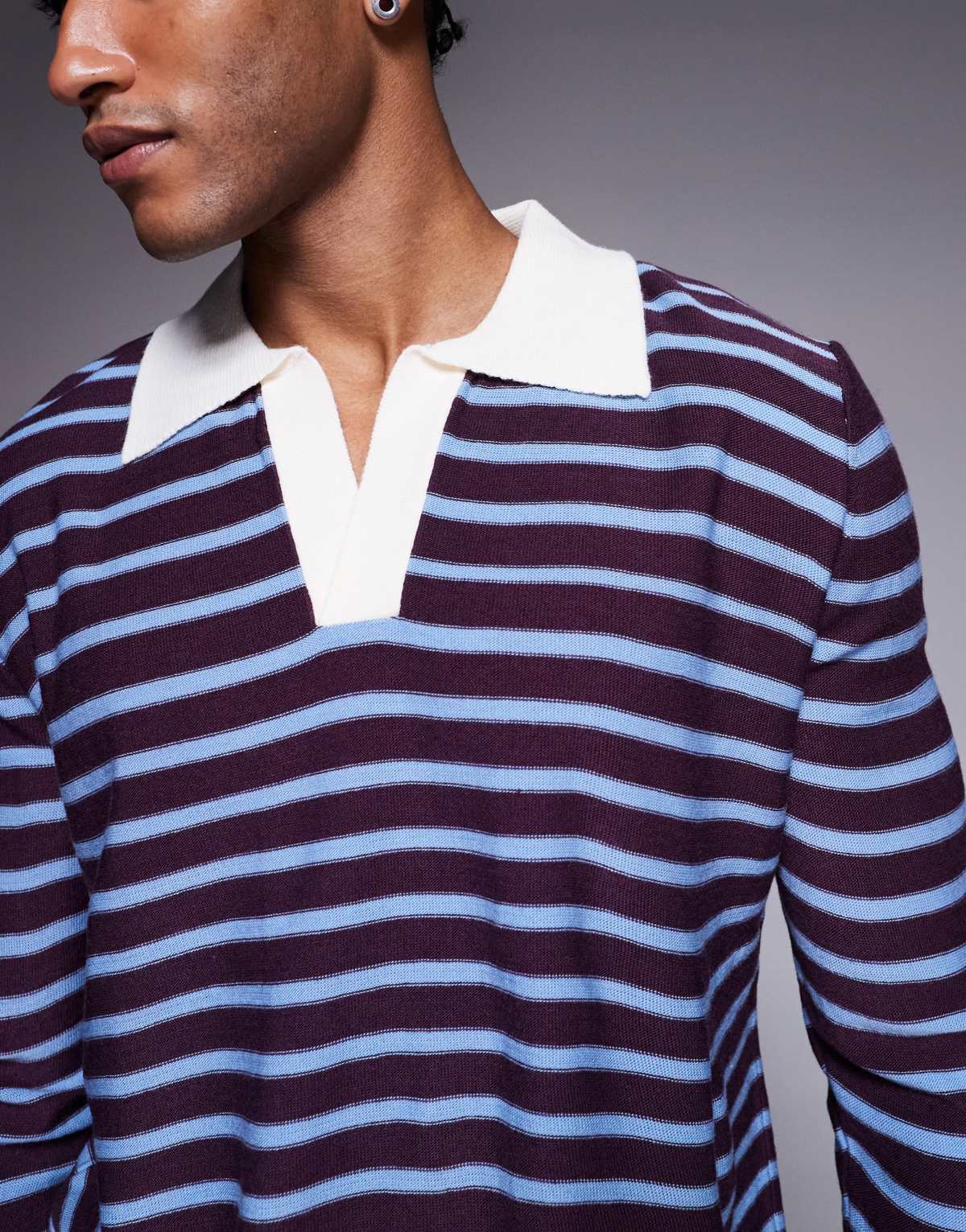 ASOS DESIGN knitted notch neck polo in red and blue stripe