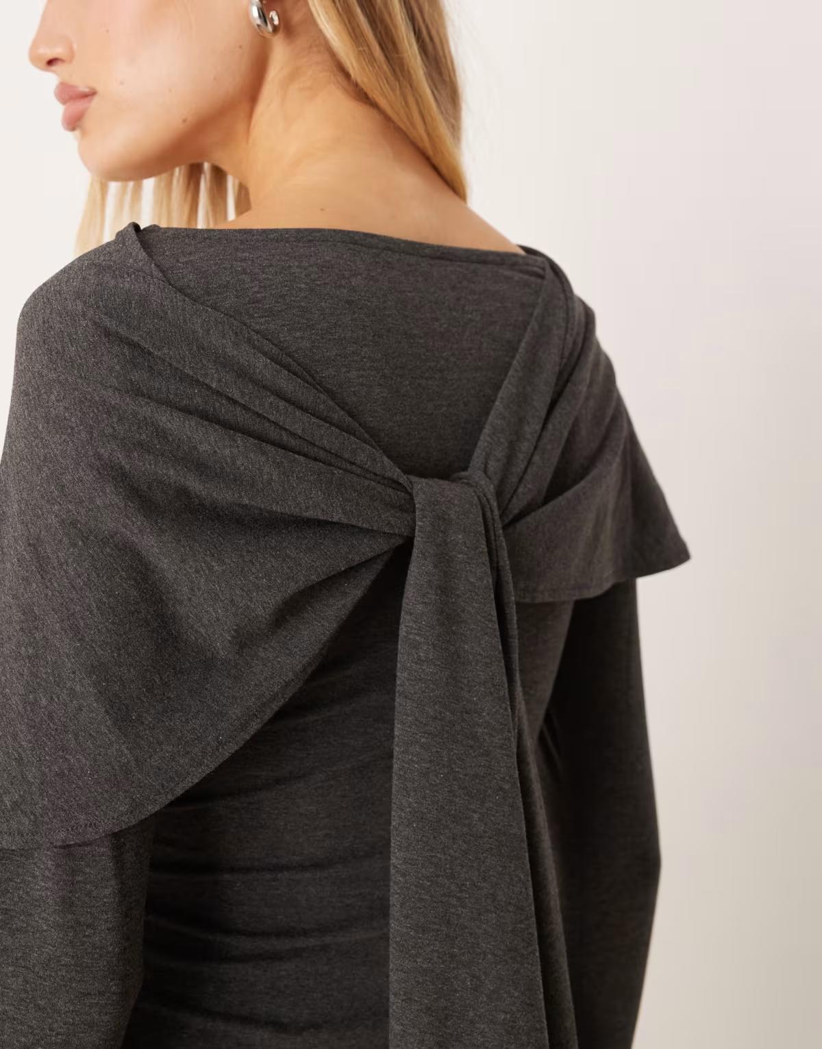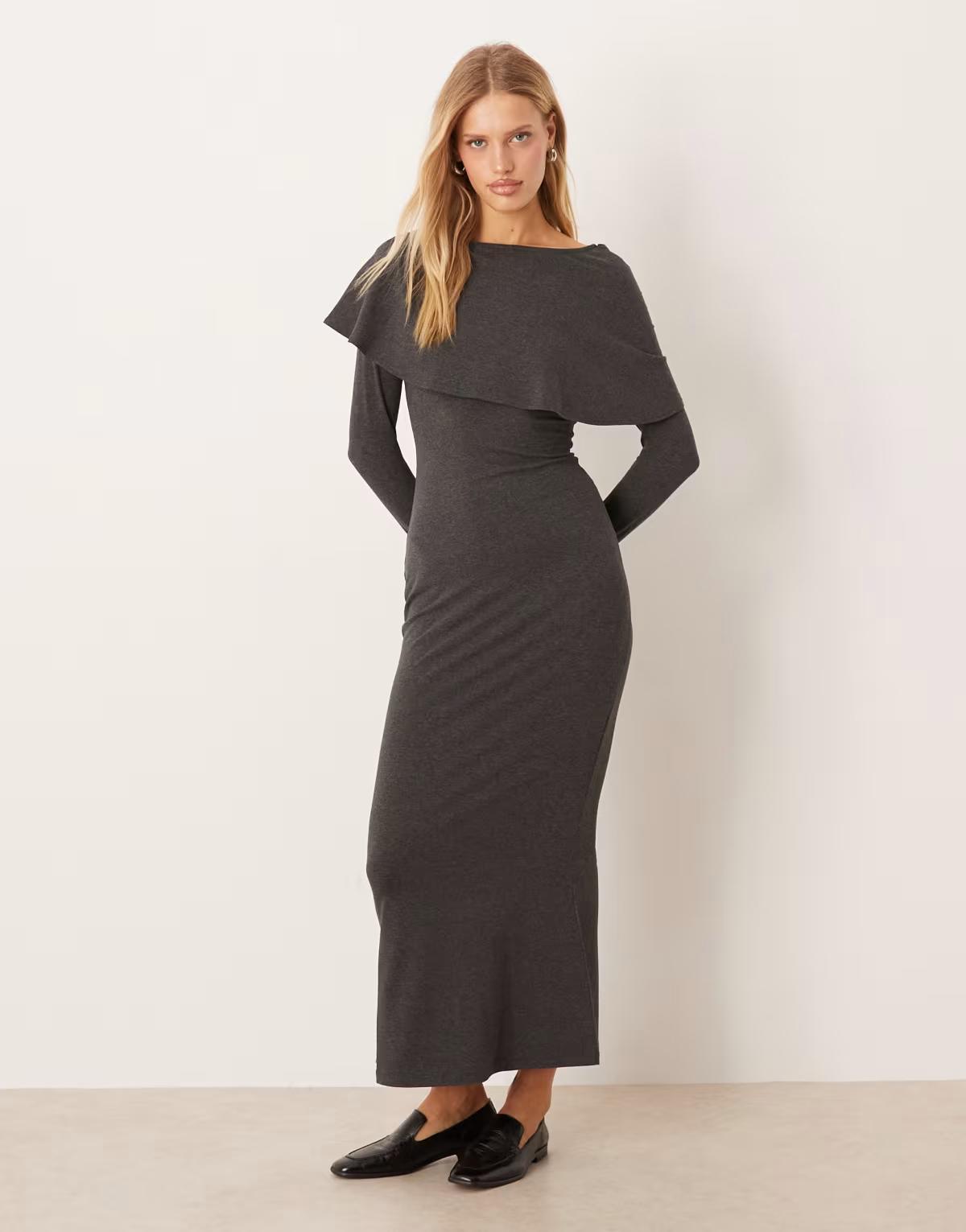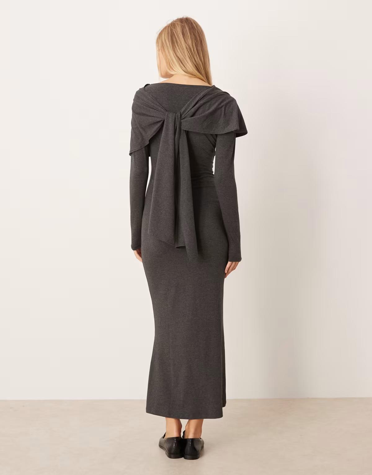 ASOS DESIGN maxi scarf detail cape dress in grey marl
