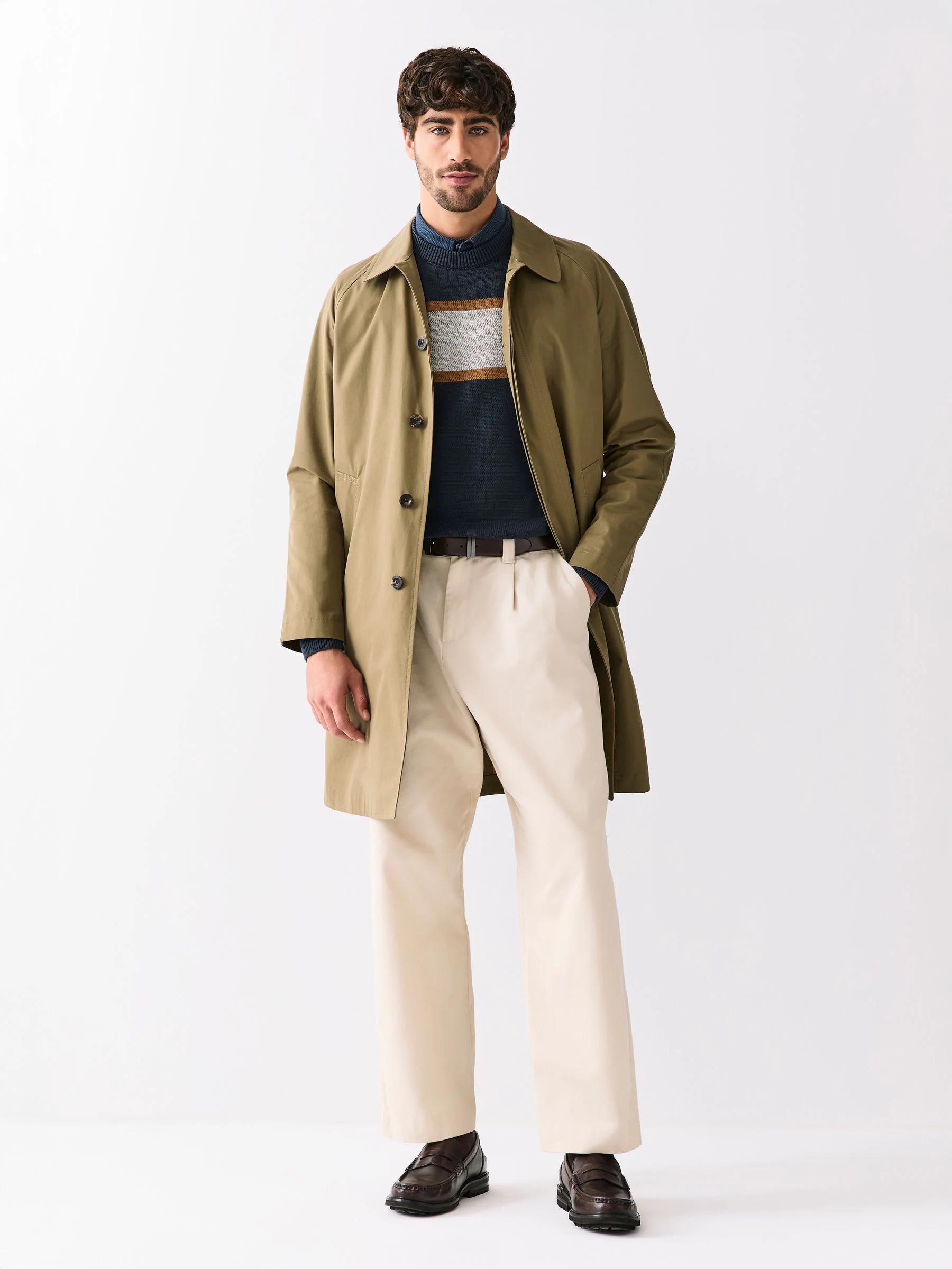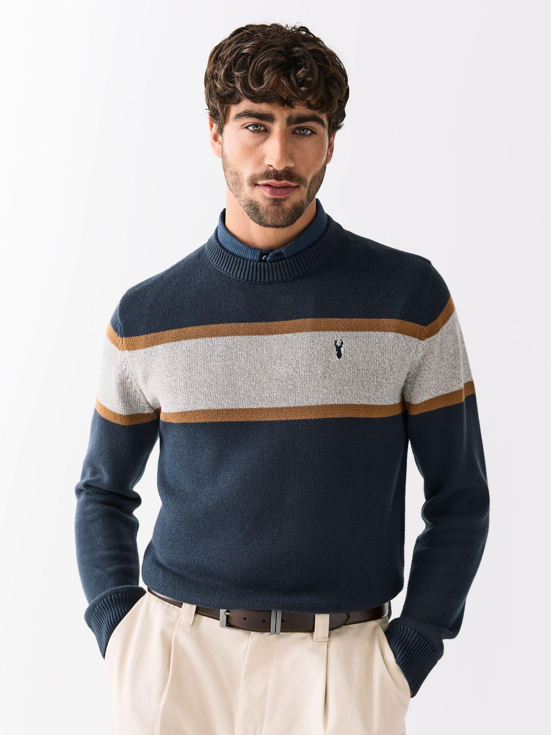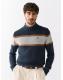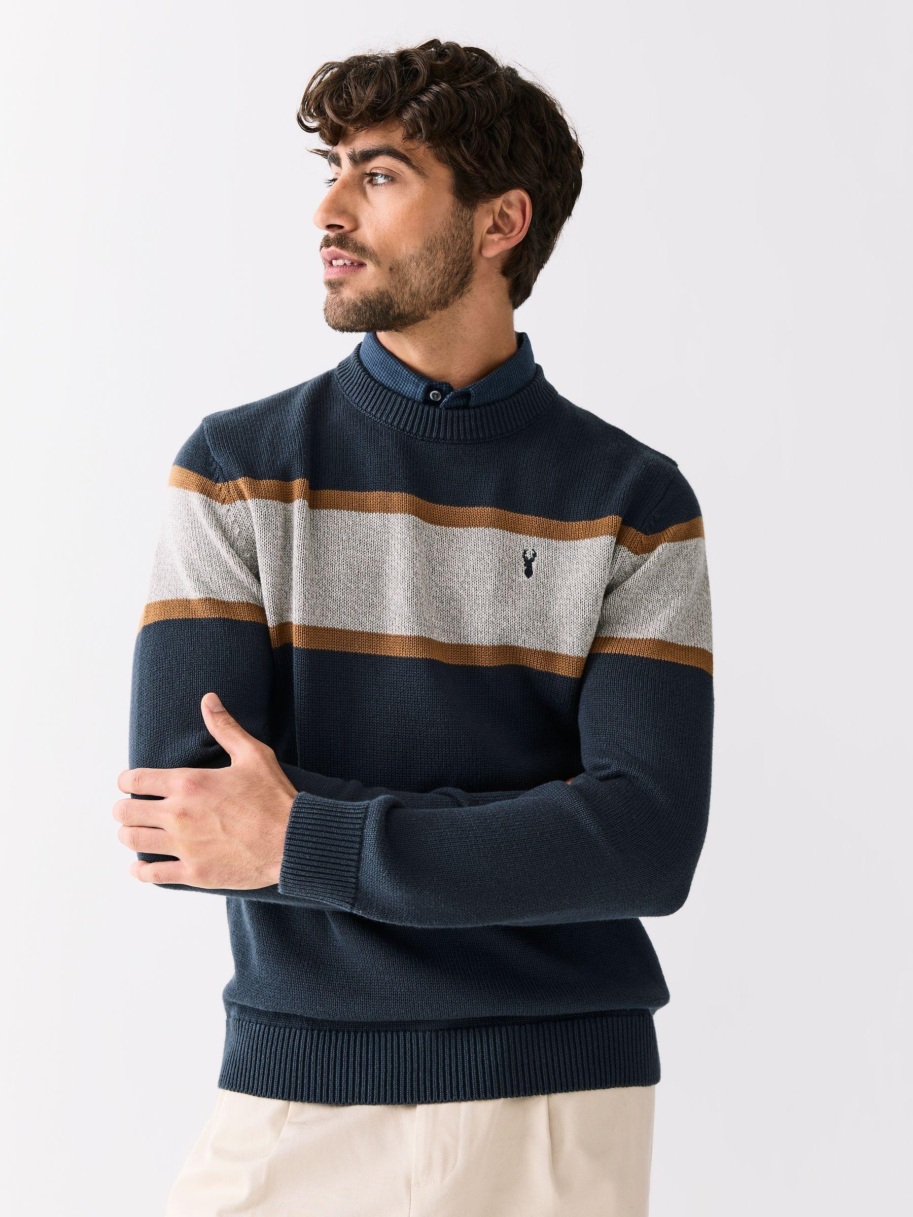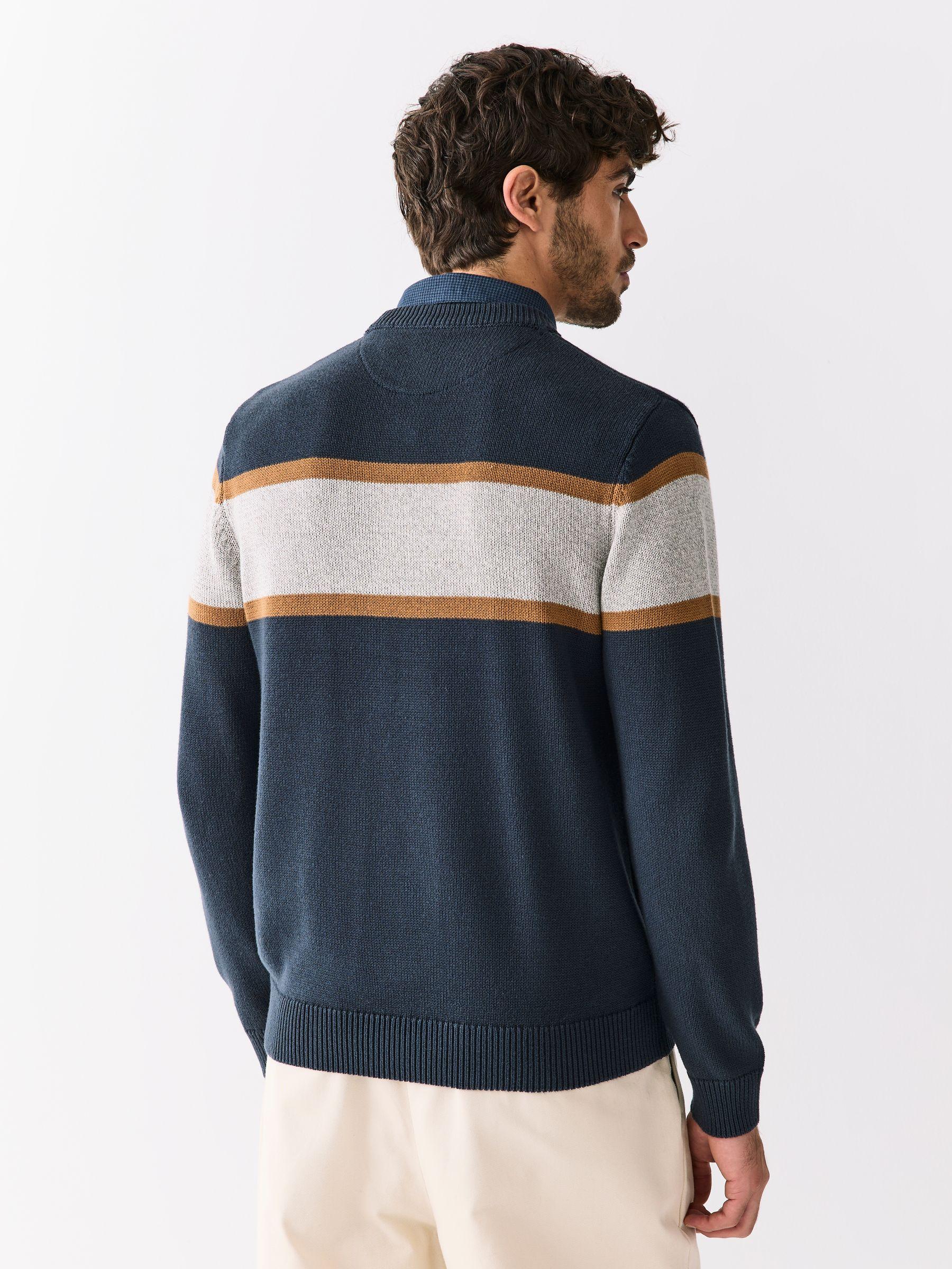 Navy/White/Camel Stripe Regular Fit Mock Shirt Jumper