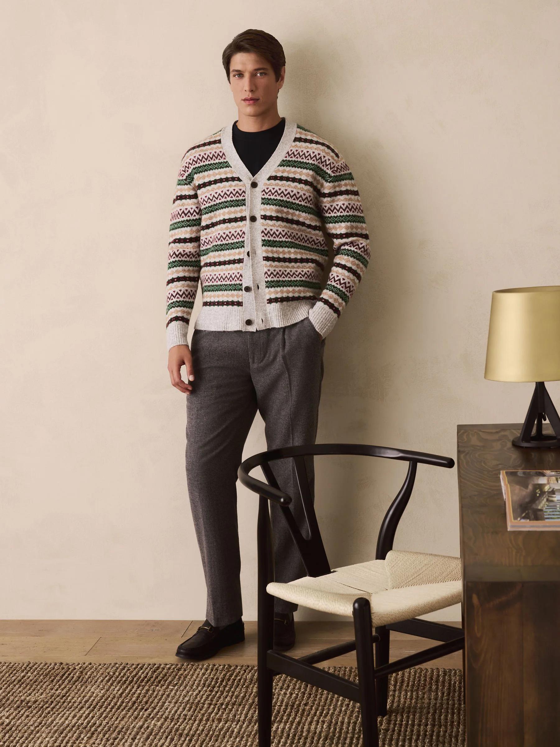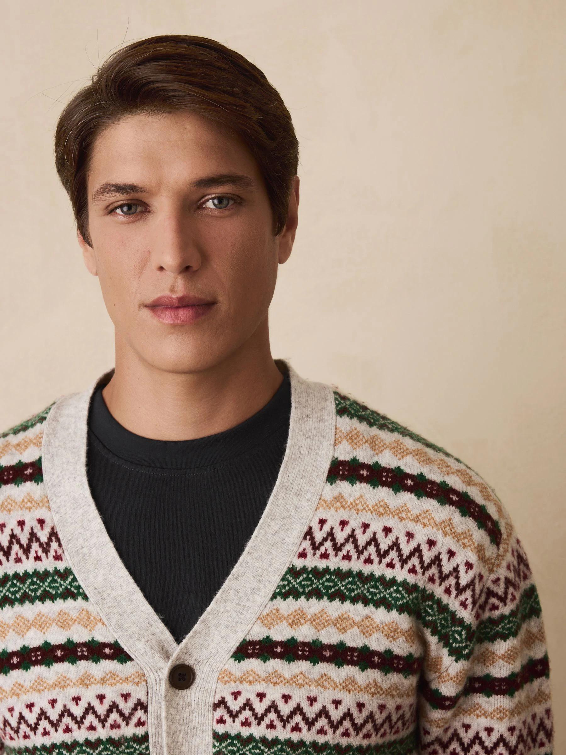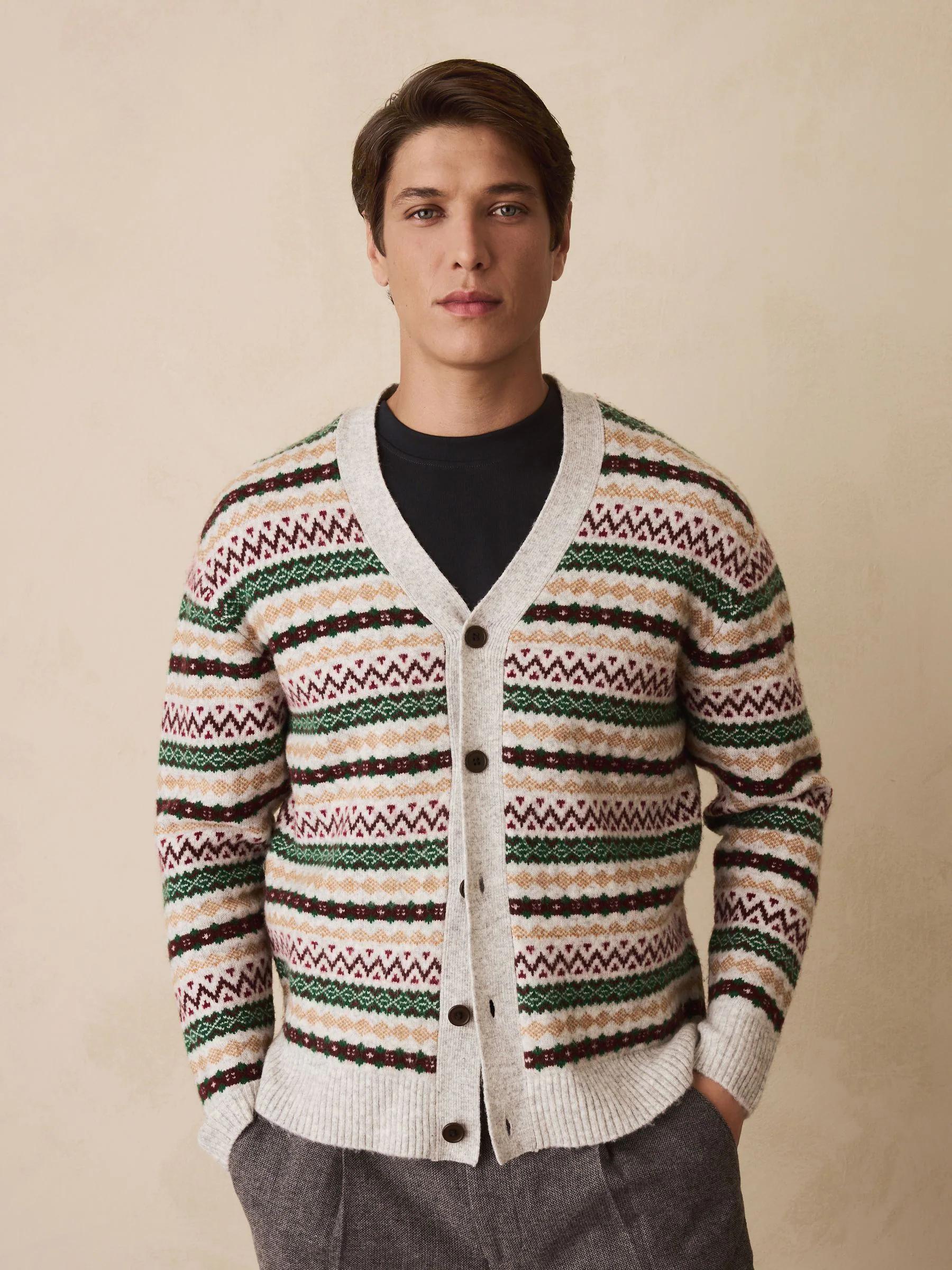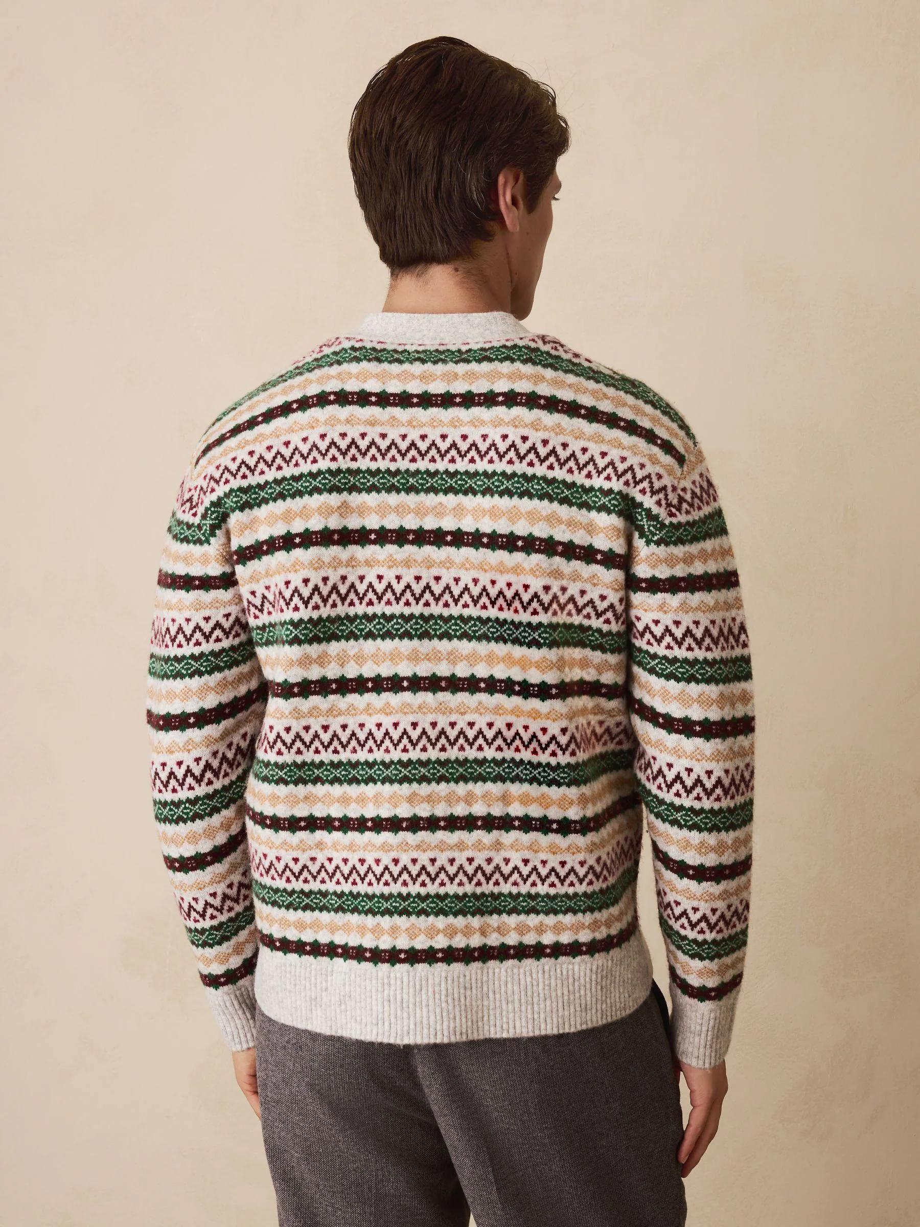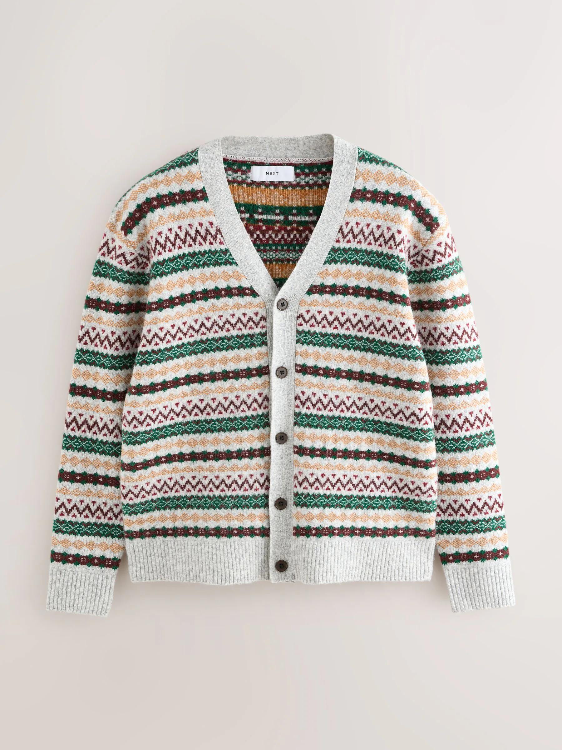 Light Grey Multi Relaxed Fit Cosy Fairisle Pattern Cardigan With Wool