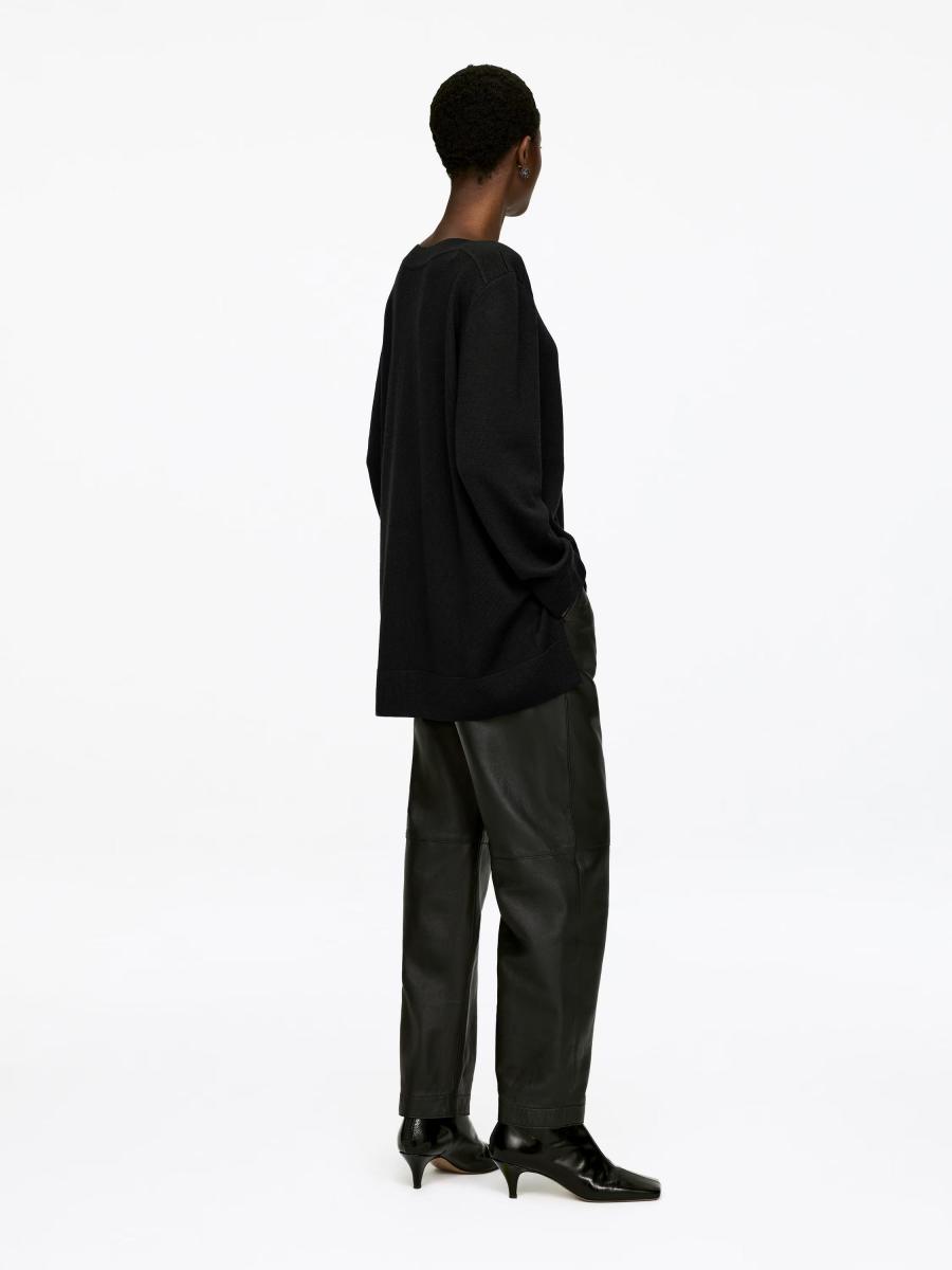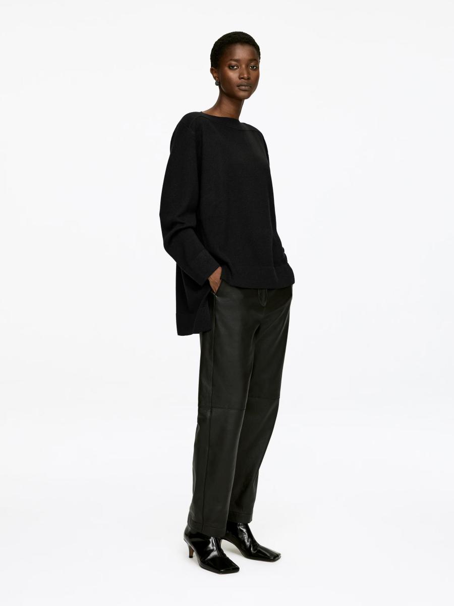 Jumper crafted from pure wool. Designed with a ribbed boat neckline, elongated back, side slits, and ribbed trims. Loose fit. The style contains 100% RWS wool (TE-00047206). Products certified to the Responsible Wool Standard (RWS) contain wool fiber from farms independently certified to animal welfare and land management requirements.ARKET/Women's clothes/Women's knitwear/Women's crew-neck jumpers