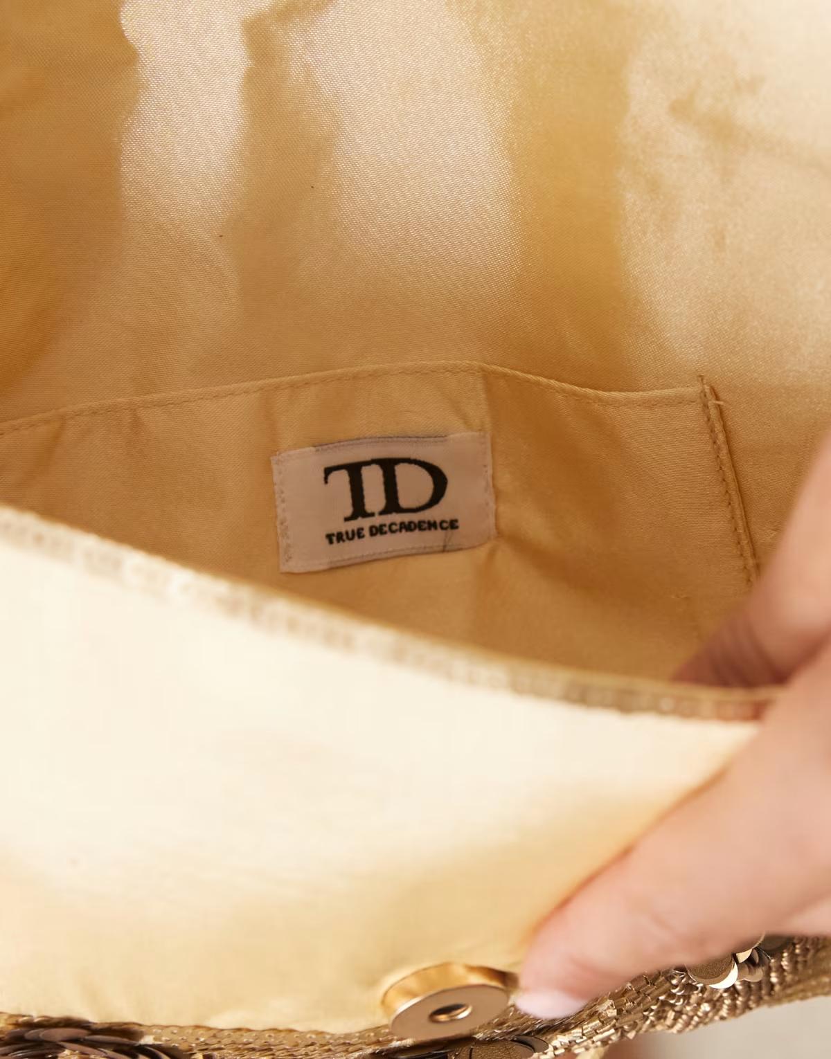BrandCombining timeless silhouettes with standout embellishments, True Decadence have been mastering occasionwear since 2016. The brand's eye-catching array of tiered maxi dresses, sweetheart tops and staple clutch bags take all the stress out of dressing to impress. Whether you’re heading to that summer wedding or invite-only garden party, achieve best-dressed status with our True Decadence at ASOS edit.Look After MeWipe clean onlyAbout MeWoven fabric: bead embellished