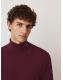 Burgundy Red Slim Fit Herringbone Texture Roll Neck Jumper