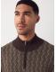 Brown Regular Fit Jacquard Geo Quarter Zip Neck Jumper
