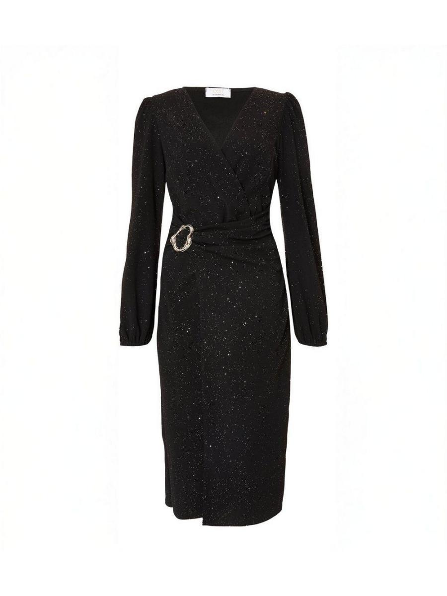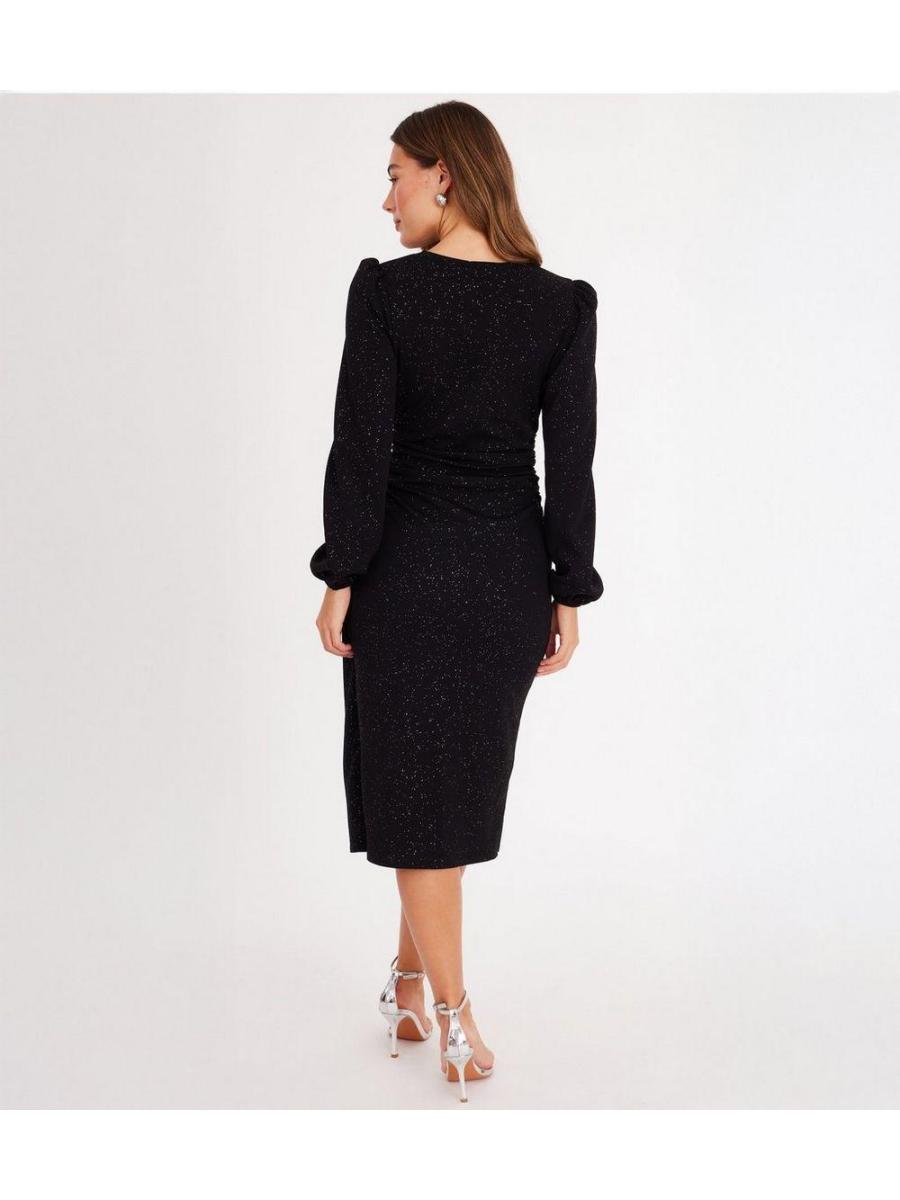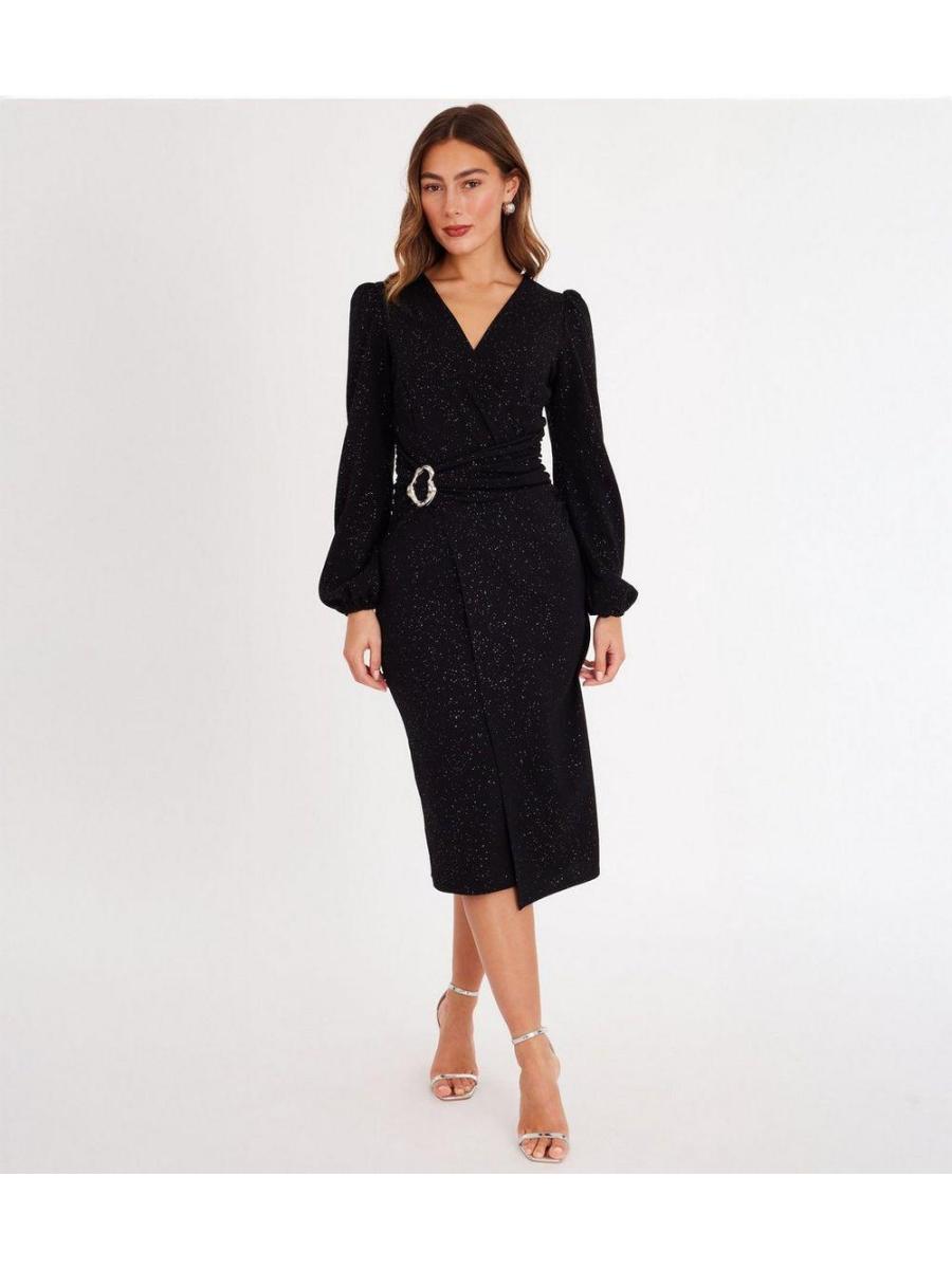 QUIZ Black Glitter Long Sleeve Midi Dress