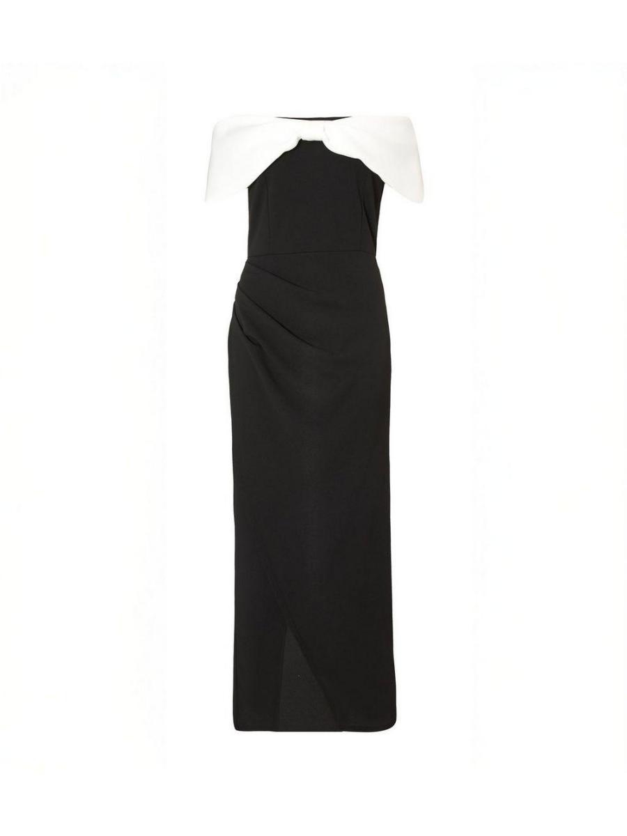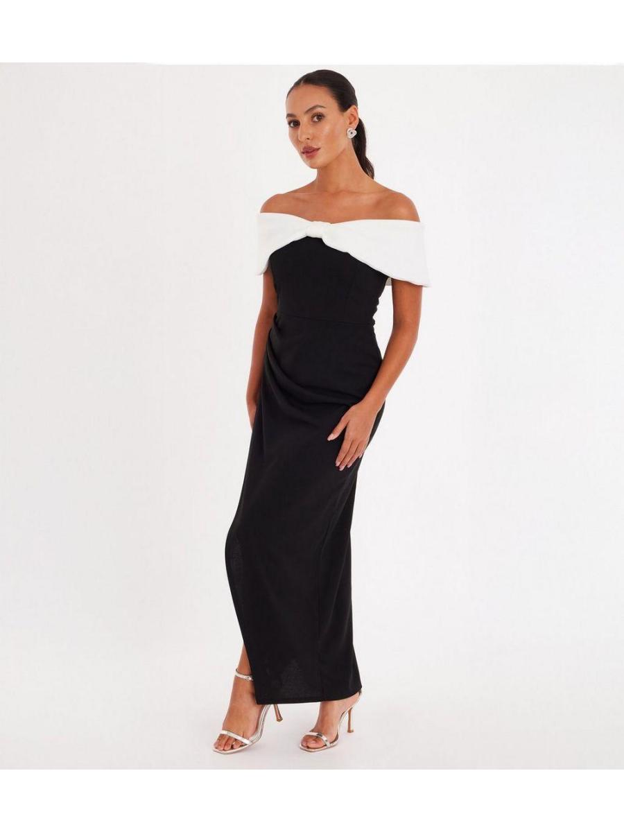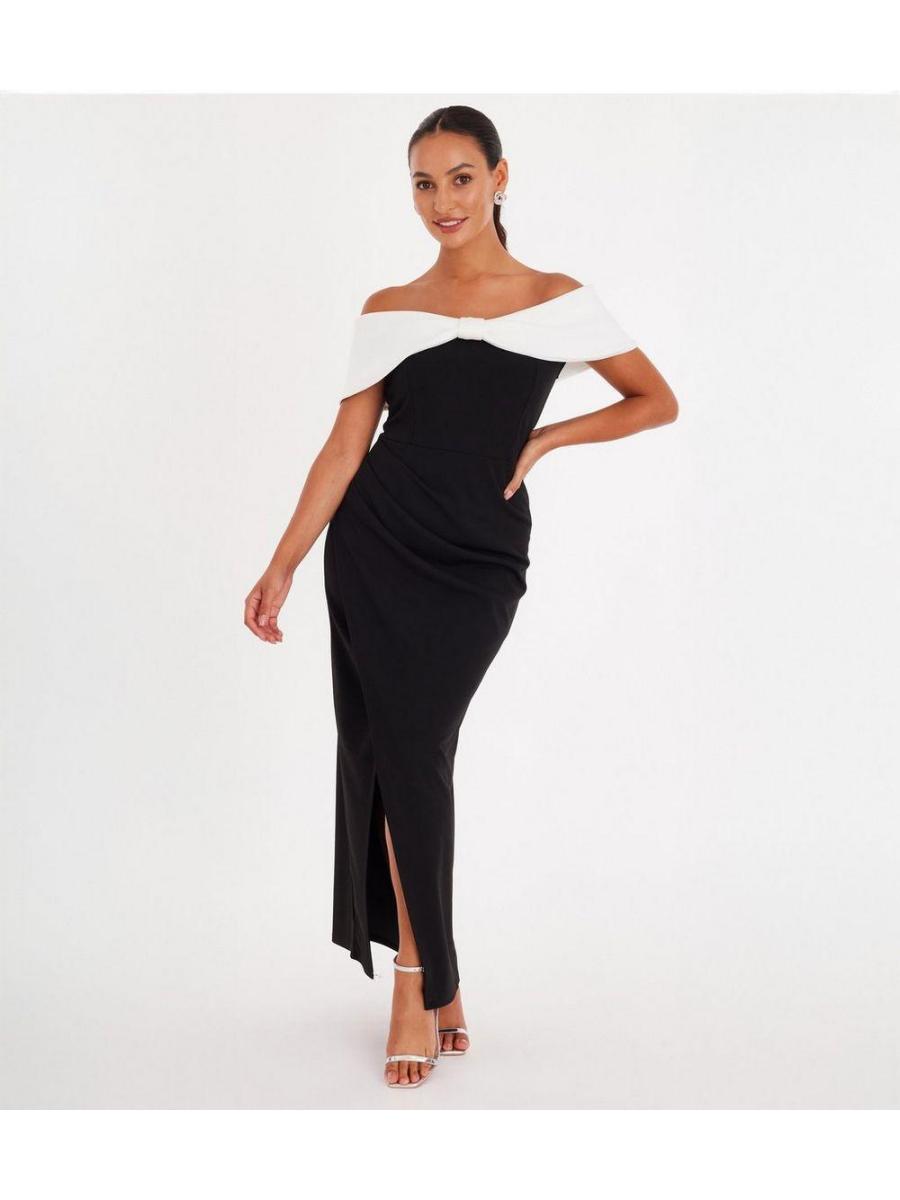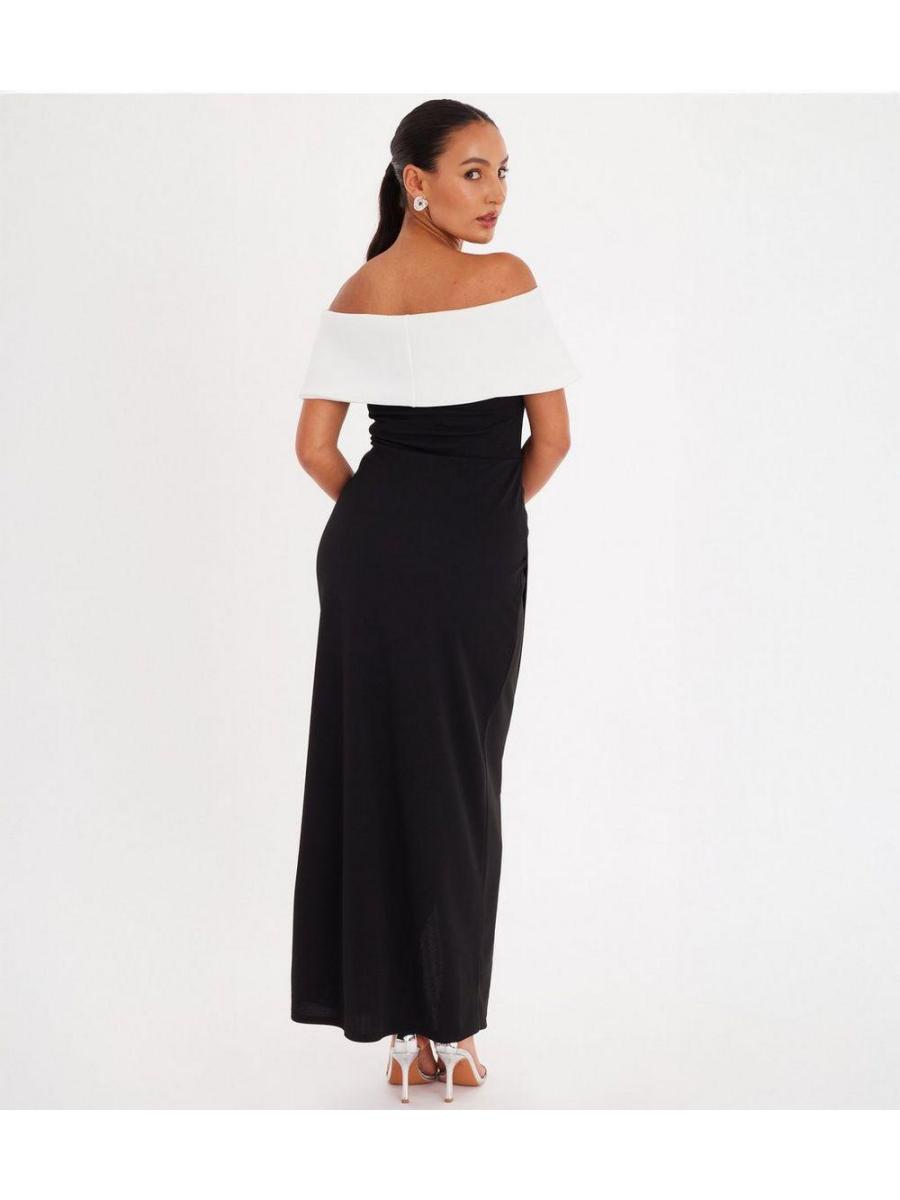 QUIZ Black Scuba Bardot Ruched Maxi Dress
