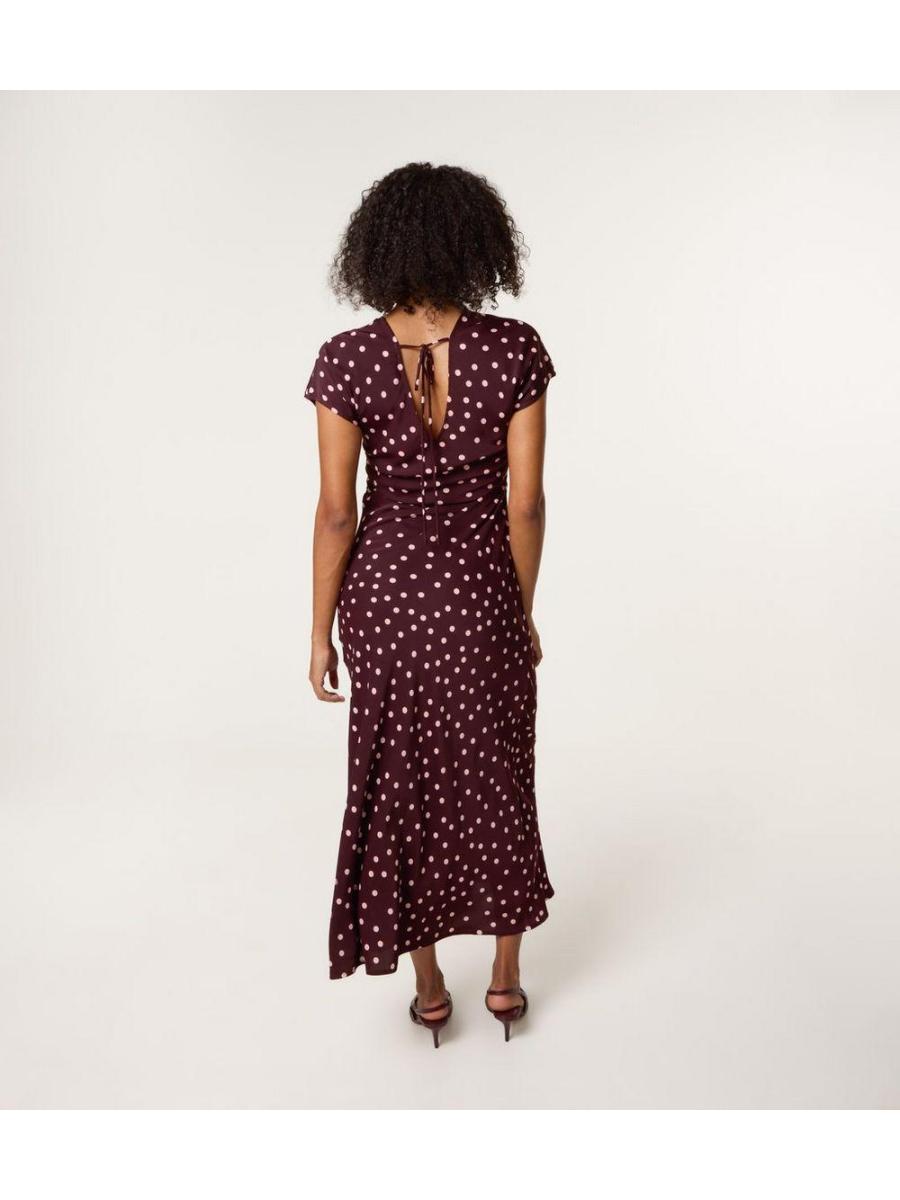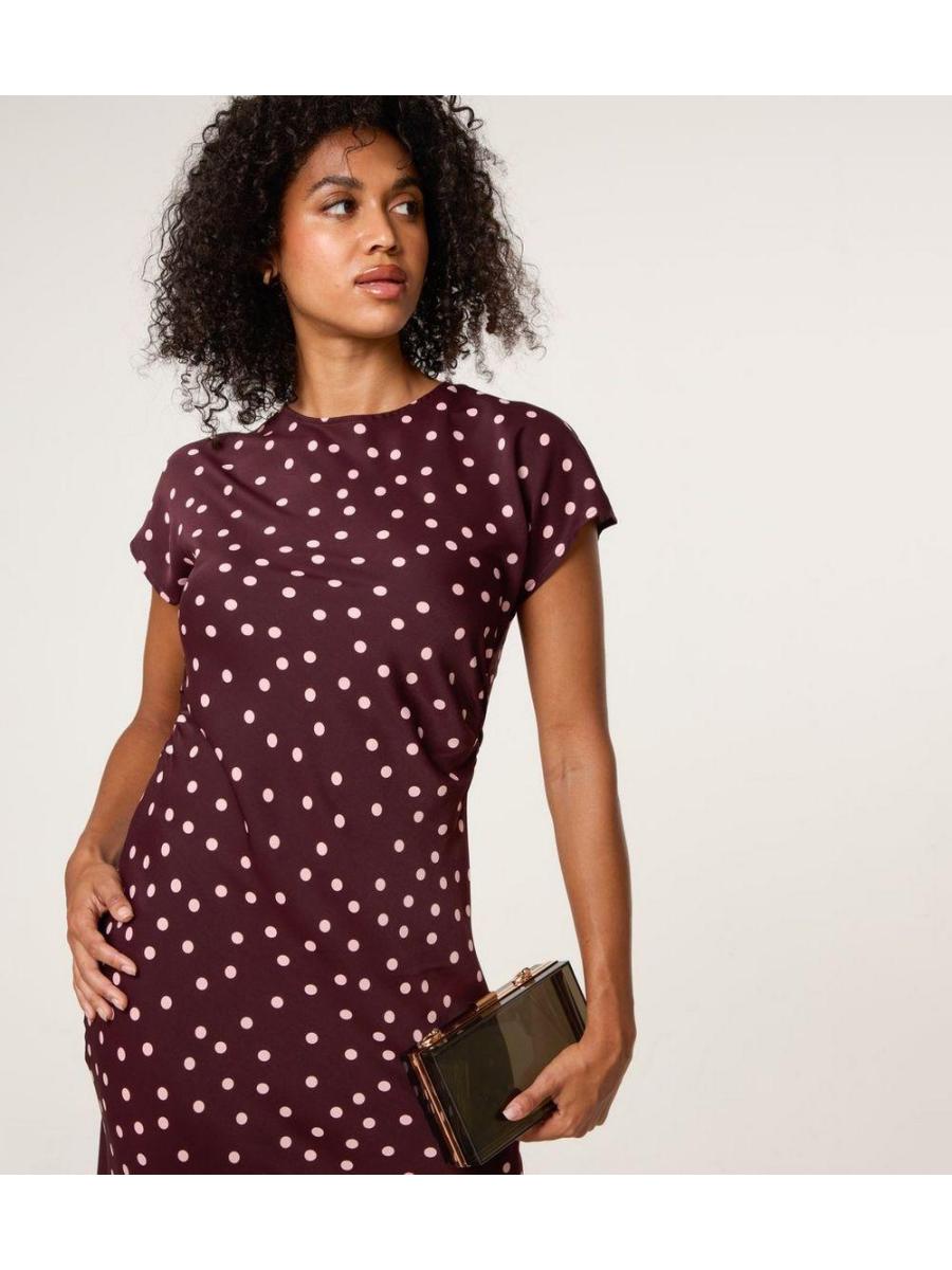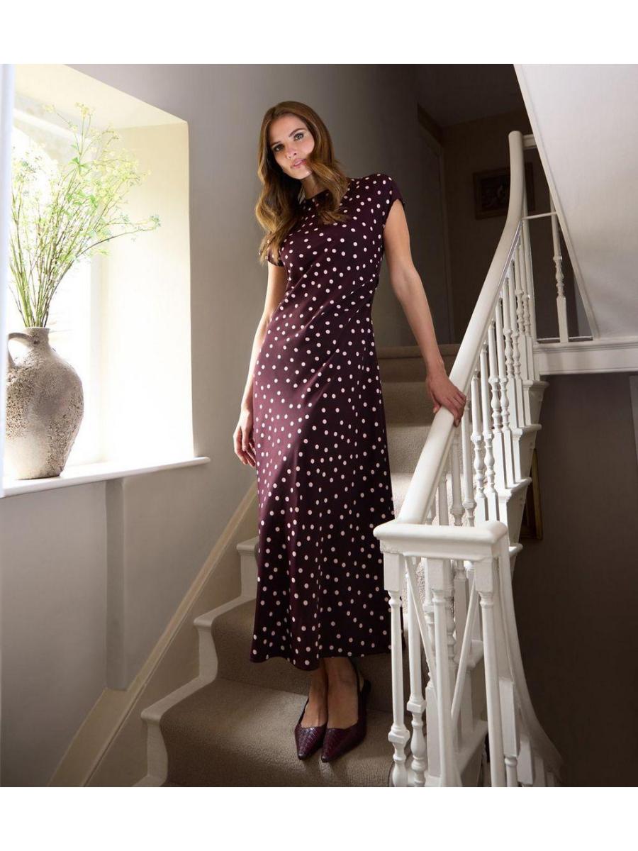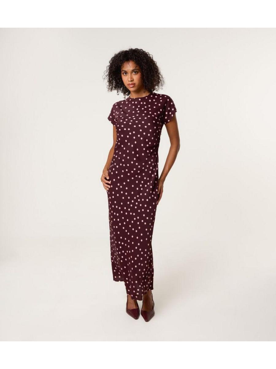 Blue Vanilla Burgundy Polka Dot Midi Dress