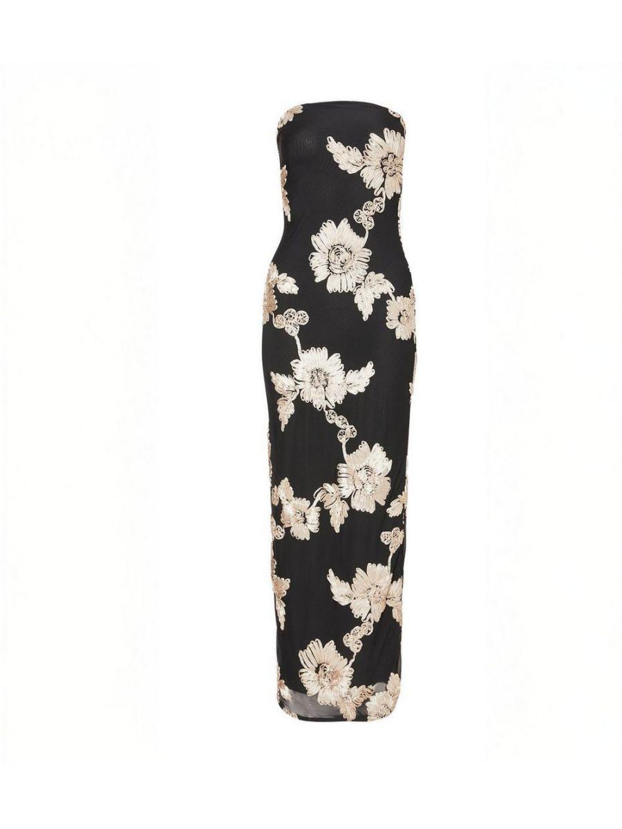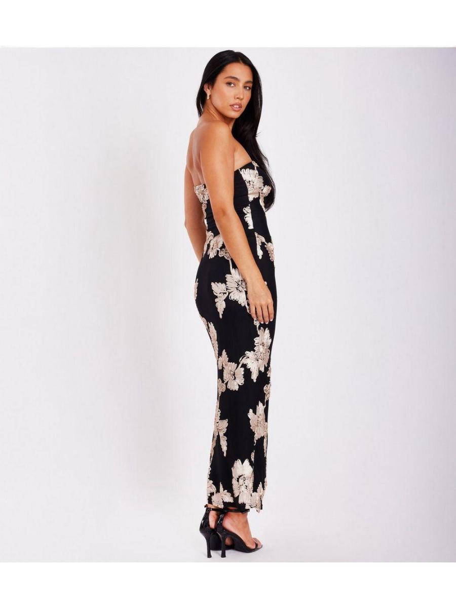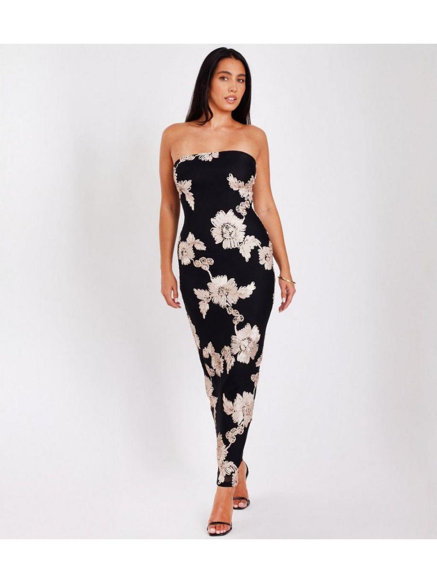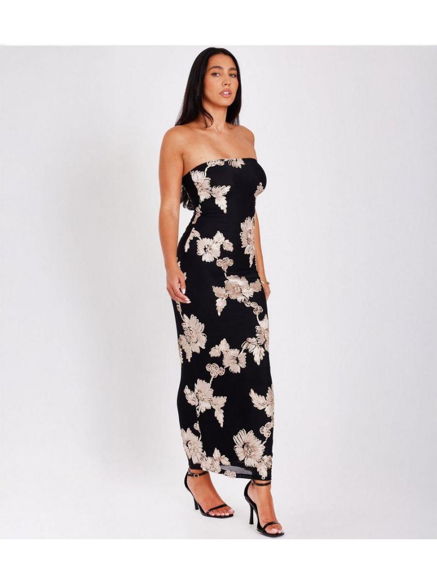 QUIZ Black Embroidered Flower Strapless Midaxi Dress
