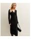 Petite Black Ribbed Henley Midi Dress