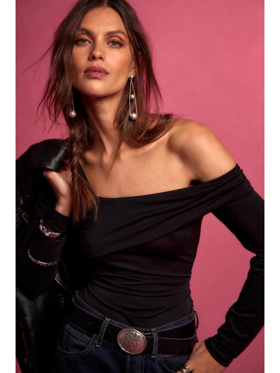 Cupro Jeni Off-The-Shoulder Long Sleeve Top
