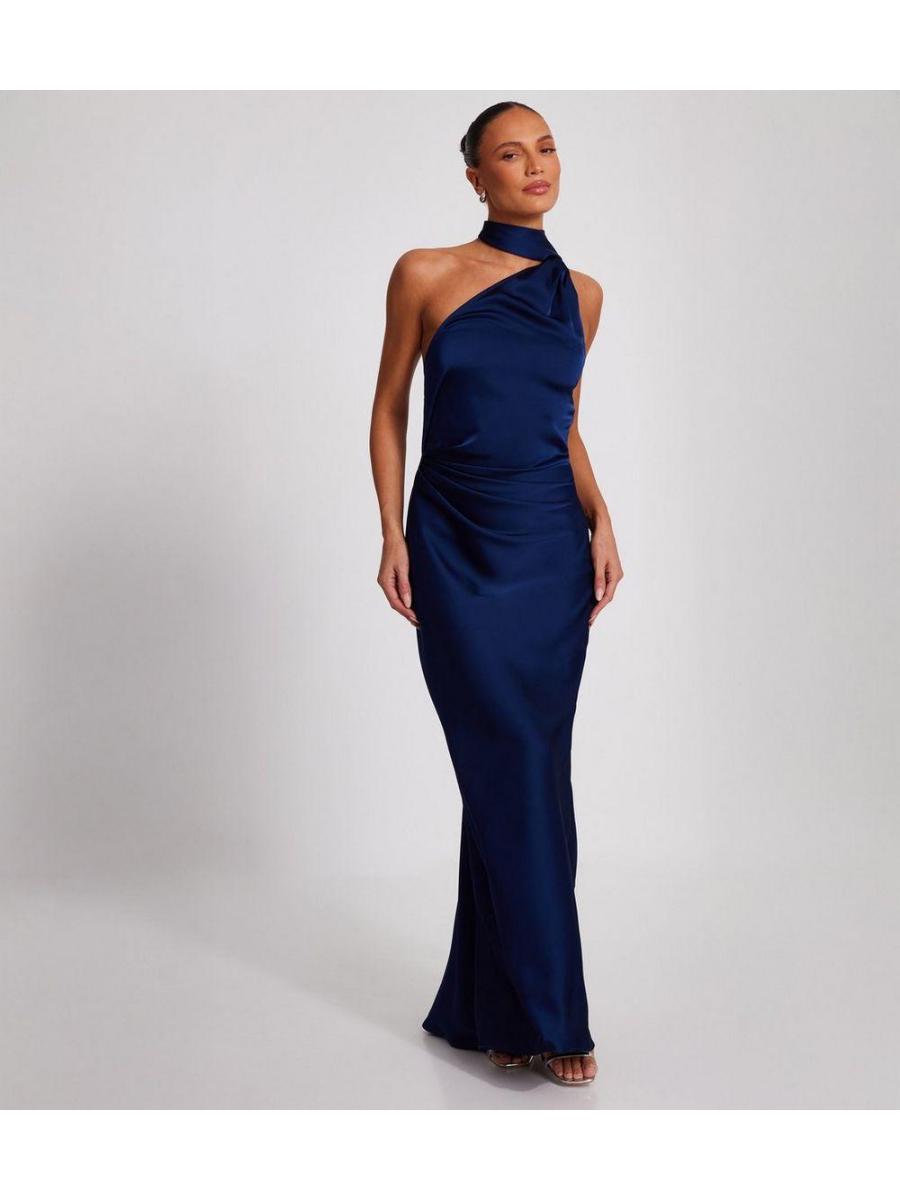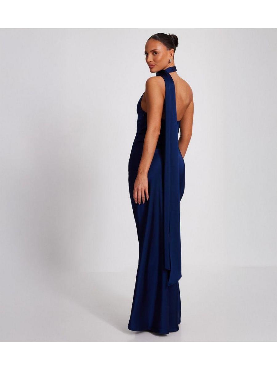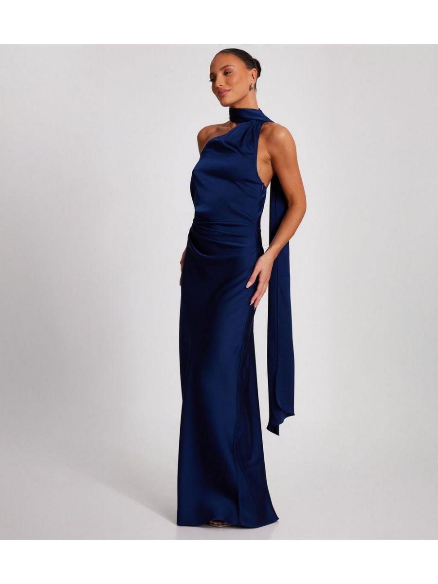 QUIZ Navy Asymmetric Satin Maxi Dress
