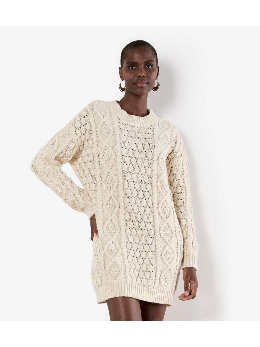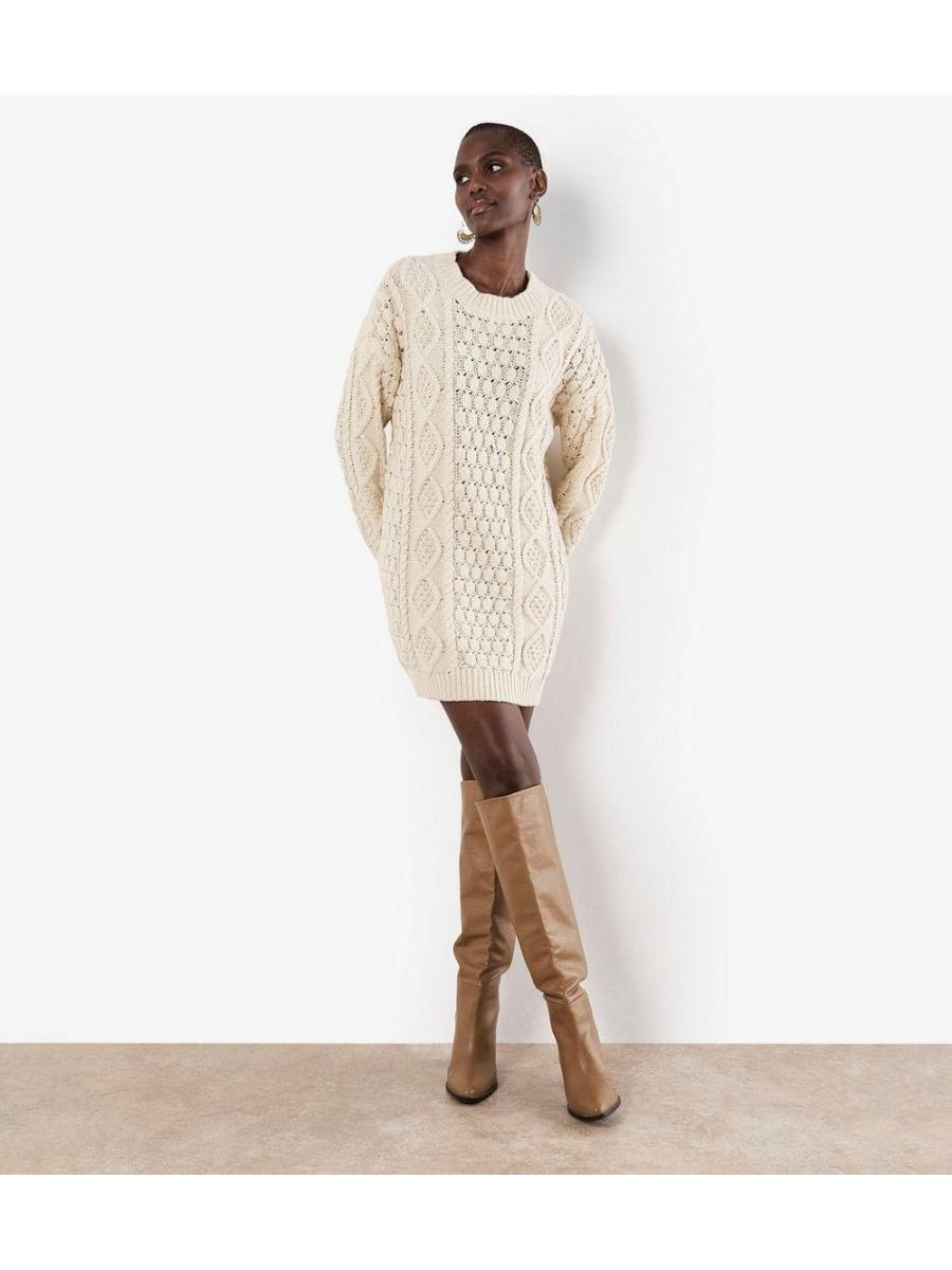 Apricot Stone Cable Knit Oversized Jumper Dress