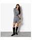 Apricot Grey Stripe Cuff Long Sleeve Mini Dress