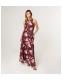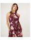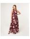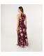 Blue Vanilla Burgundy Floral Print Mesh Halterneck Maxi Dress