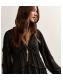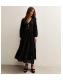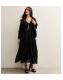 Black Gold Fleck Ruffle Trim Chiffon Midi Dress