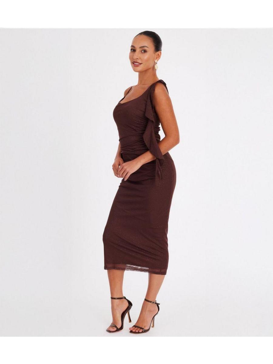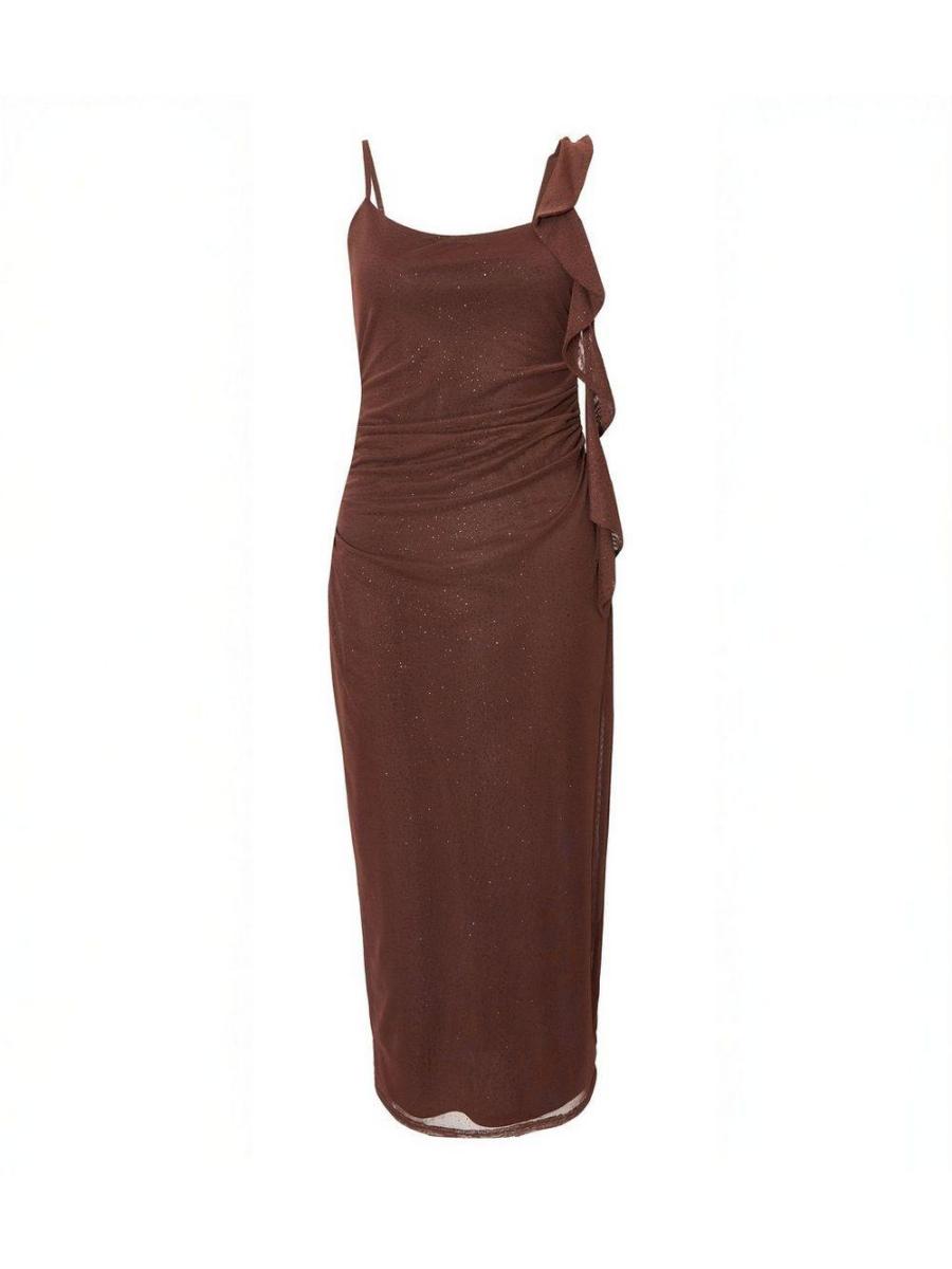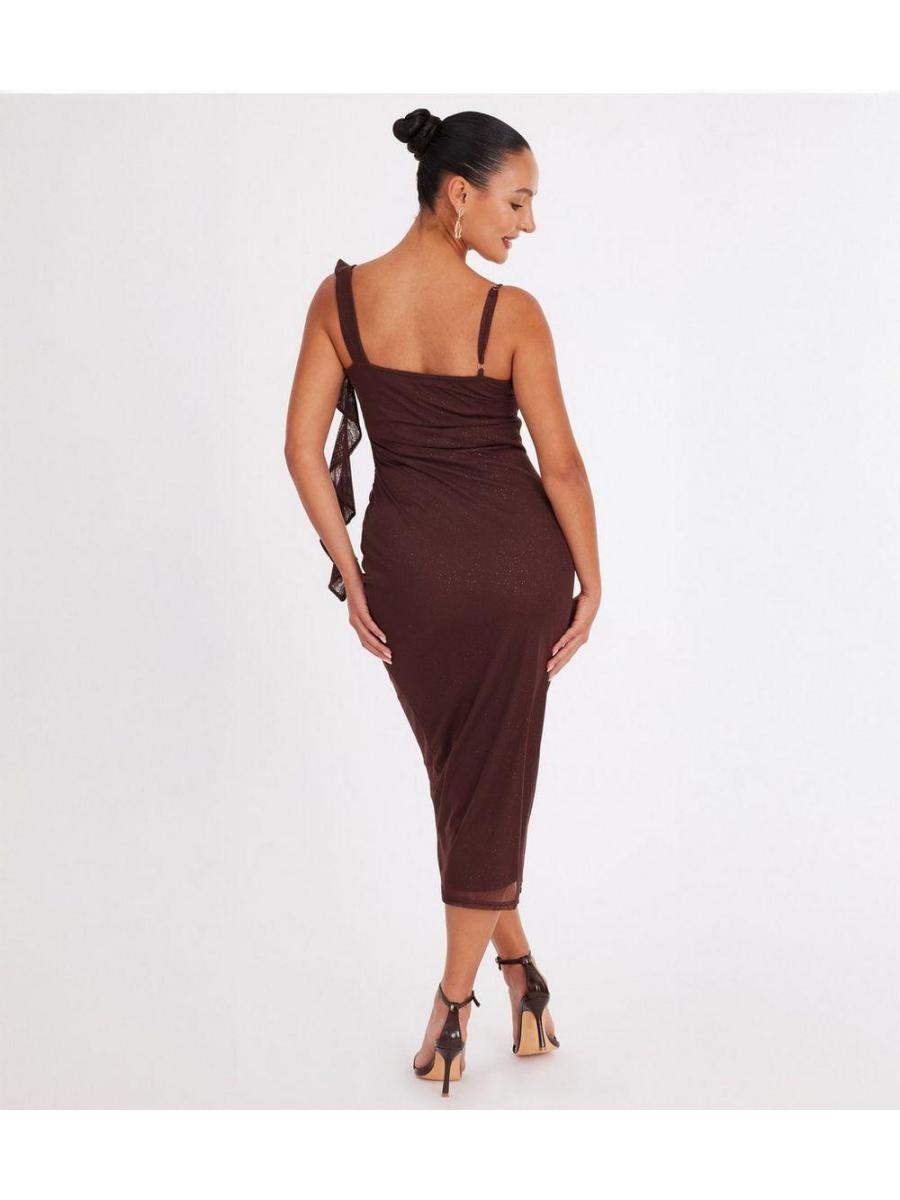 QUIZ Petite Brown Glitter Mesh Midaxi Dress