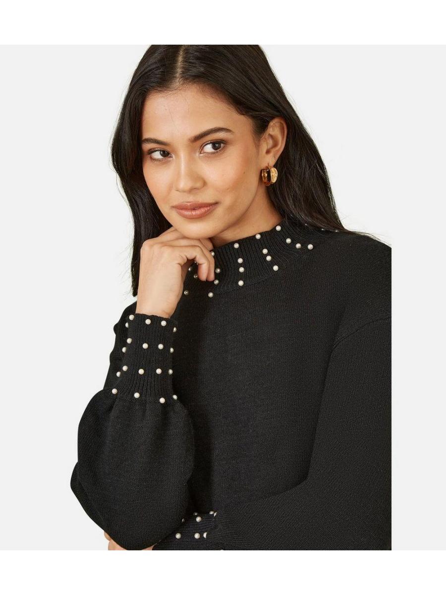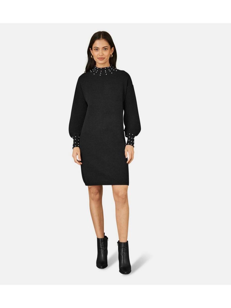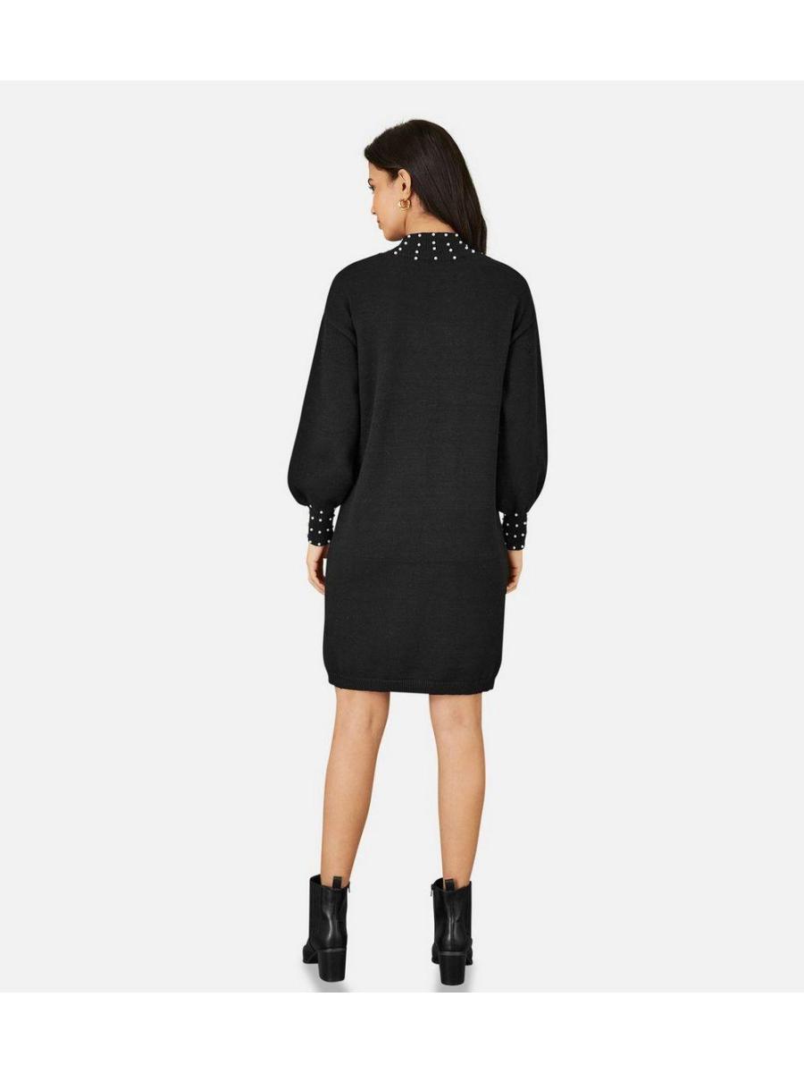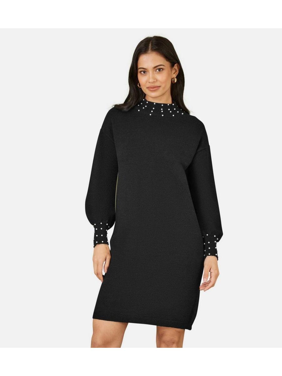 Yumi Black Faux Pearl Necklace Knit Dress