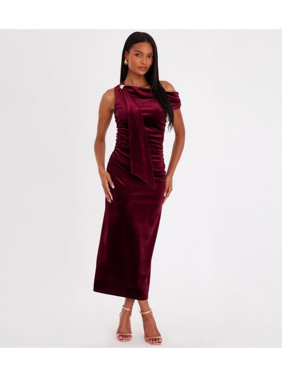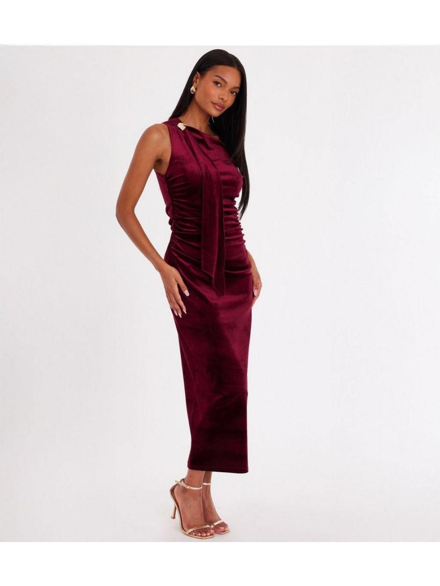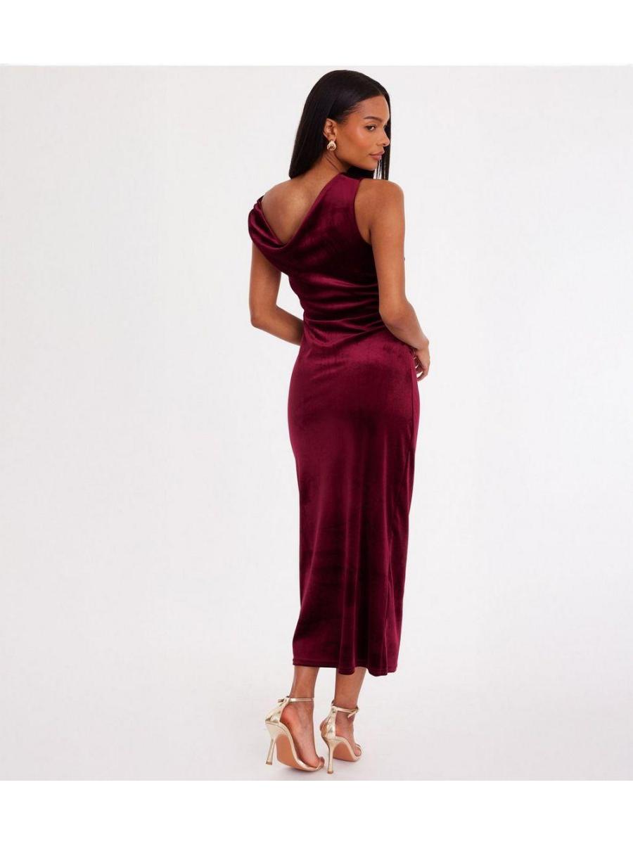QUIZ Dark Red Velvet Midaxi Dress