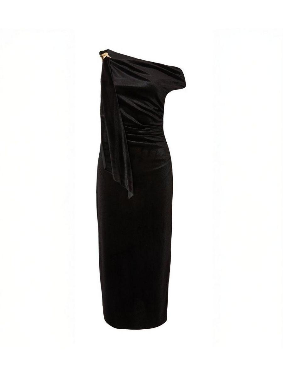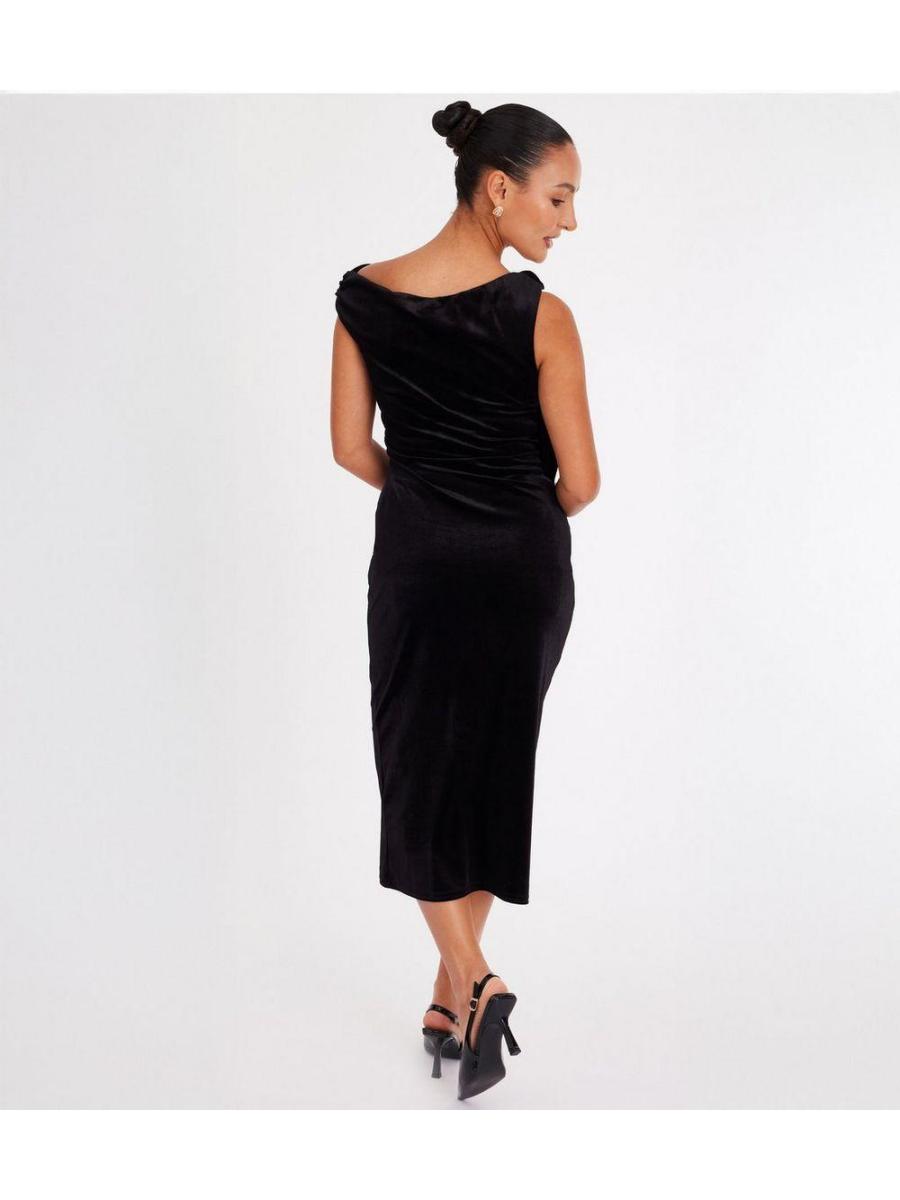 QUIZ Petite Black Velvet Midaxi Dress