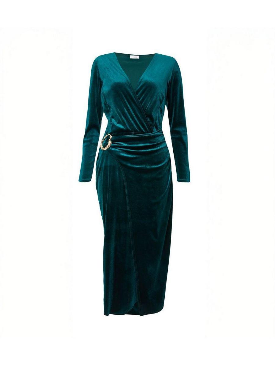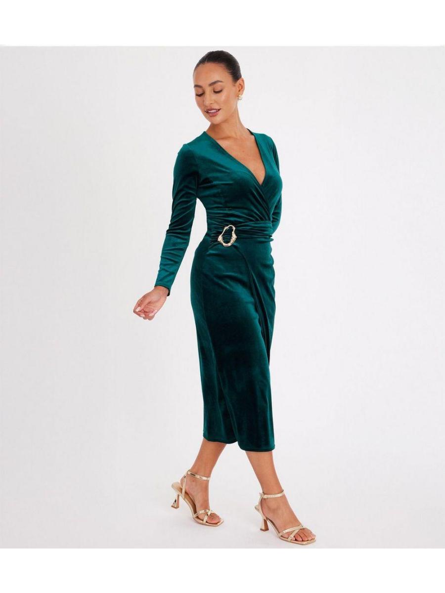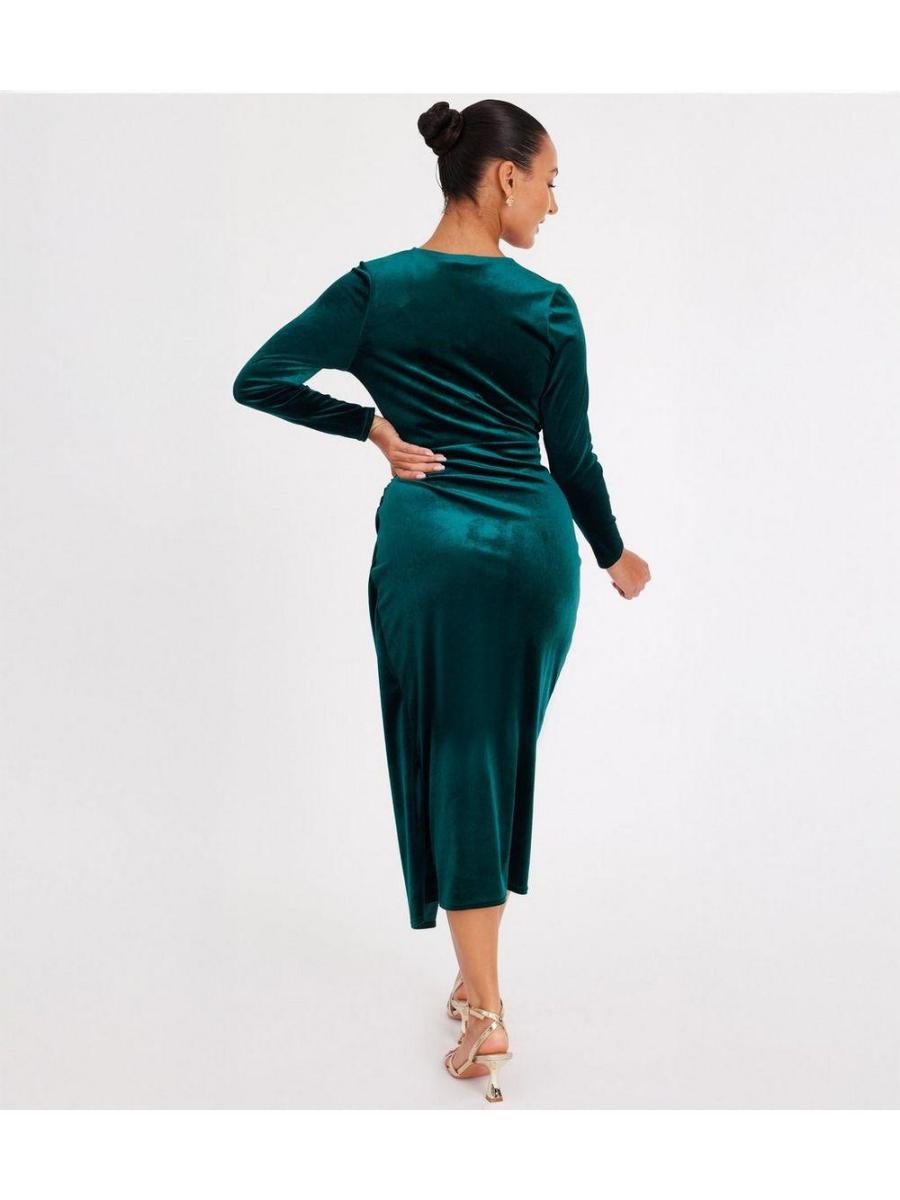 QUIZ Petite Dark Green Velvet Midaxi Dress
