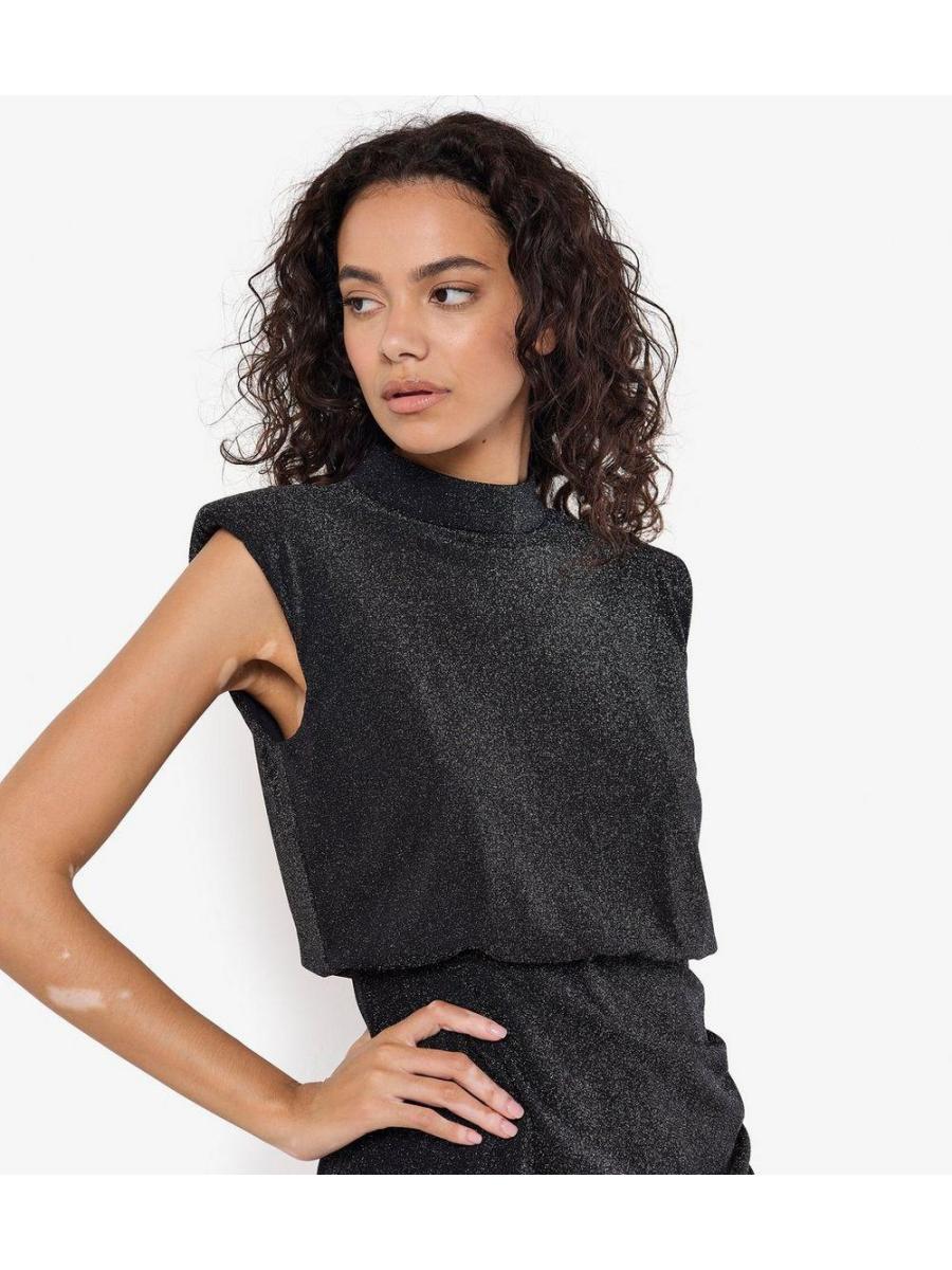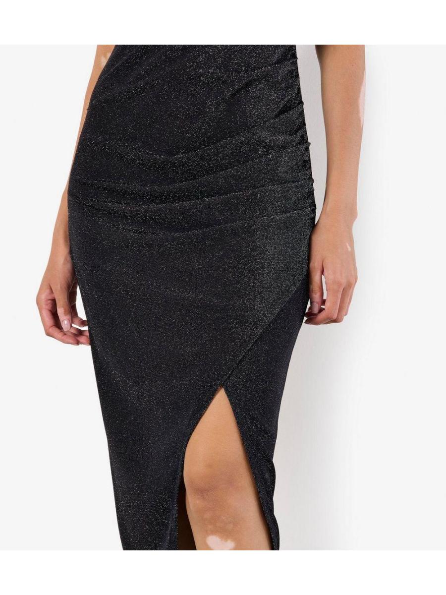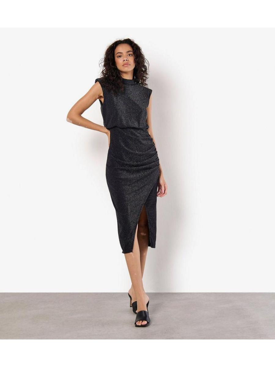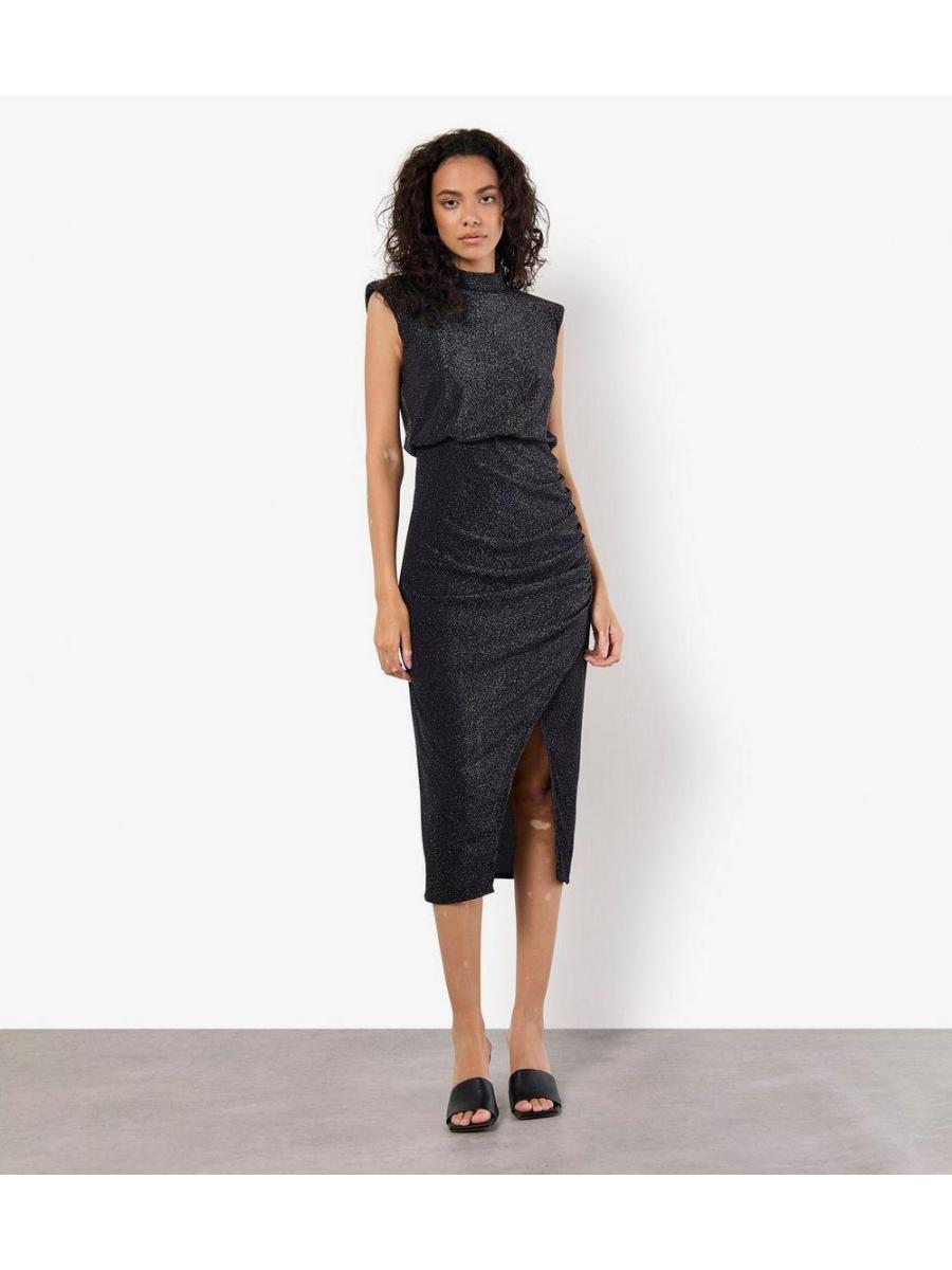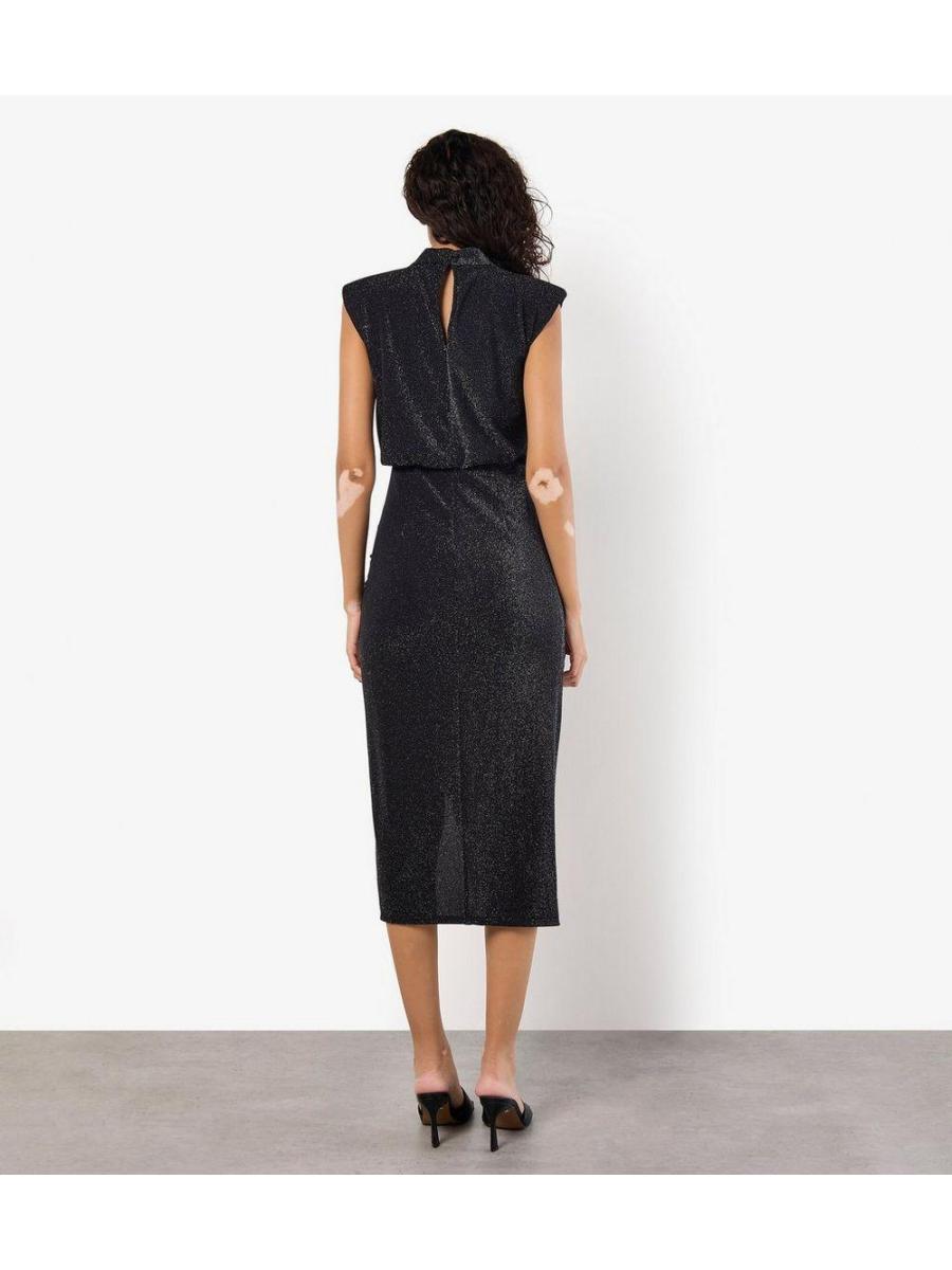 Apricot Sparkly High Neck Sleeveless Midi Dress