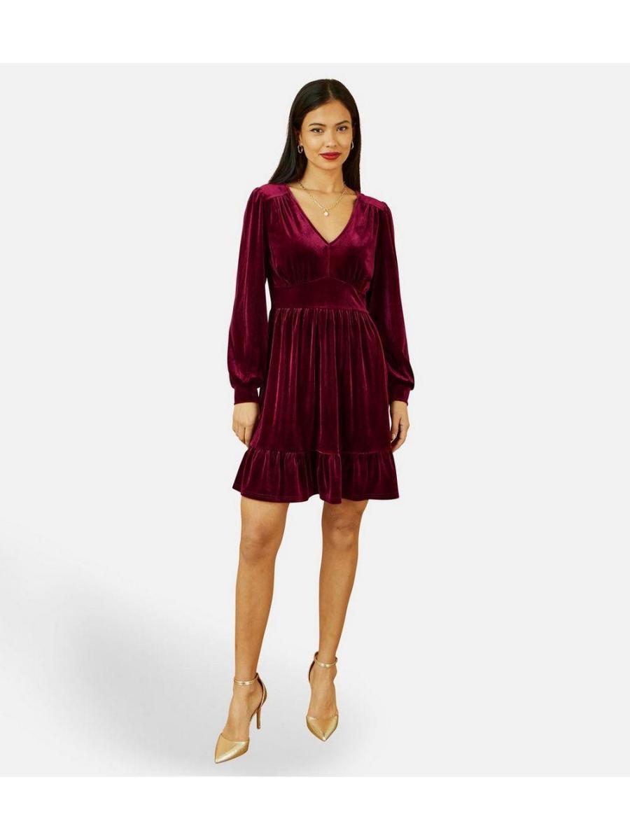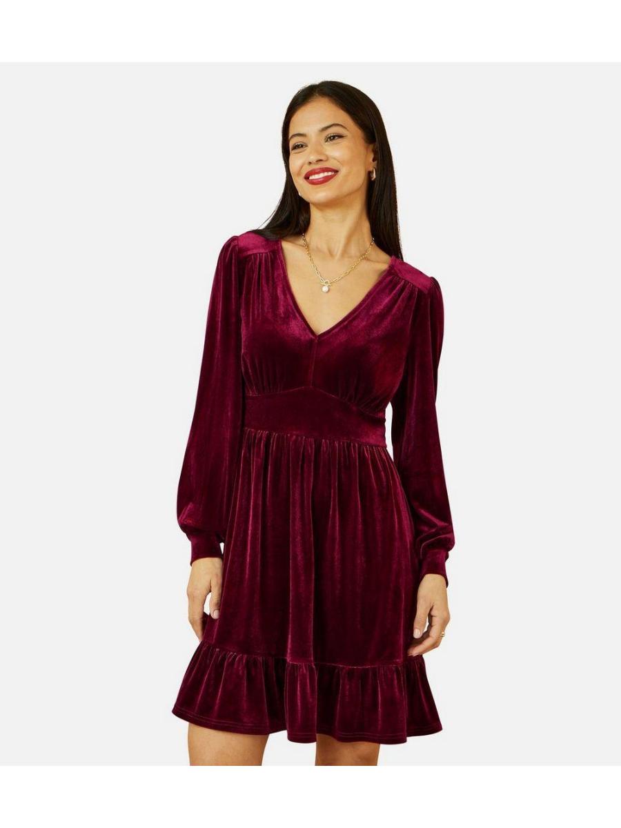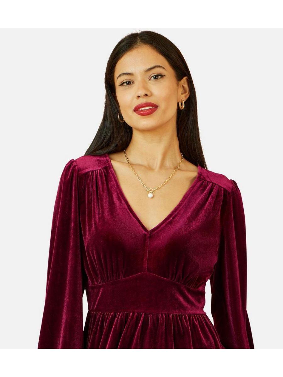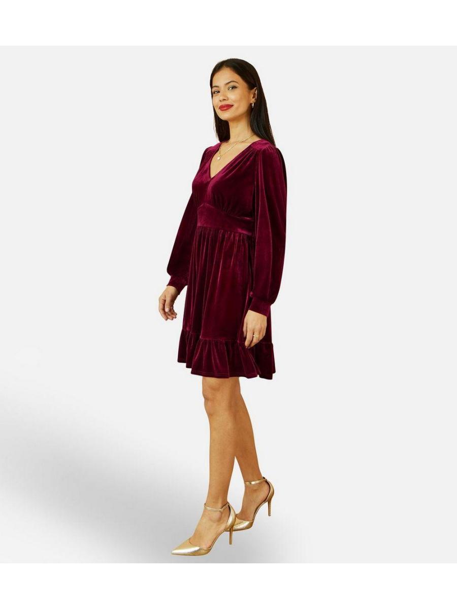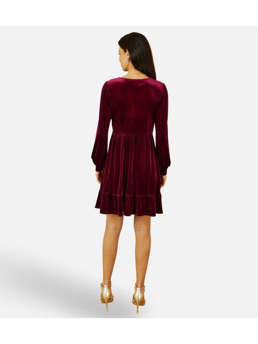 Yumi Burgundy Velvet Long Sleeve Skater Dress