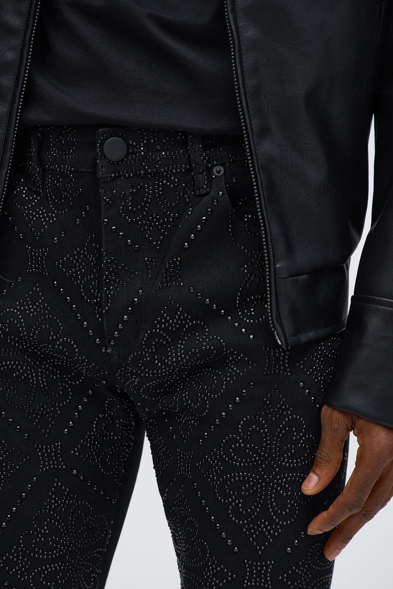 Stacked Skinny Flare Walk With It Jewel Jean - Black | Fashion Nova