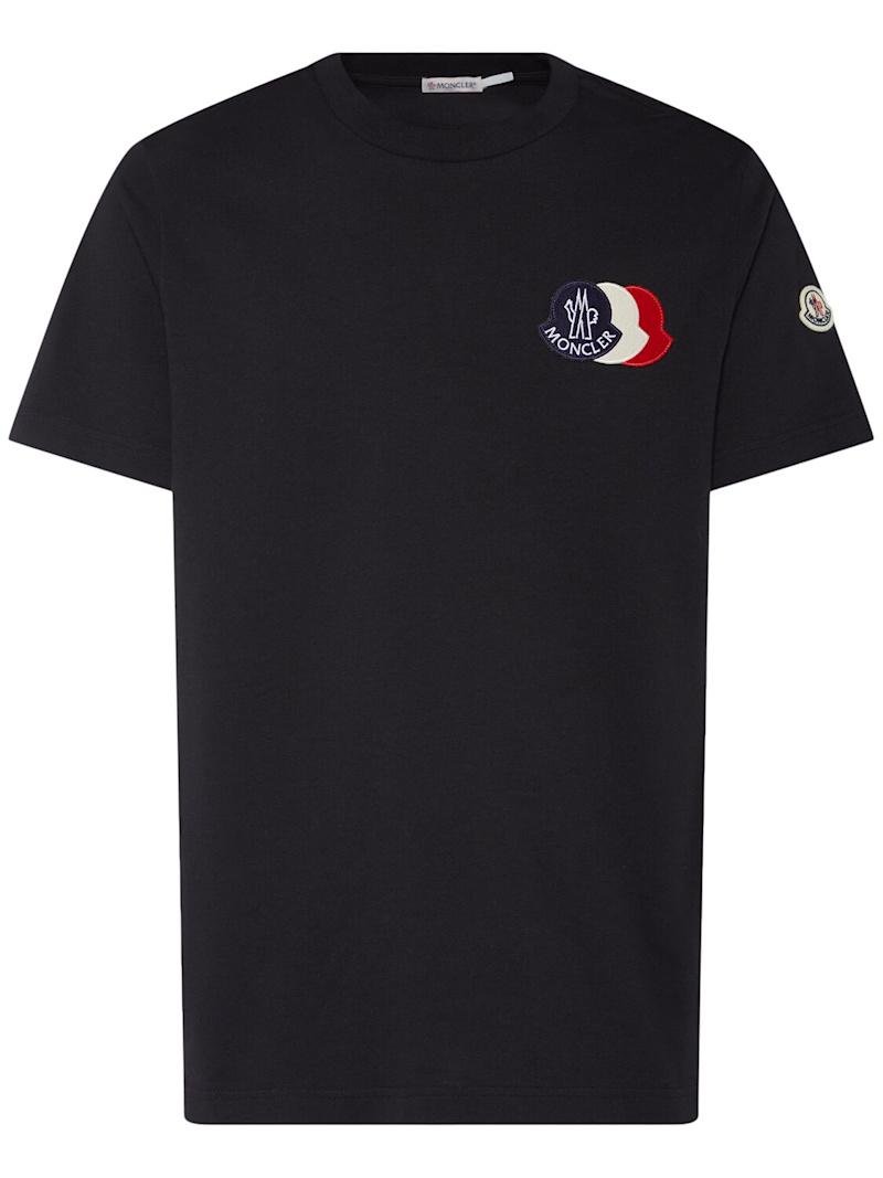 刺绣三色logo棉质T恤 - 海军蓝 - 男士 - Moncler - 由有机棉质平纹织物制作.