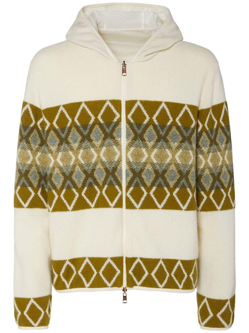 两面穿尼龙拉链开合连帽卫衣 - 白色/绿色 - 男士 - Moncler - 由粗纺羊毛制作.