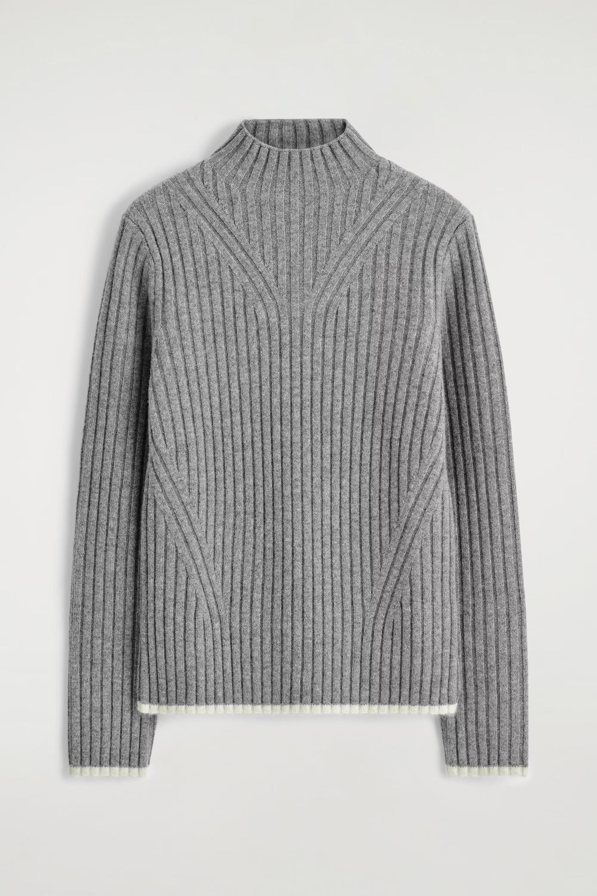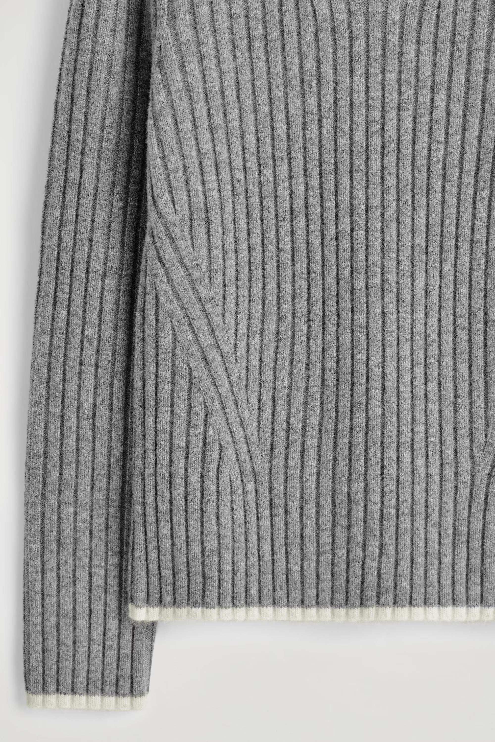 The COS knitwear collection is anchored by contemporary wardrobe signatures. This modern jumper is knitted from premium merino wool that has an ultra-soft handle and is cut in a defined silhouette. The cuffs and hem are detailed with contrast piping in a cream tone.\u0026nbsp;Slim fitThis product contains Responsible Wool Standard TE-00047206 (RWS) wool fibre from farms certified to animal welfare and land-management requirements\u0026nbsp;Shell: 100% Merino wool. Excluding trims / Machine wash\u0026nbsp;Back length of size S is 62cm / Model wears a size S