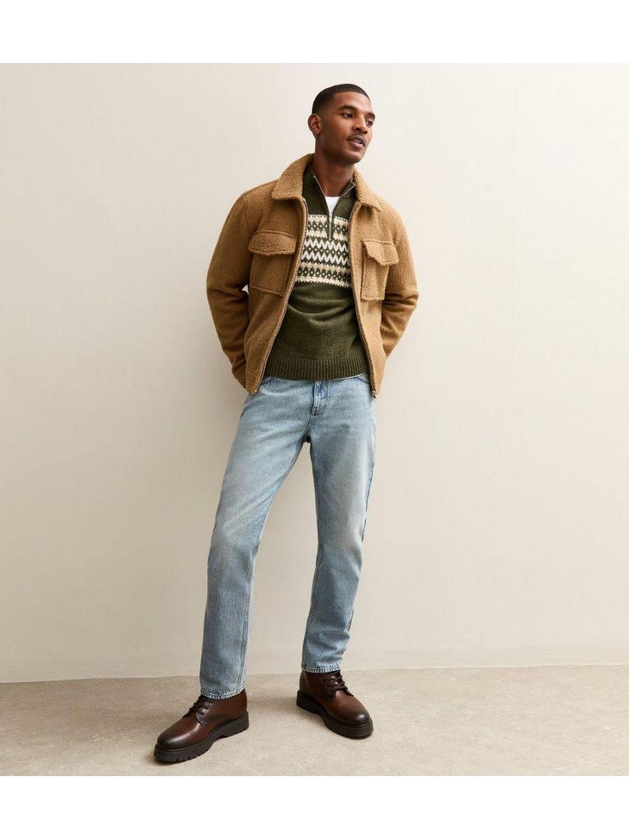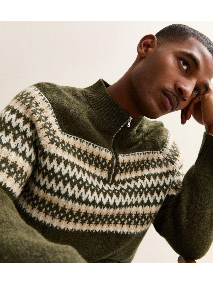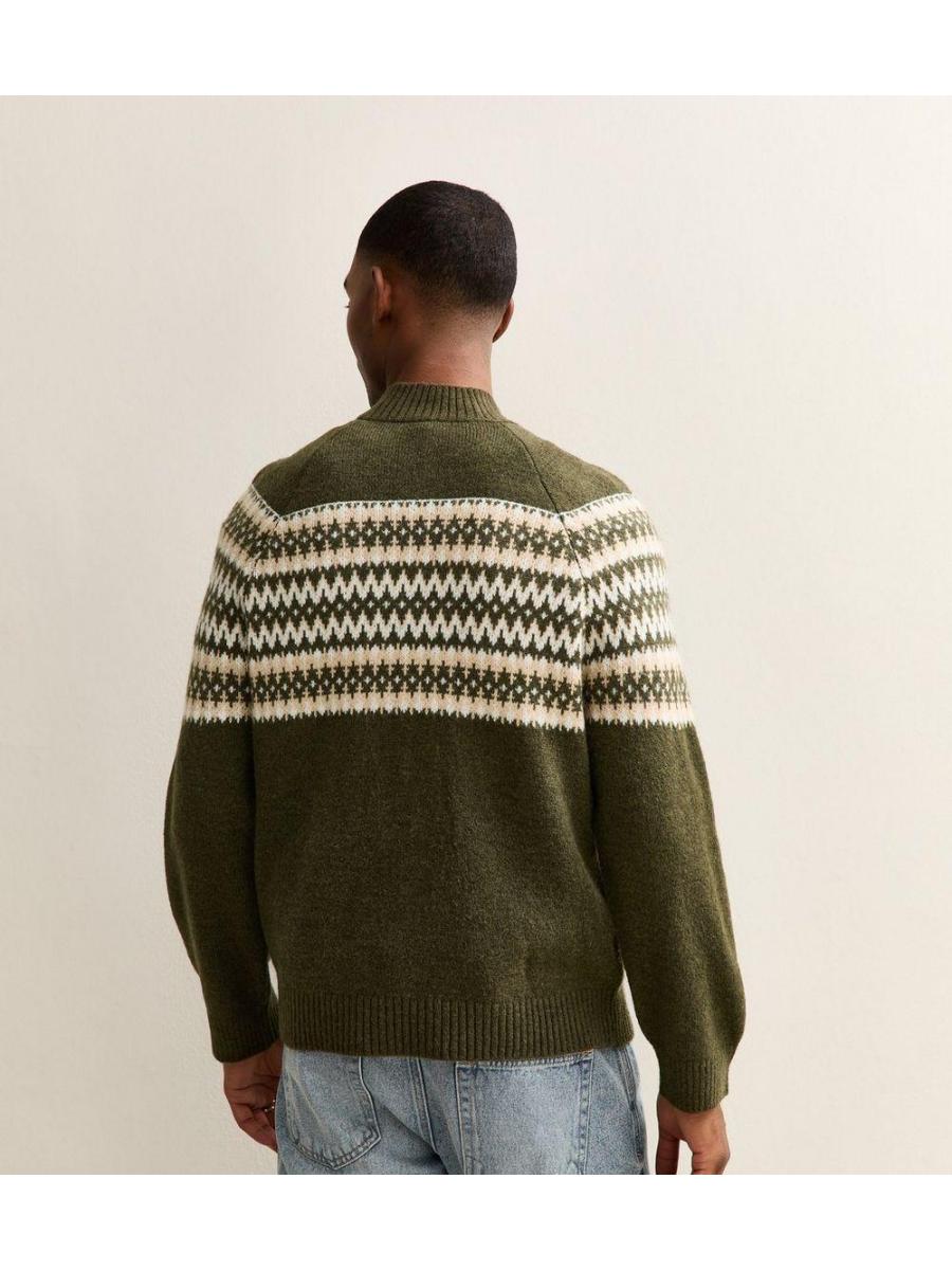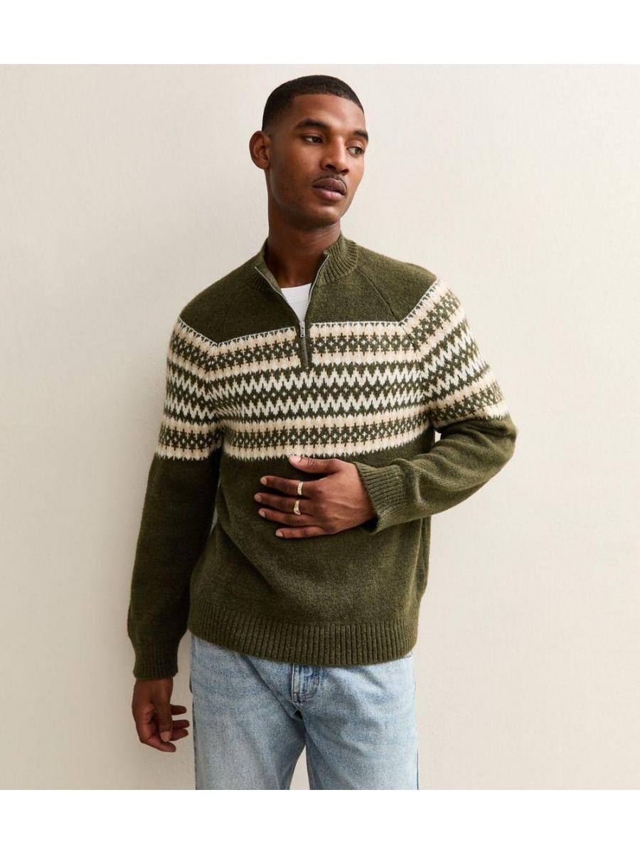 Green Regular Quarter Zip Fairisle Pattern Jumper
