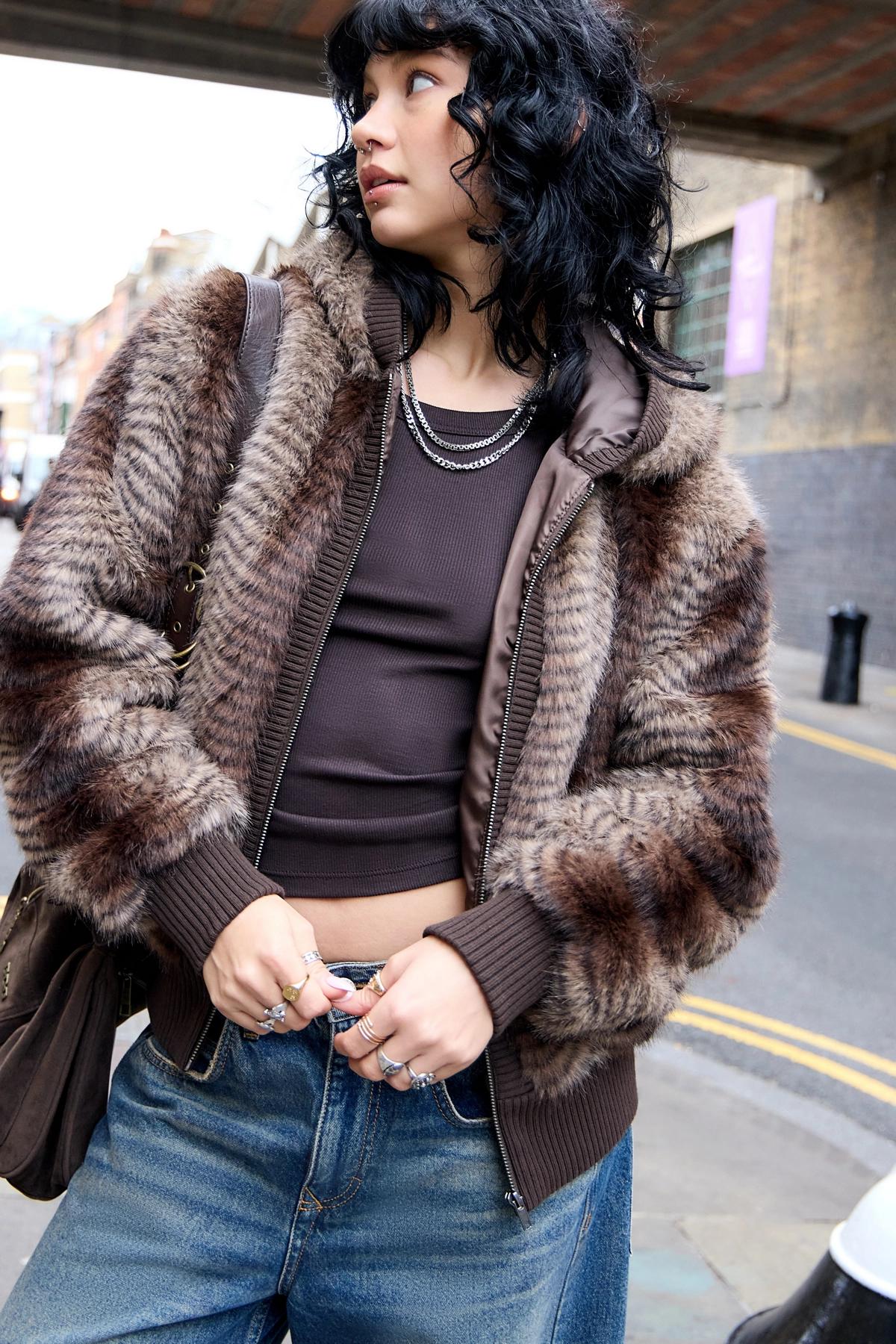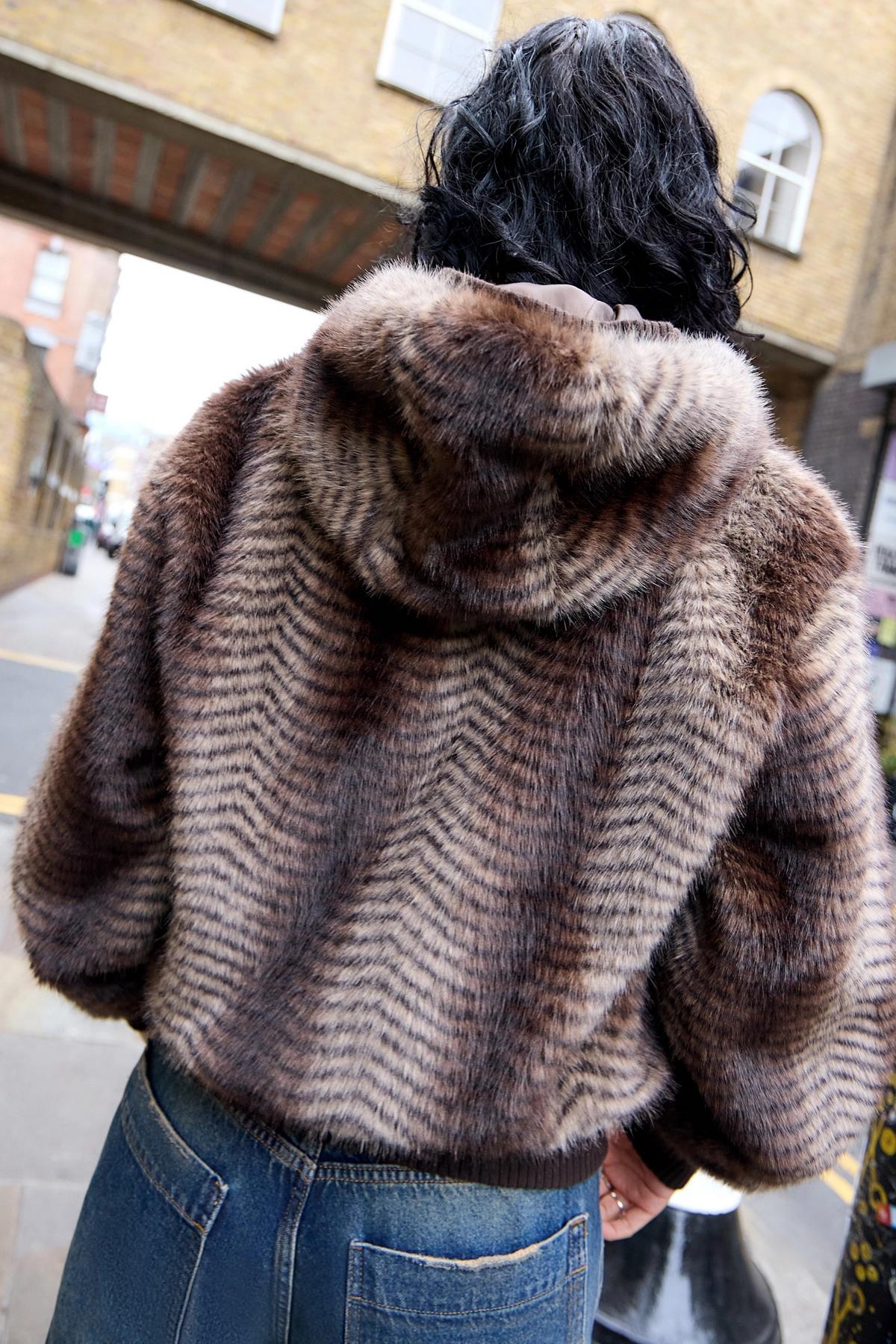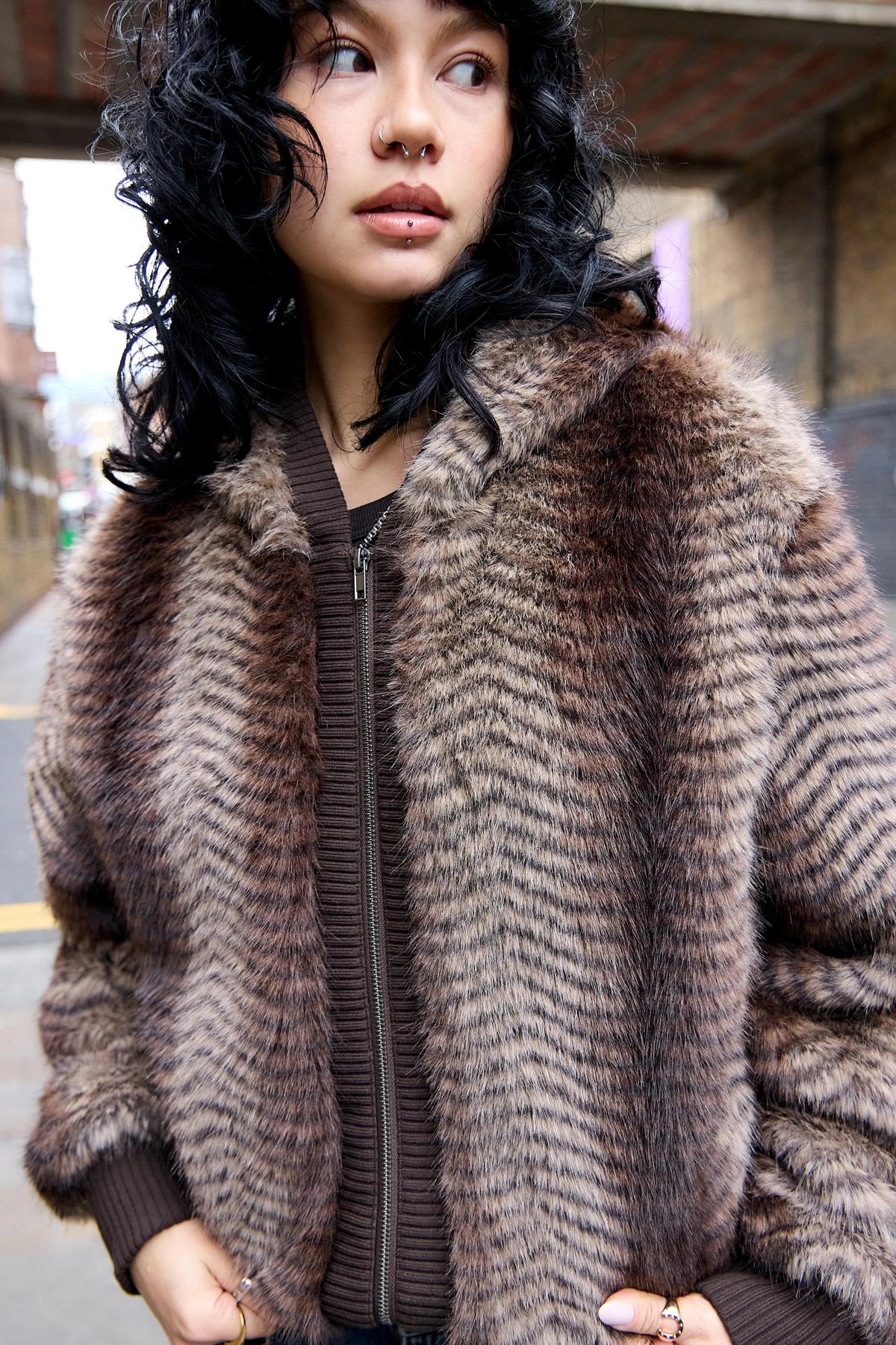 Jaded London Stripe Bear Faux Fur Hooded Jacket