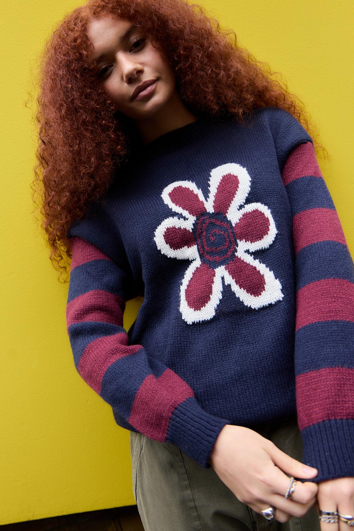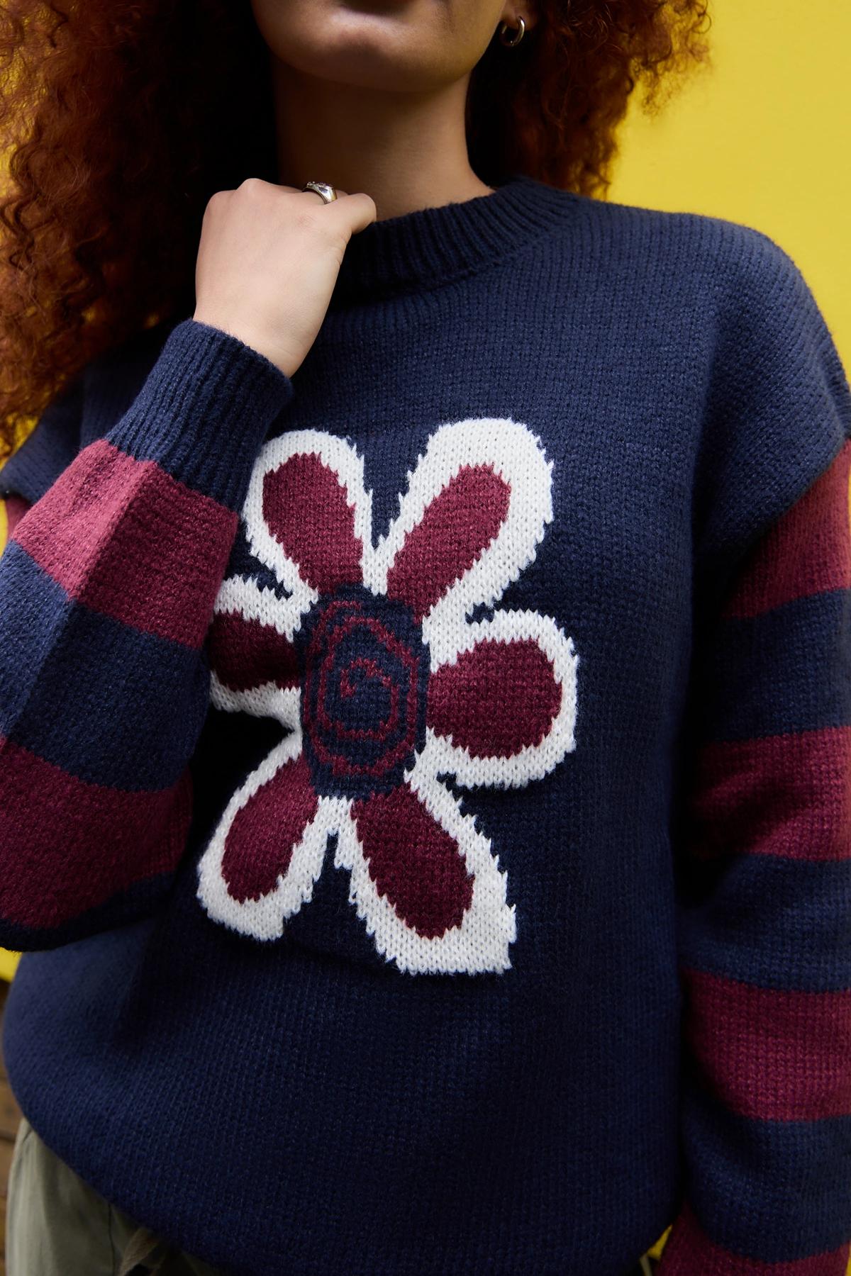 Daisy Street Navy & Burgundy Stripe Knit Jumper