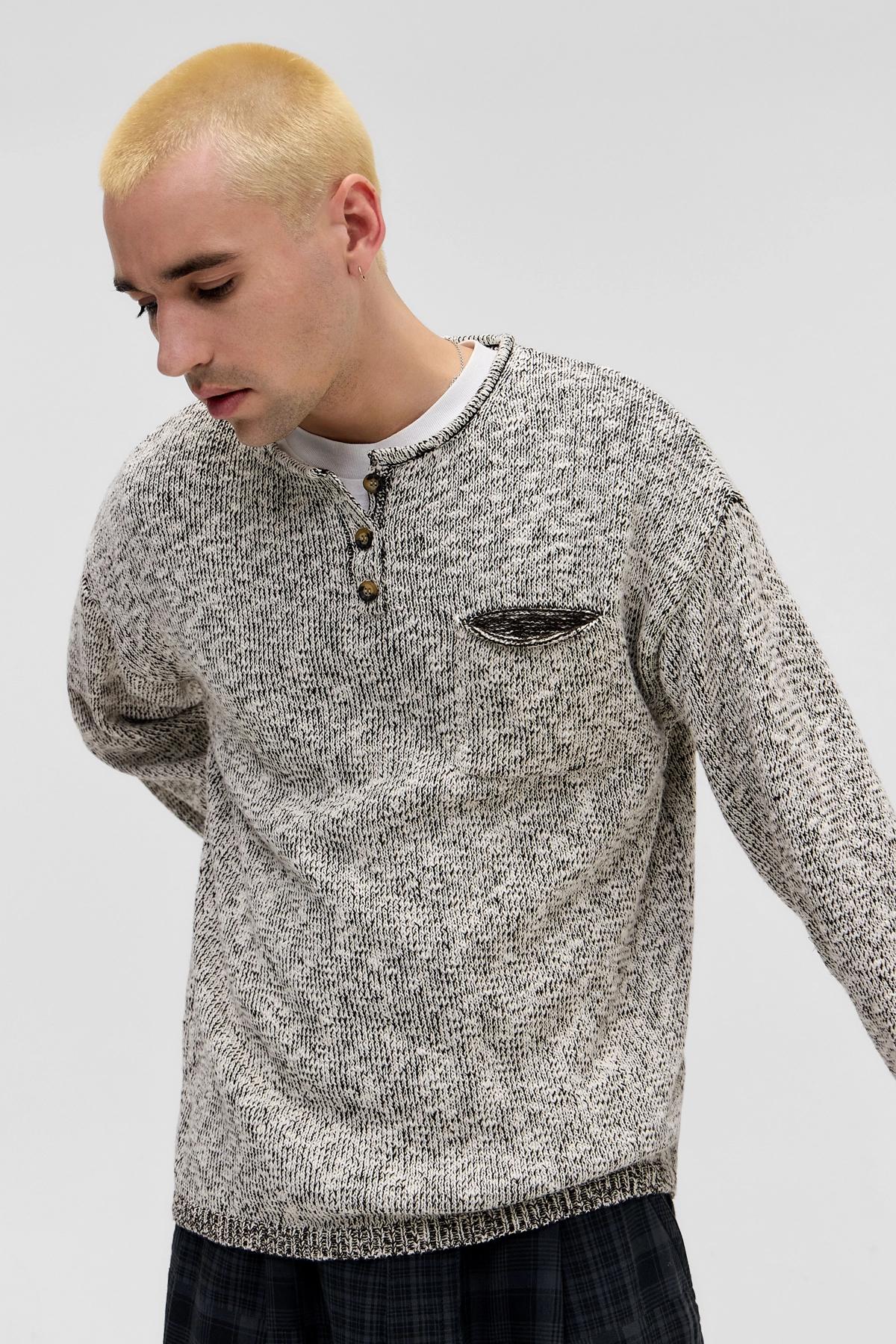 Ayker Grey Marl Henley Knit Jumper