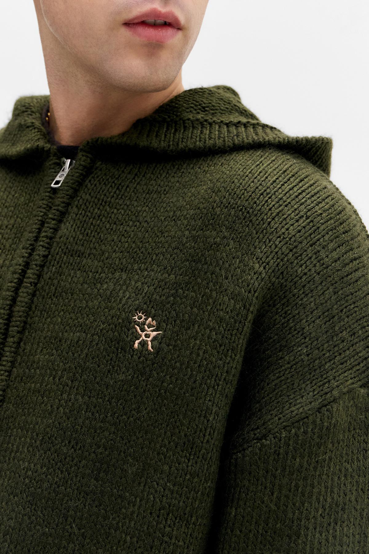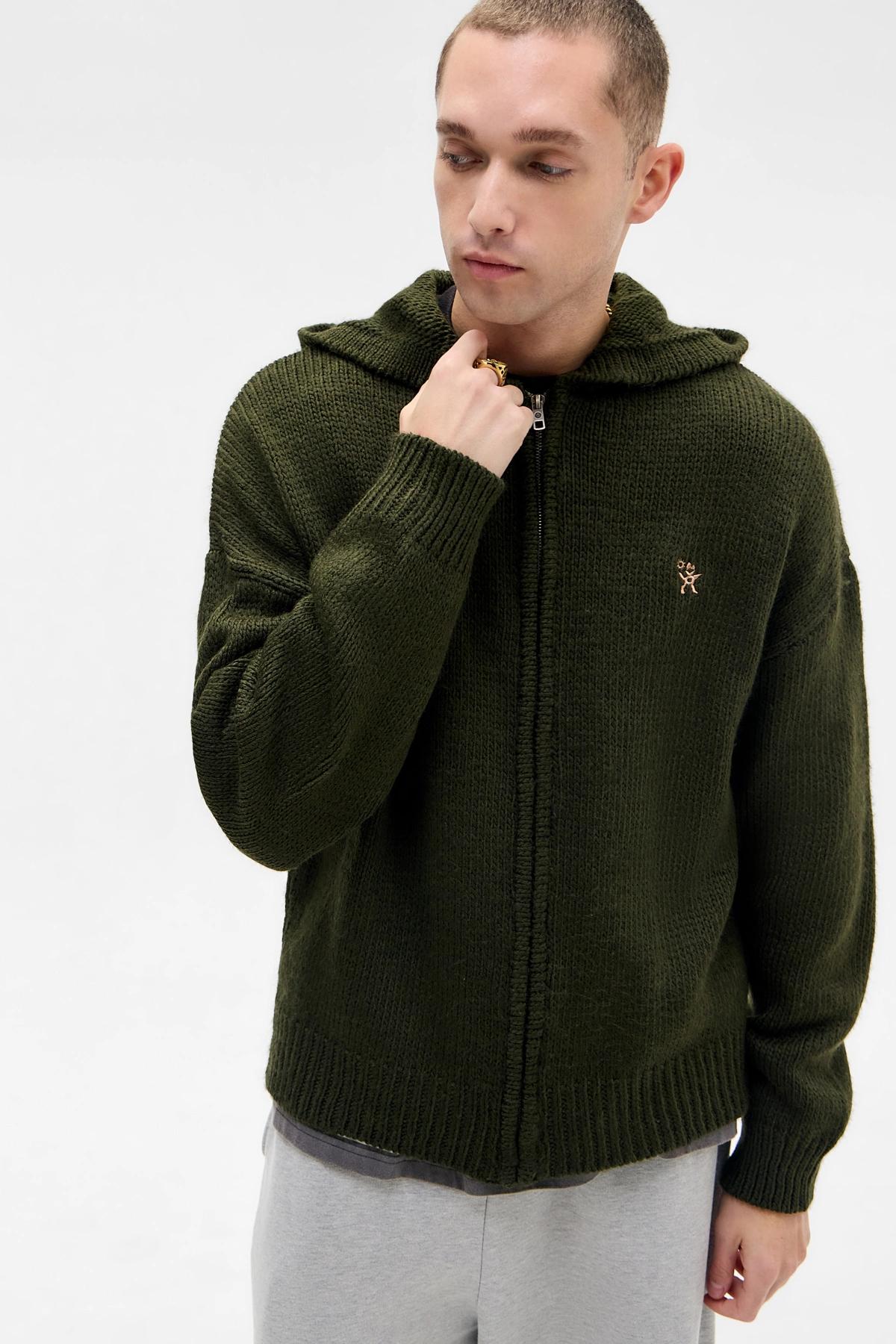 Ayker Khaki Icon Zip-Through Knit Hoodie