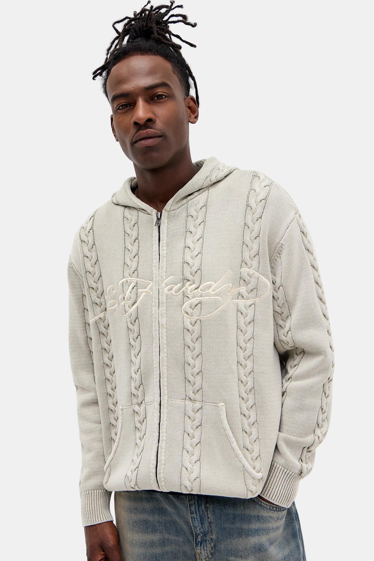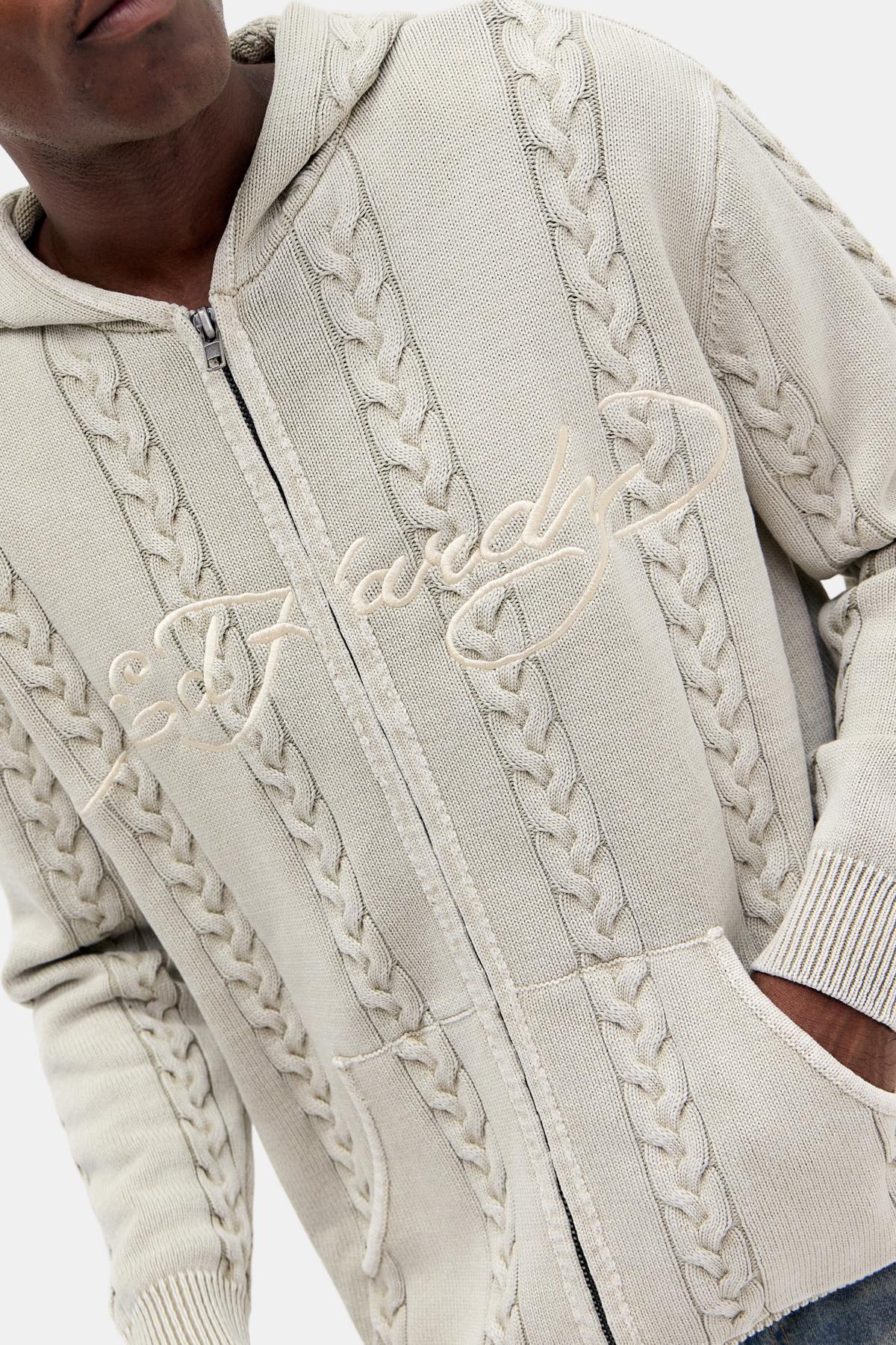 Ed Hardy UO Exclusive Ecru Cable Knit Hoodie