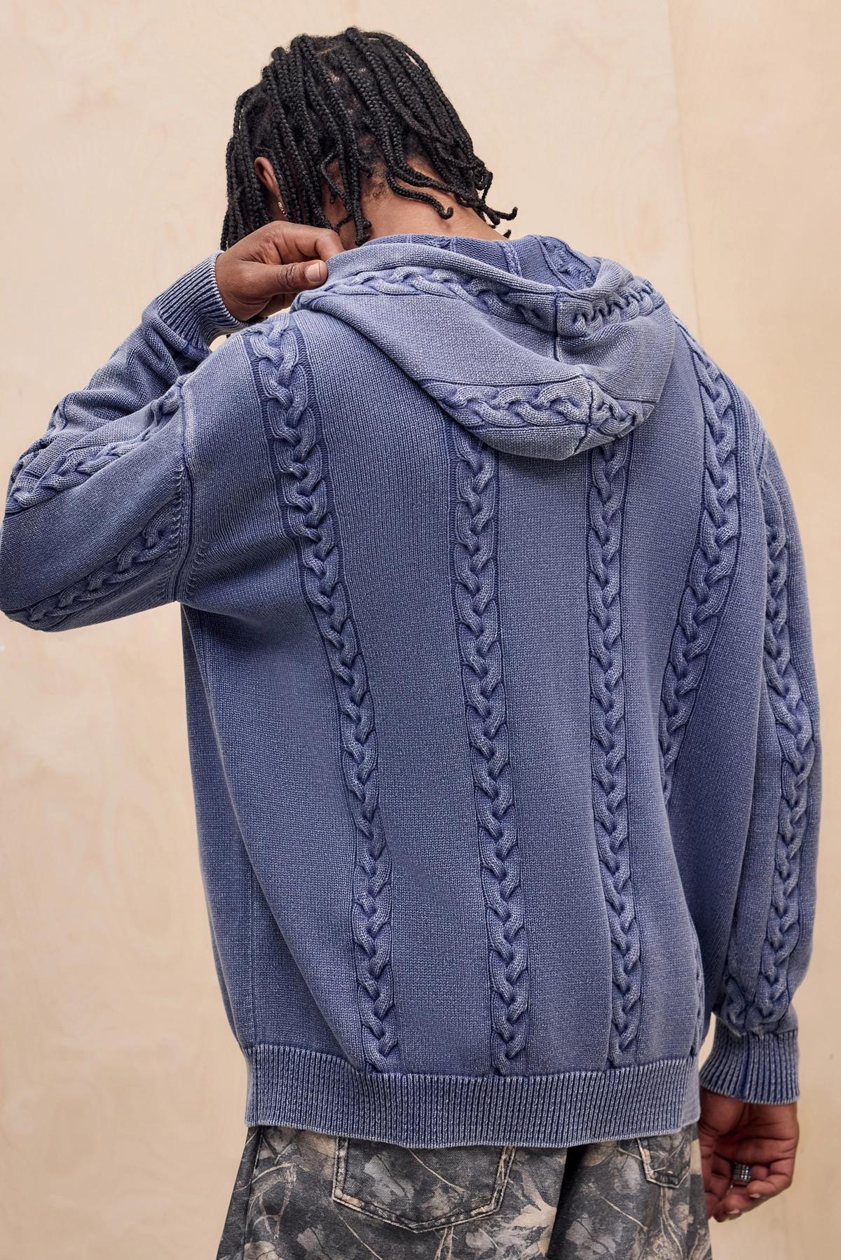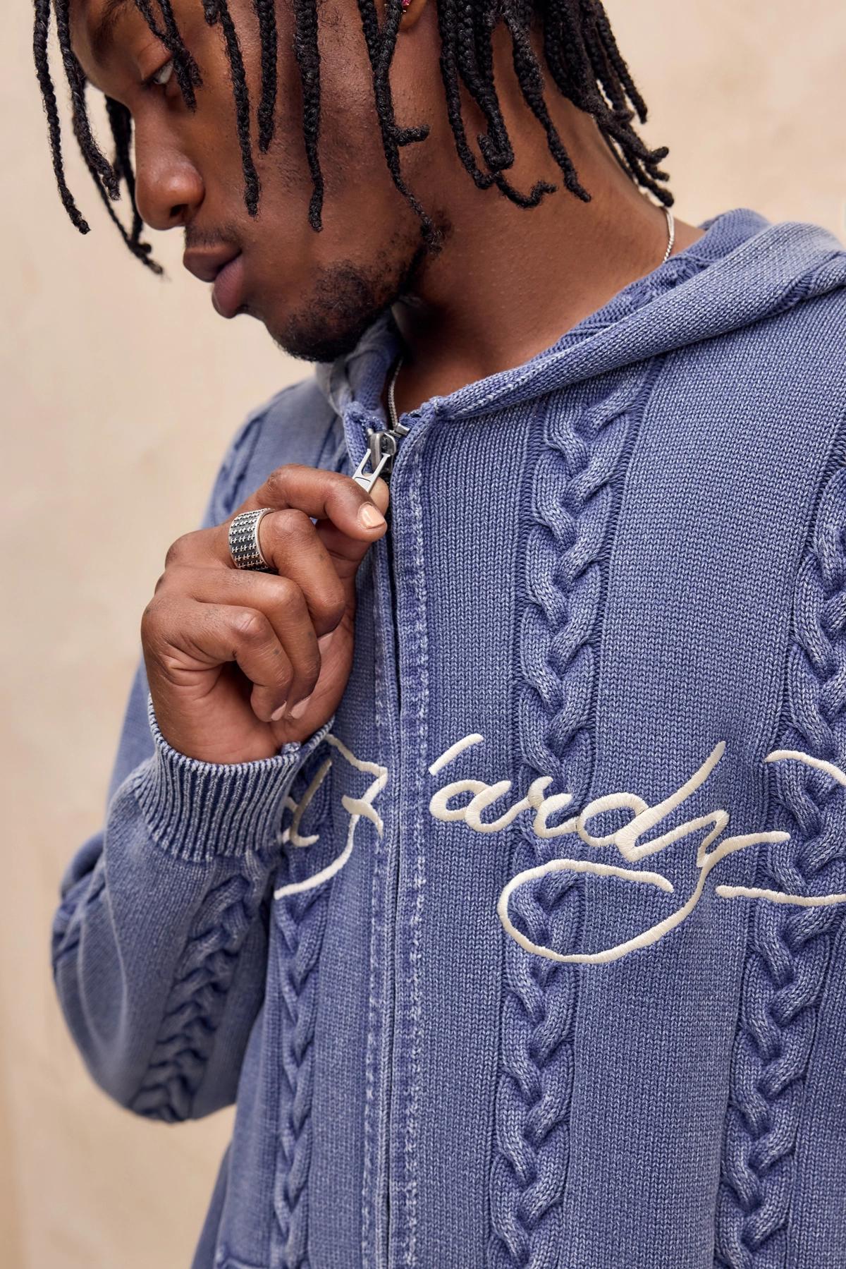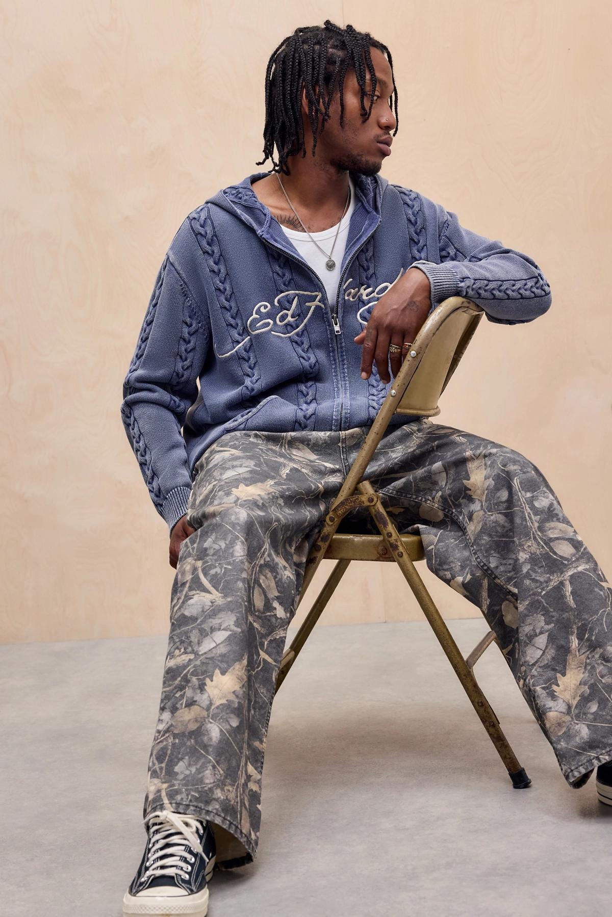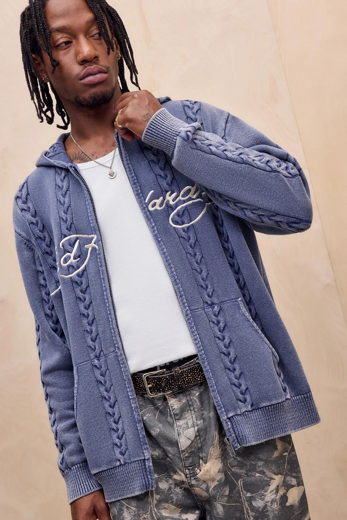 Ed Hardy UO Exclusive Washed Blue Zip-Through Knit Hoodie