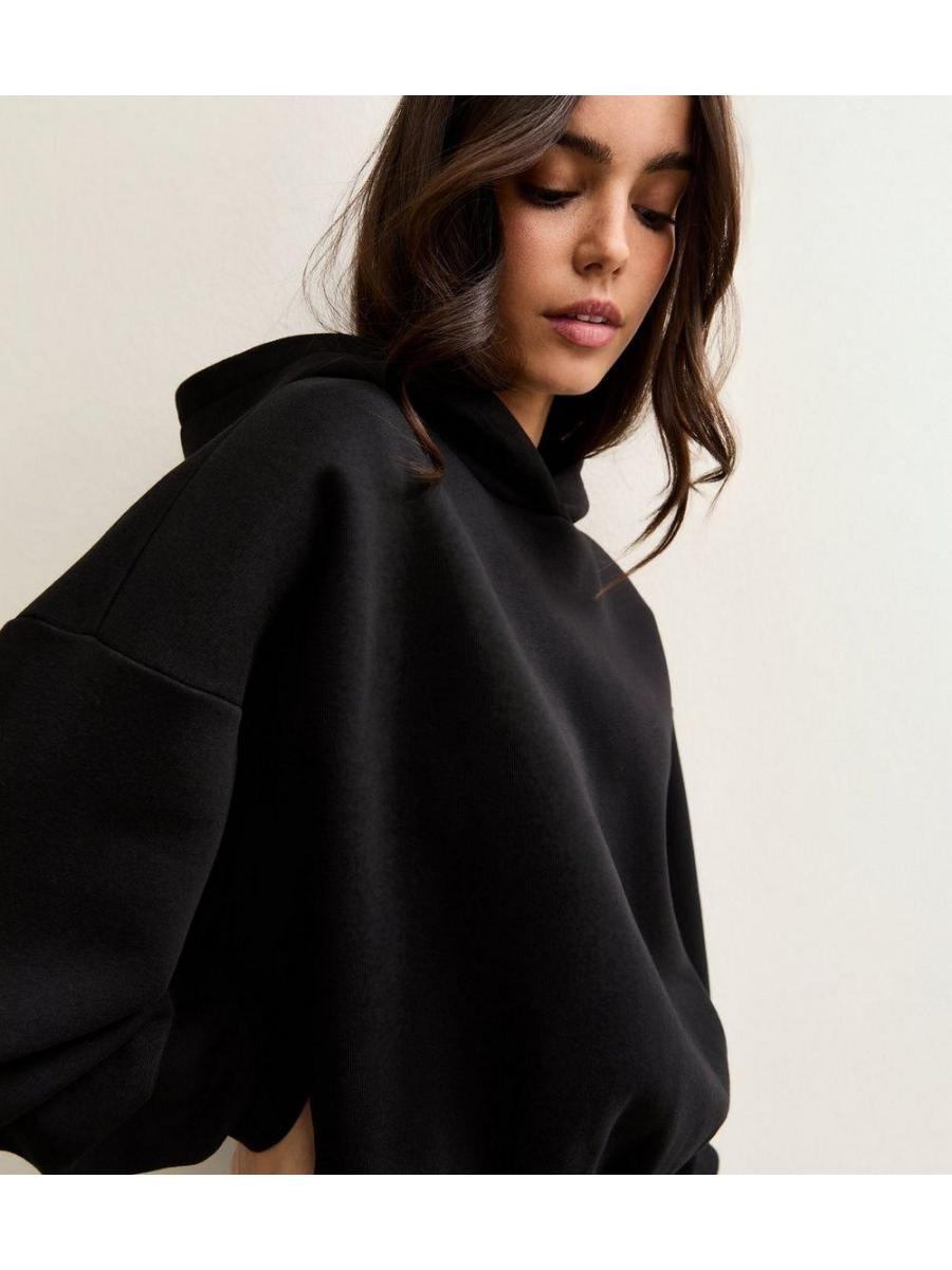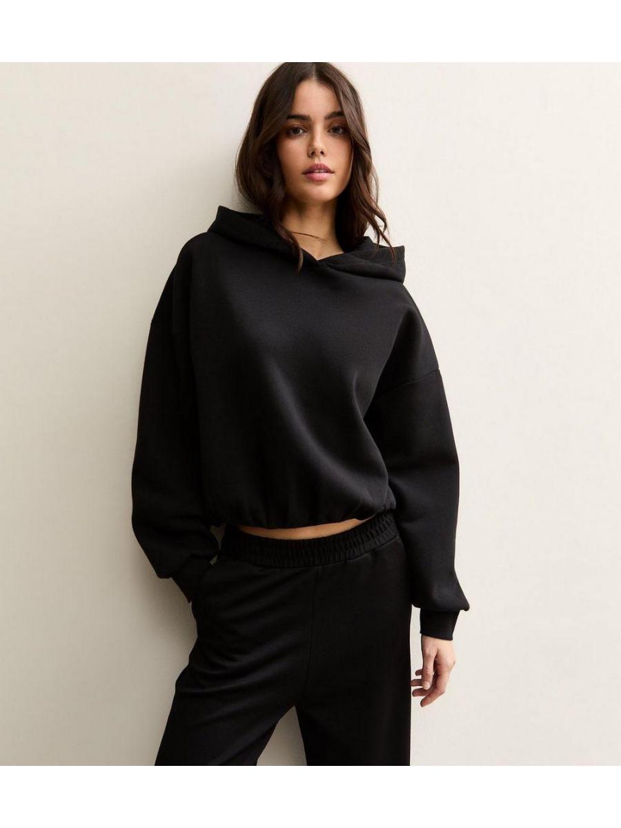 Black Bubble Hem Hoodie