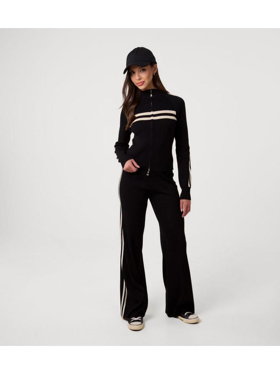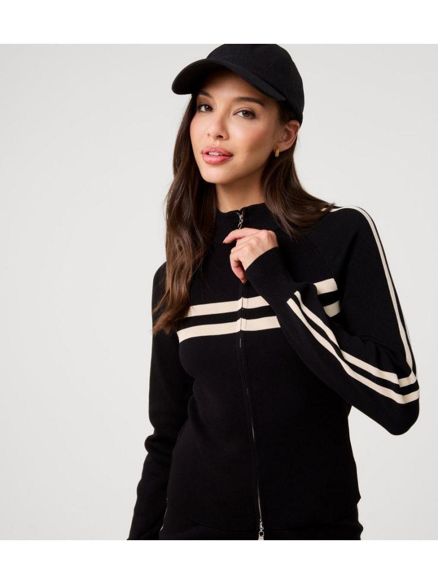 Pink Vanilla Black Contrast Stripe Zip Sweatshirt