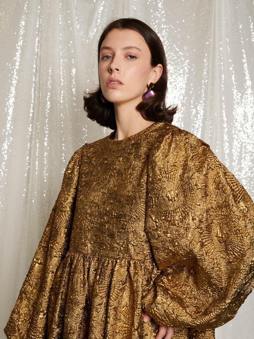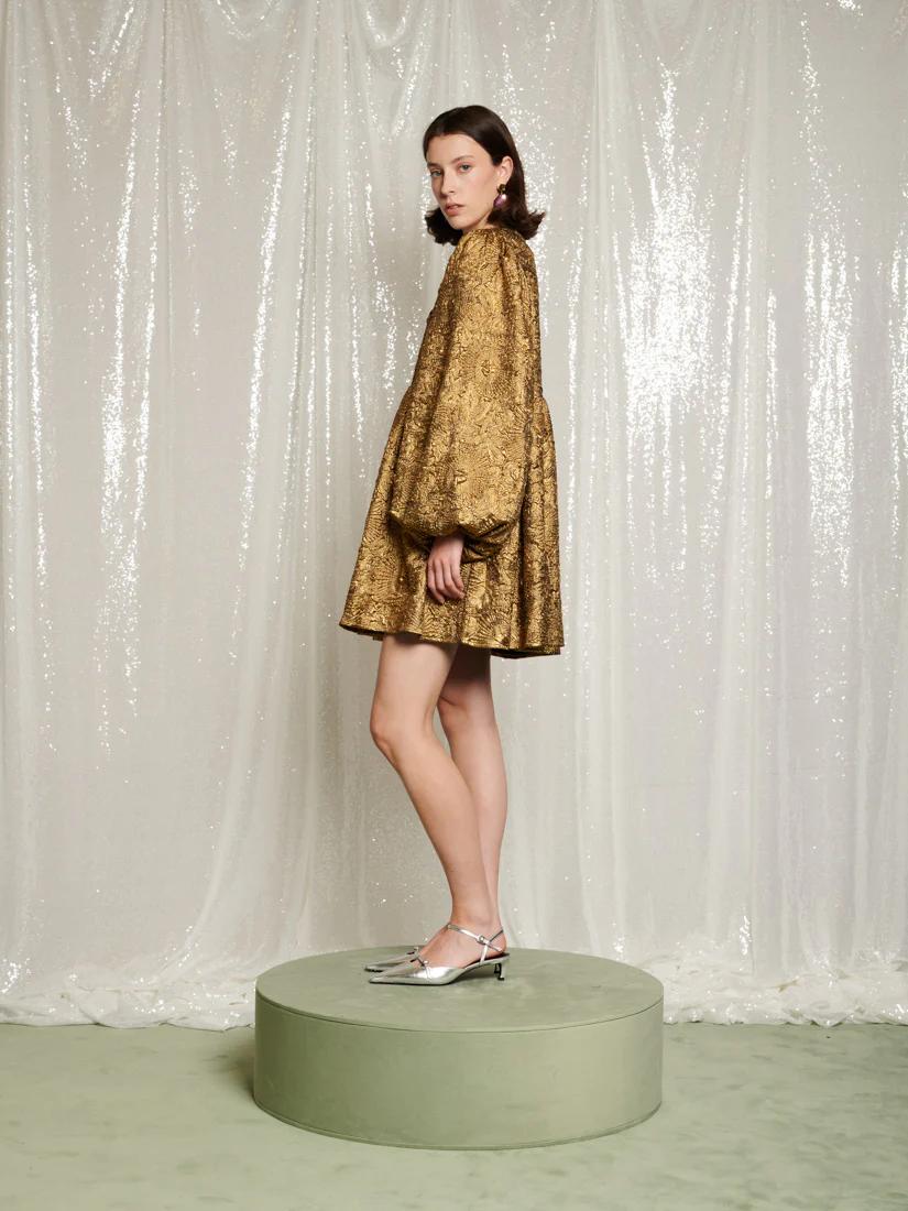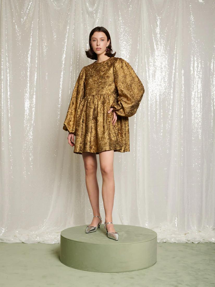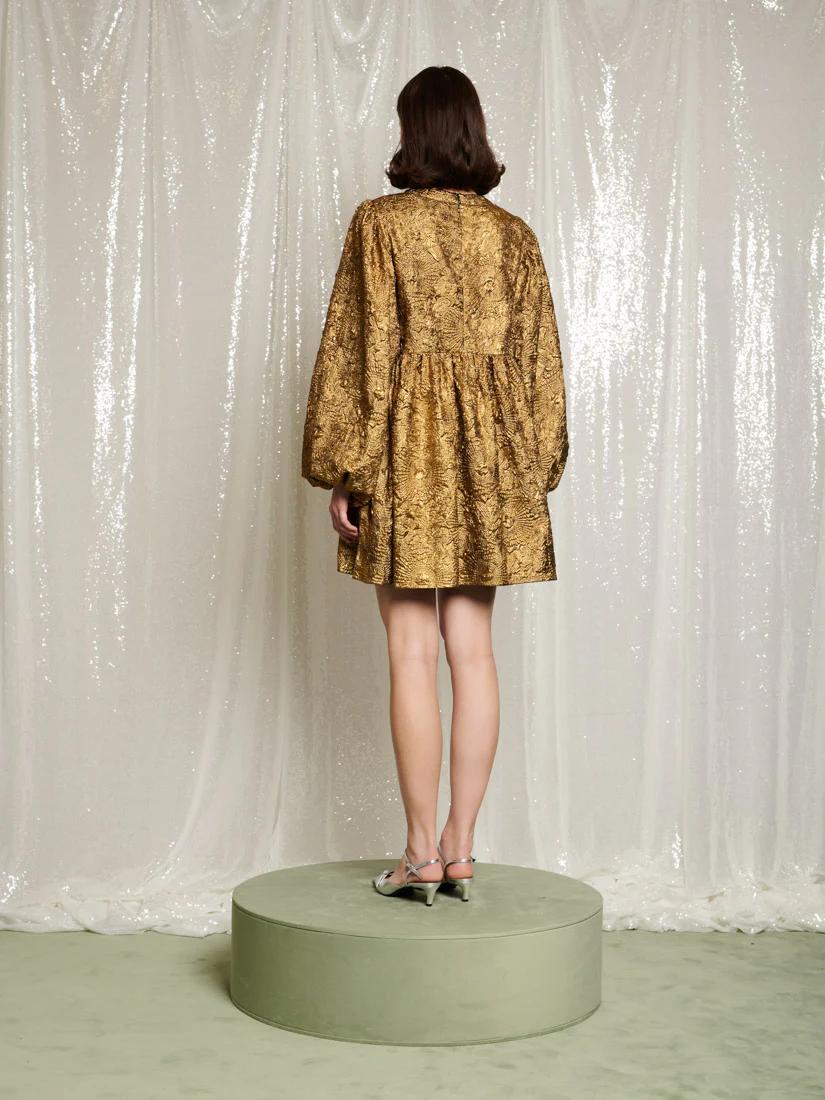 Step behind the mask in the Masquerade Jacquard Mini Dress, a golden haze of metallic magic and hidden pockets for party secrets. Oversized and opulent, it’s drama done right. Exclusively available on Sister Jane.